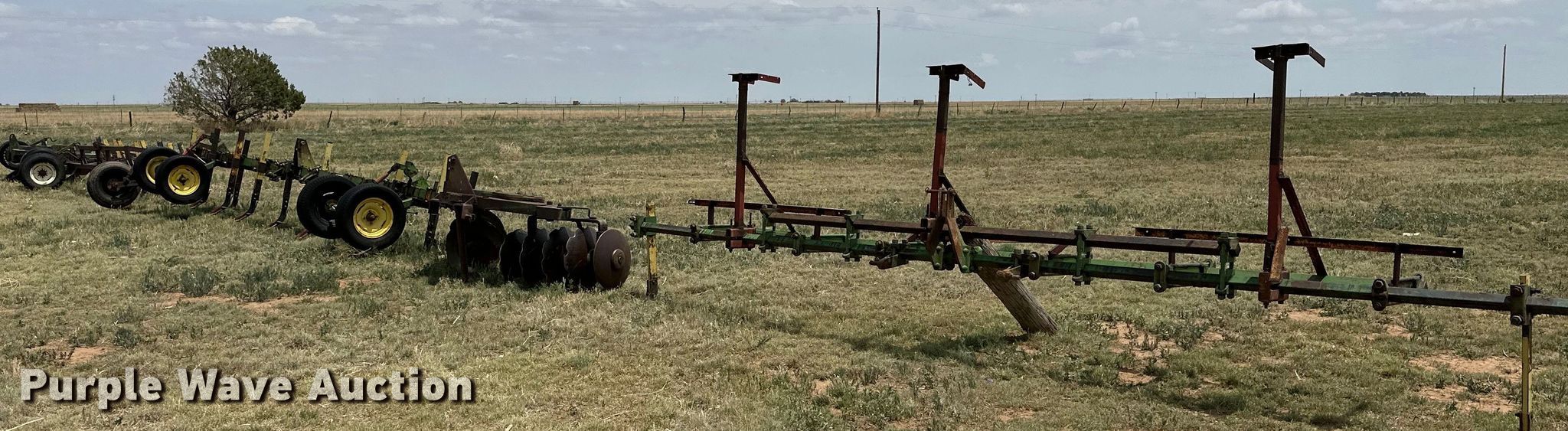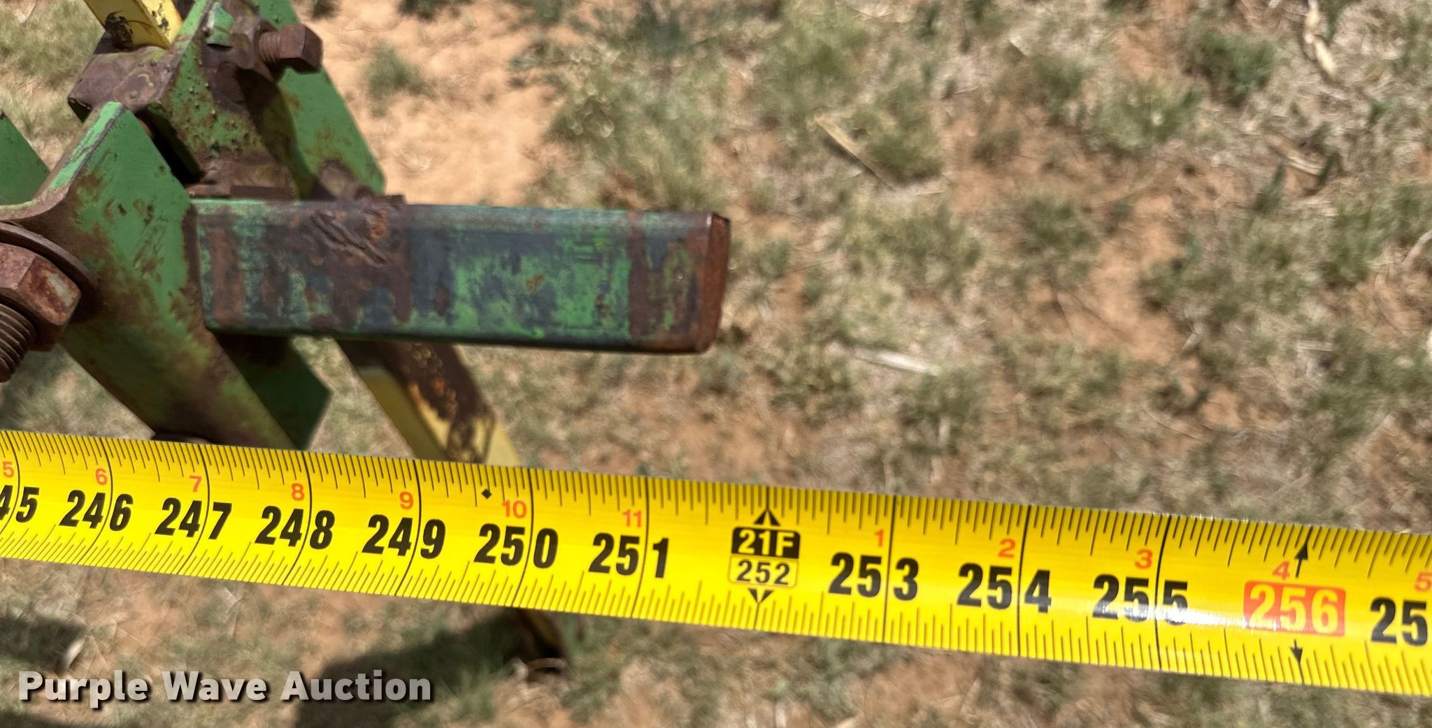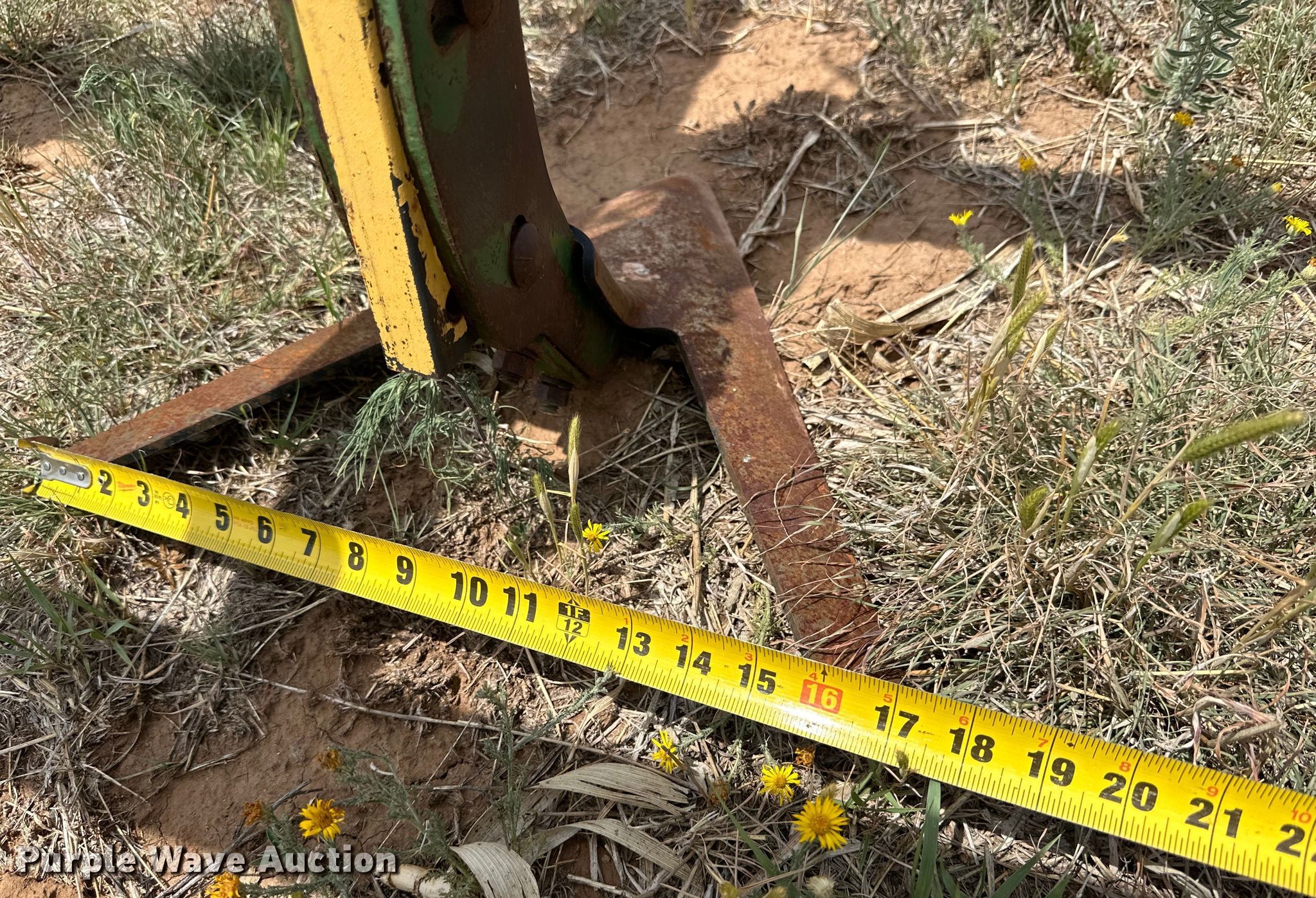 Tillage equipment. John Deere V-ripper. Overall width: 16' 6". Features Blade diameter, Rippers: 9 Length: 19", Spacing: 18", Attachments Hitch: Three point. Tires Gauge wheels Size: 9.5L-15SL. Shop built field cultivator Overall width: 21'. Features Shanks: 9, Sweep width: 18", Blade diameter Spacing: 36", Attachments Rear hitch, Hitch: Three point. Tires Gauge wheels Size: 9.5L-15. Shop built chisel Overall width: 25'. Features Shanks: 11, Sweep width: 2", Attachments Rear hitch, Hitch: Three point. Tires Gauge wheels Size: 215/75R15. John Deere track closer Overall width: 10'. Features Front blades Diameter: 21.5", Spacing: 10", Attachments Hitch: Three point. John Deere C-1389-N toolbar Overall width: 21'. Features Attachments Hitch: Three point. Pursuant to New Mexico law, Purple Wave will not be collecting sales taxes on any of the purchases made in this business liquidation auction. Estate of Robert J. Podzemny. Sedan, NM 88436