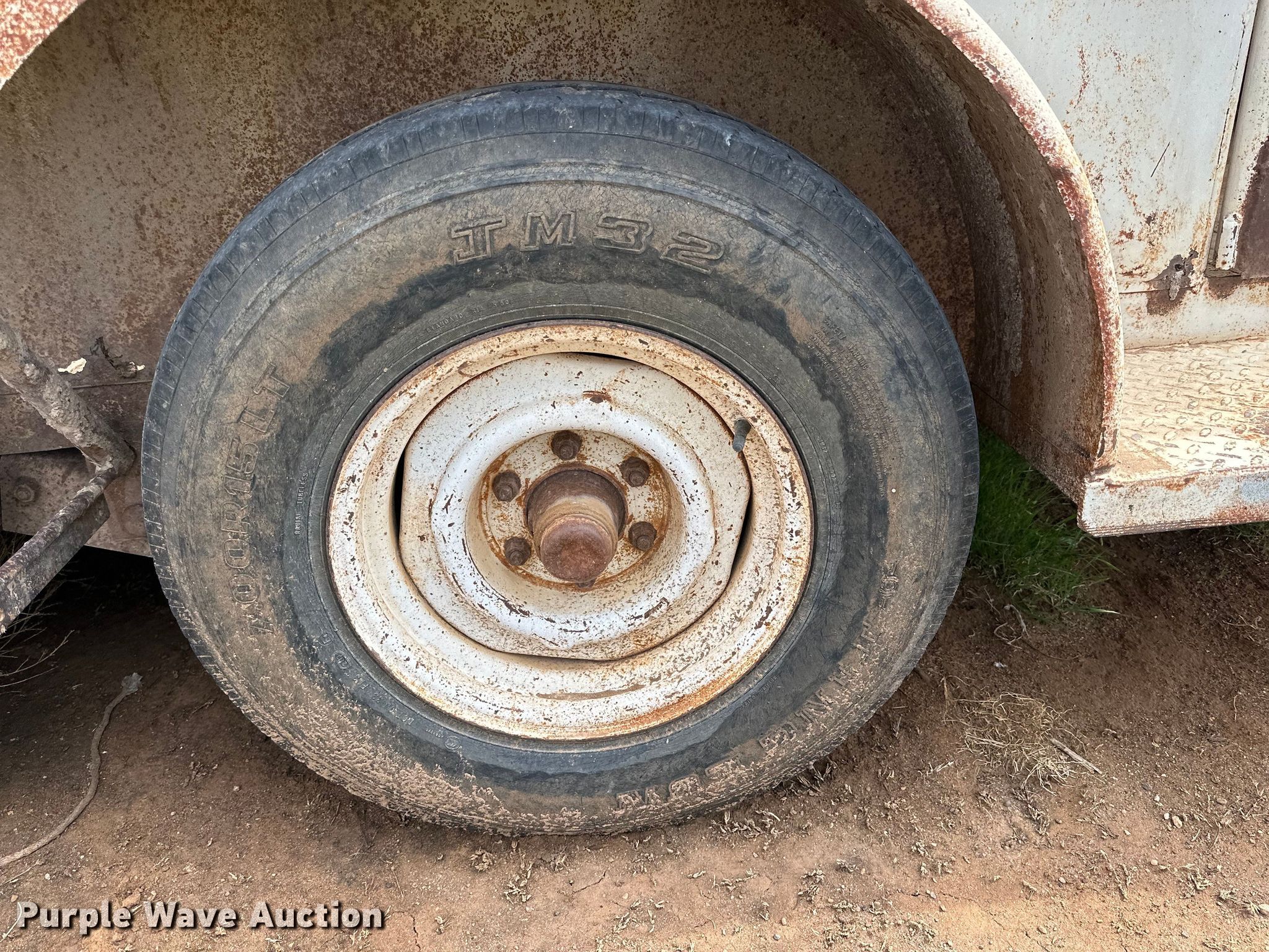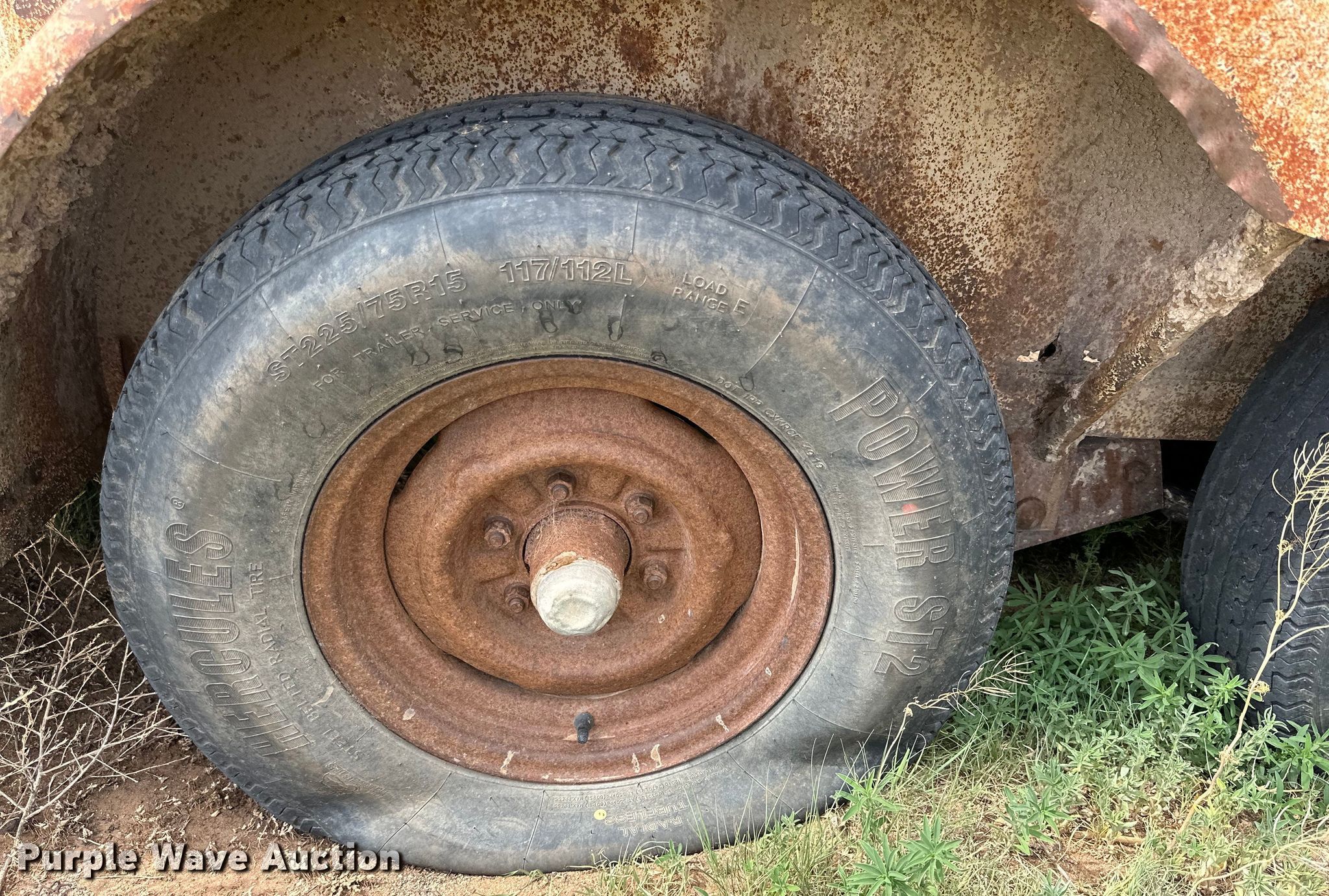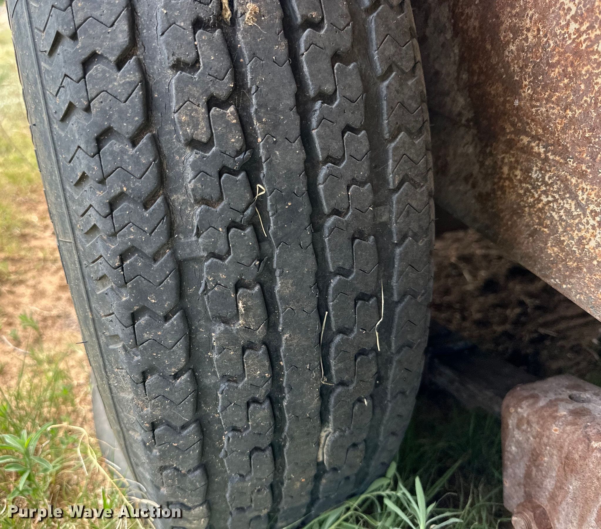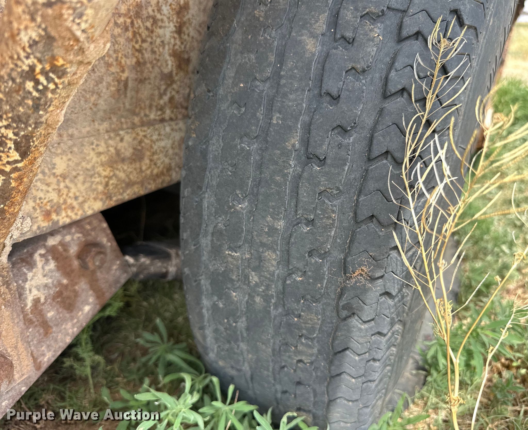 Shop built livestock trailer. Dimensions. Overall: 18' L x 92" W, Body: 16' L x 57" W. Features Horse capacity: 4, Ground load. Chassis Ball hitch: 2", Landing gear: Single, Suspension: Spring, Axles: Tandem. Tires Steel wheels, Size: 205/90R15. Notes Flat tires. Pursuant to New Mexico law, Purple Wave will not be collecting sales taxes on any of the purchases made in this business liquidation auction. Transfer of ownership documentation will be a bill of sale. Estate of Robert J. Podzemny. Sedan, NM 88436