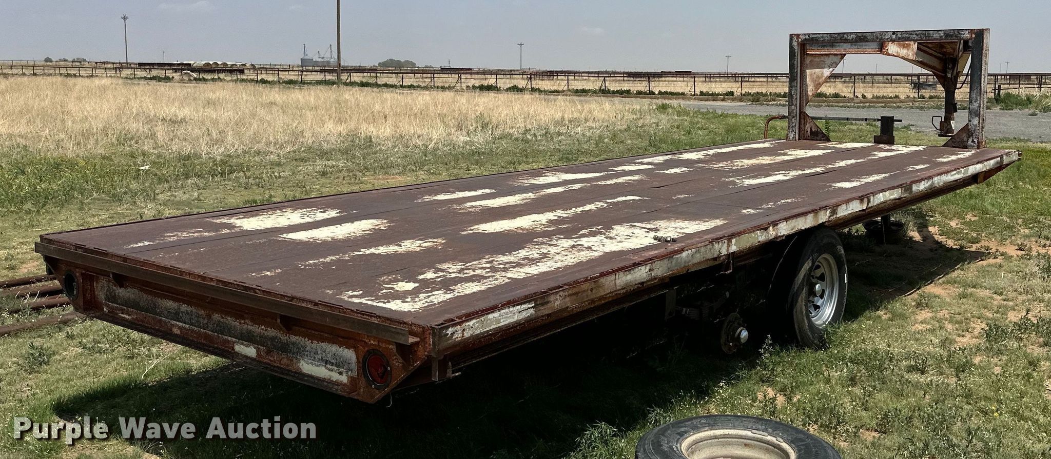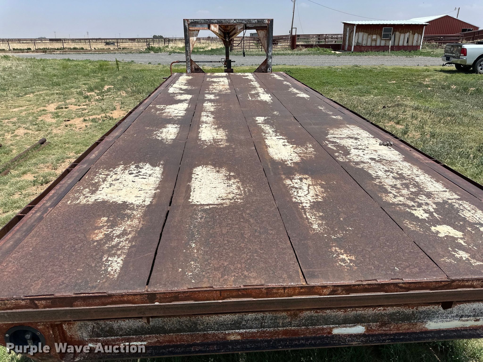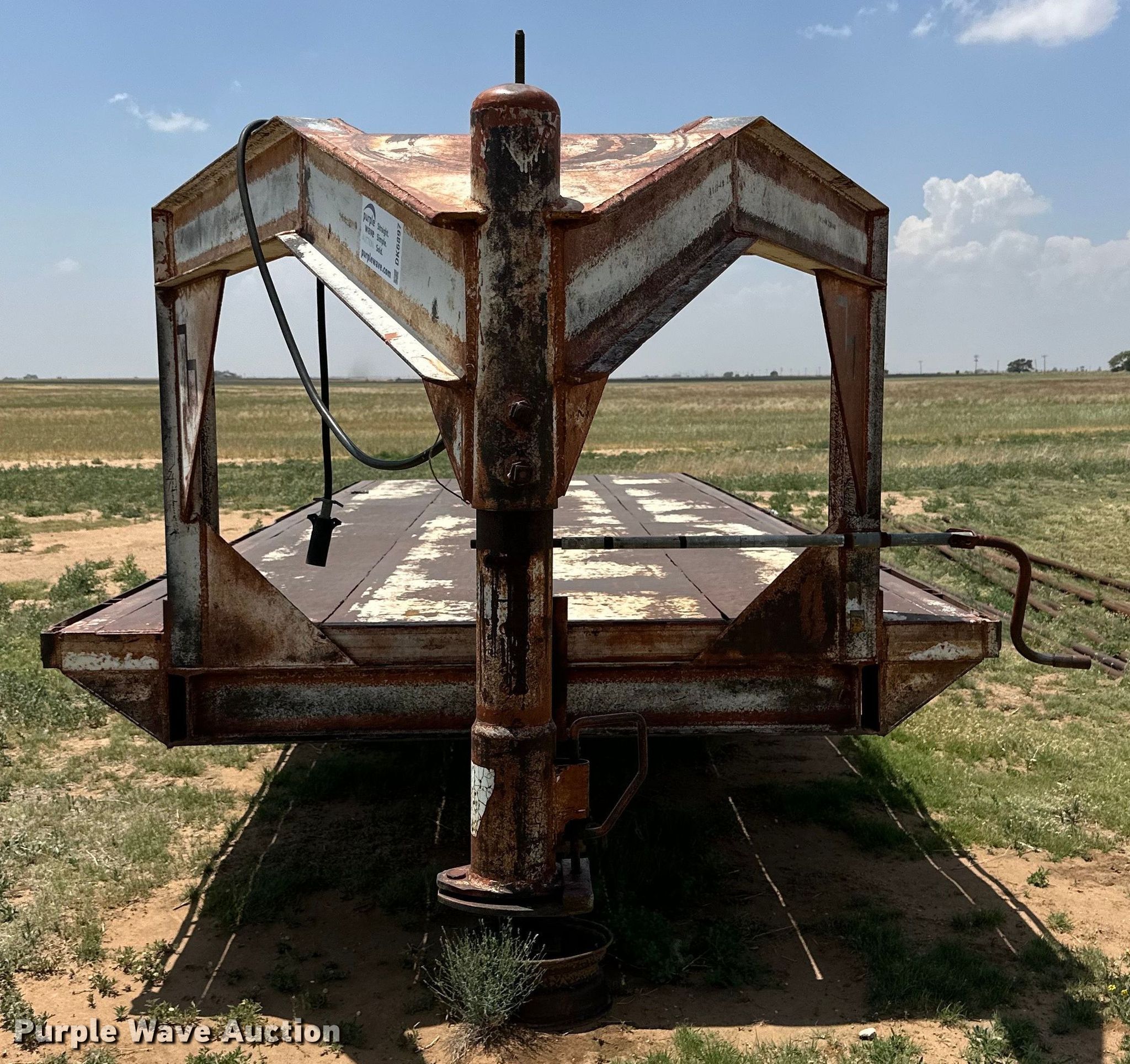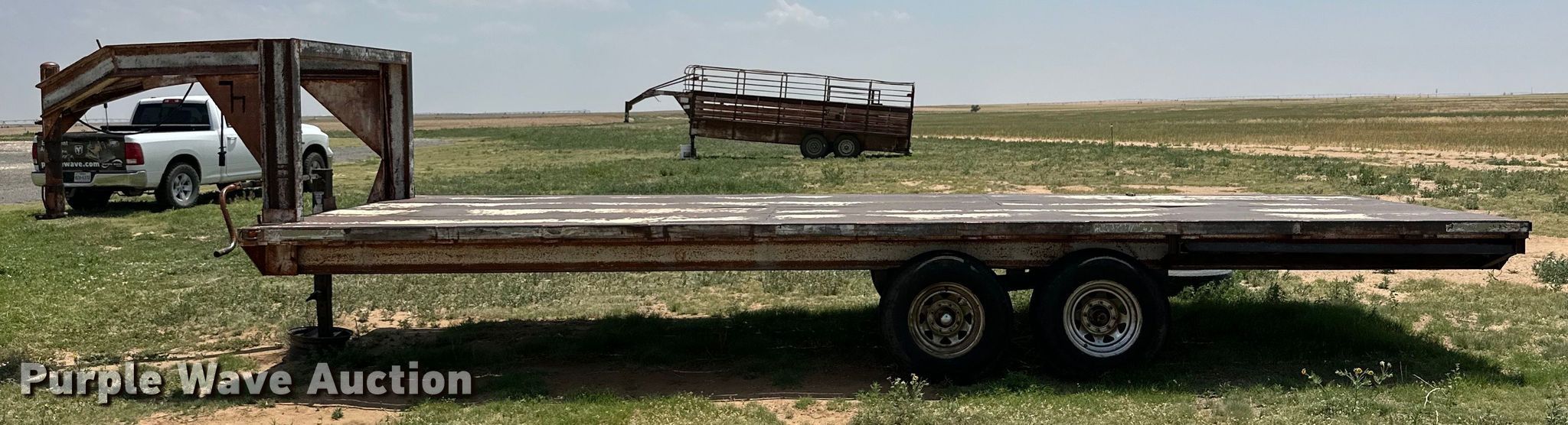 Shop built equipment trailer. Dimensions. Overall: 30' L x 102" W, Deck: 24' L x 102" W. Features Deck type: Steel. Chassis Hitch: Gooseneck, Landing gear: Single, Suspension: Spring, Axles: Tandem. Tires Aluminum wheels, Size: 235/85R16. Pursuant to New Mexico law, Purple Wave will not be collecting sales taxes on any of the purchases made in this business liquidation auction. Transfer of ownership documentation will be a bill of sale. Estate of Robert J. Podzemny. Sedan, NM 88436
