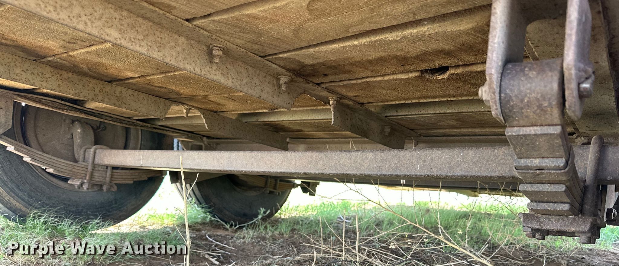 Dugan livestock trailer. VIN: JD70233-11. Dimensions Overall: 27' L x 86" W, Body: 7' L x 64" W. Features Center gates: 1, Ground load. Chassis Hitch: Gooseneck, Landing gear: Single, Suspension: Spring, Brakes: Electric, Axles: Tandem. Tires Steel wheels, Size: 235/85R16. Pursuant to New Mexico law, Purple Wave will not be collecting sales taxes on any of the purchases made in this business liquidation auction. Transfer of ownership documentation will be a bill of sale. Estate of Robert J. Podzemny. Sedan, NM 88436