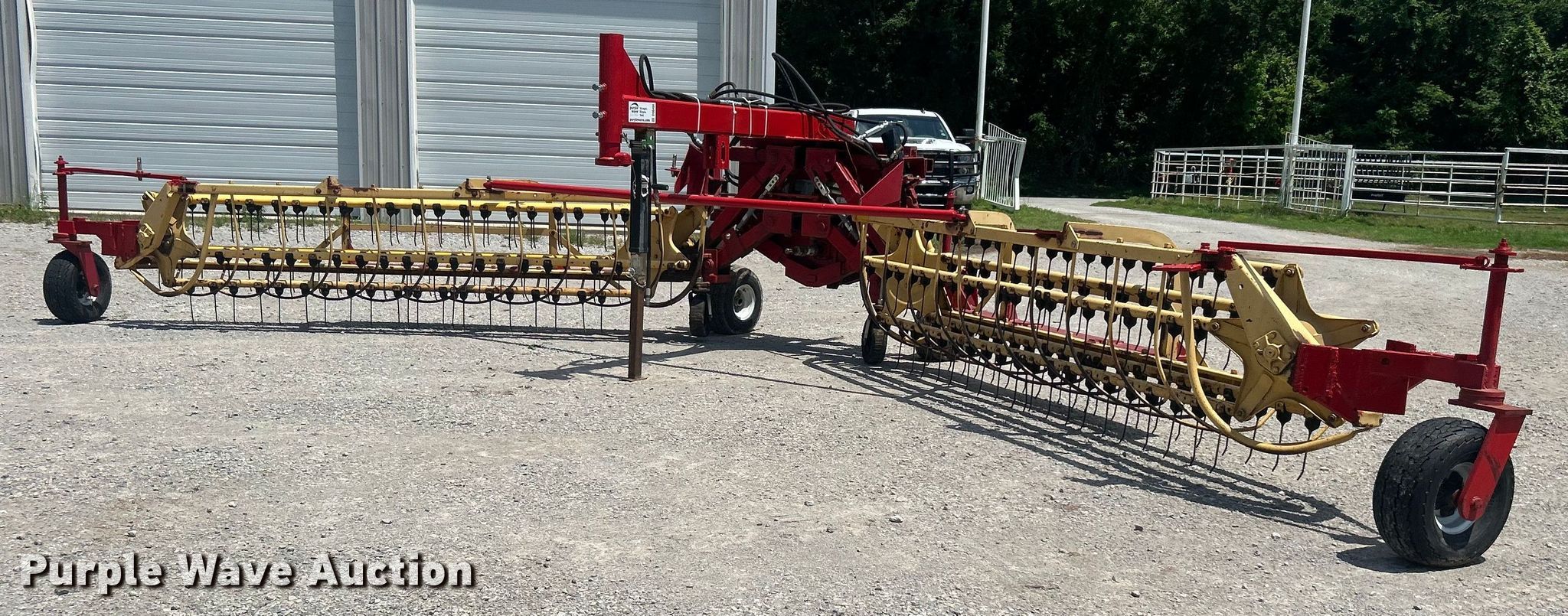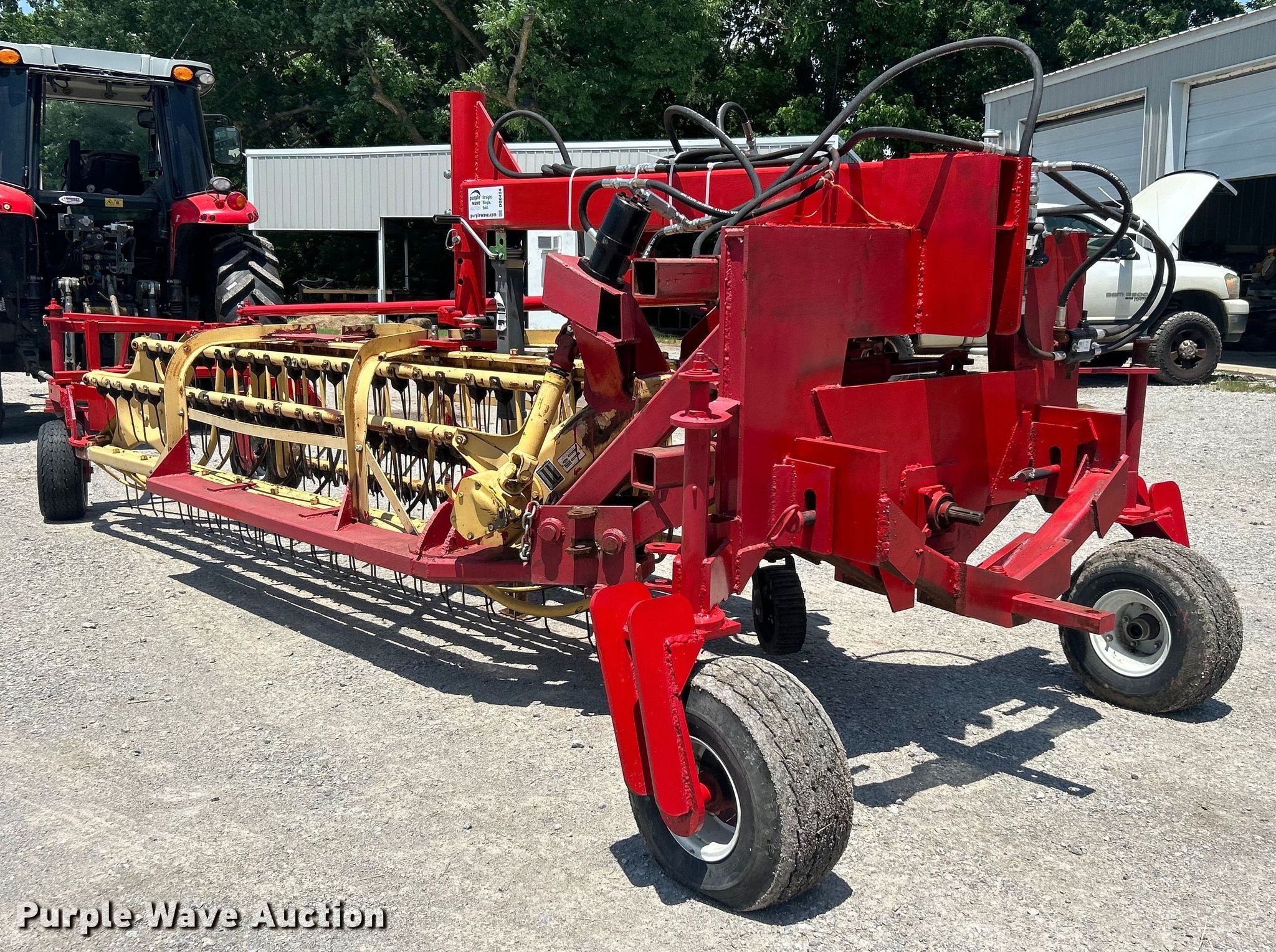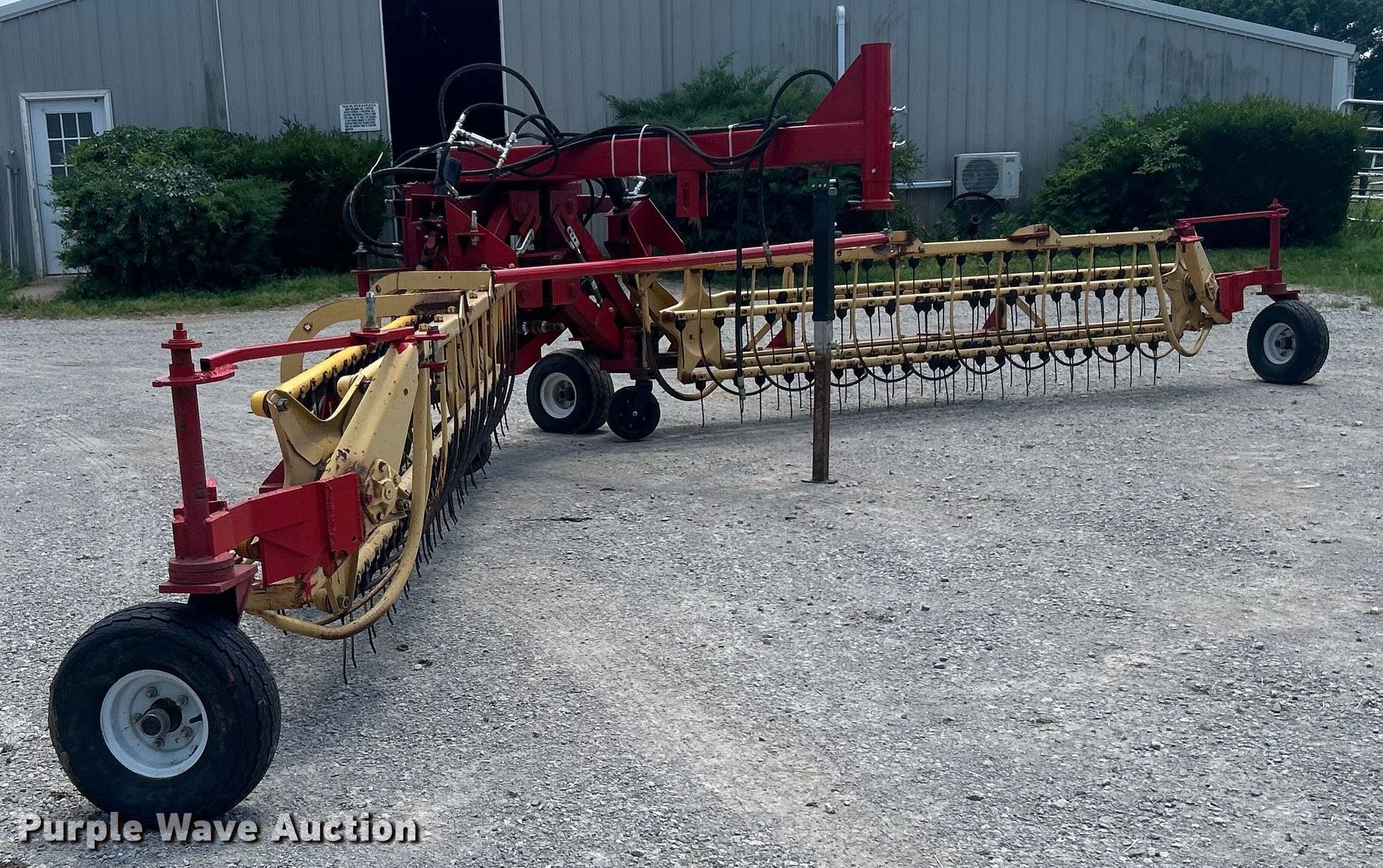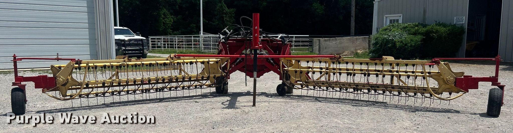 Purple Wave is selling a used Hay Rake in Oklahoma. This item is a Shop Built hay rake with the following: Width: 23', PTO: 540, Hydraulic driven, (2) side delivery rake sections, New Holland 258, Hitch: Gooseneck