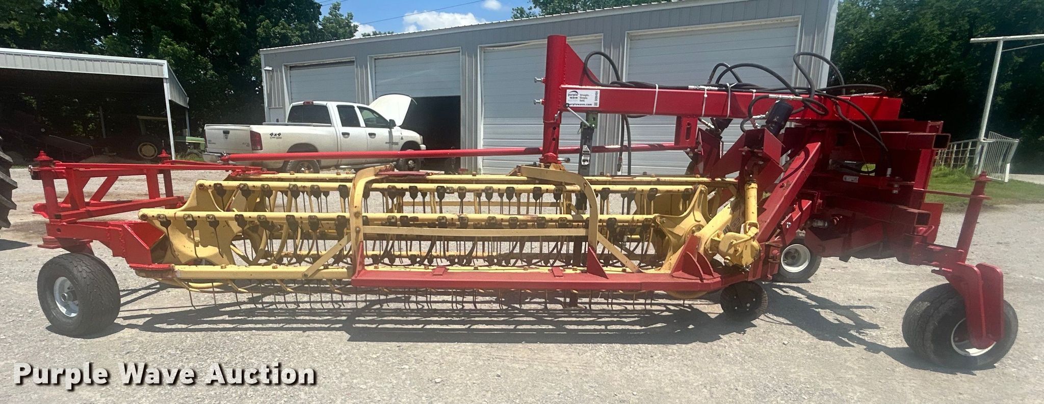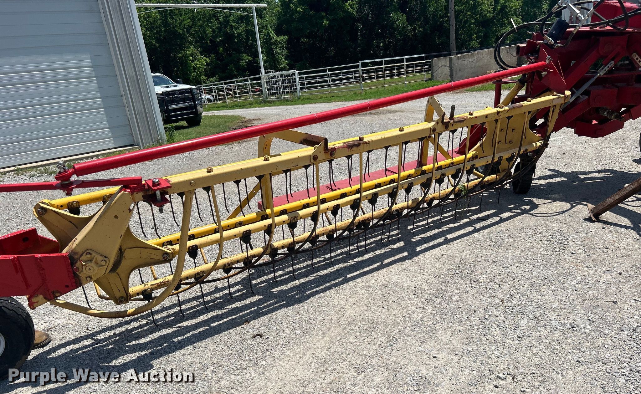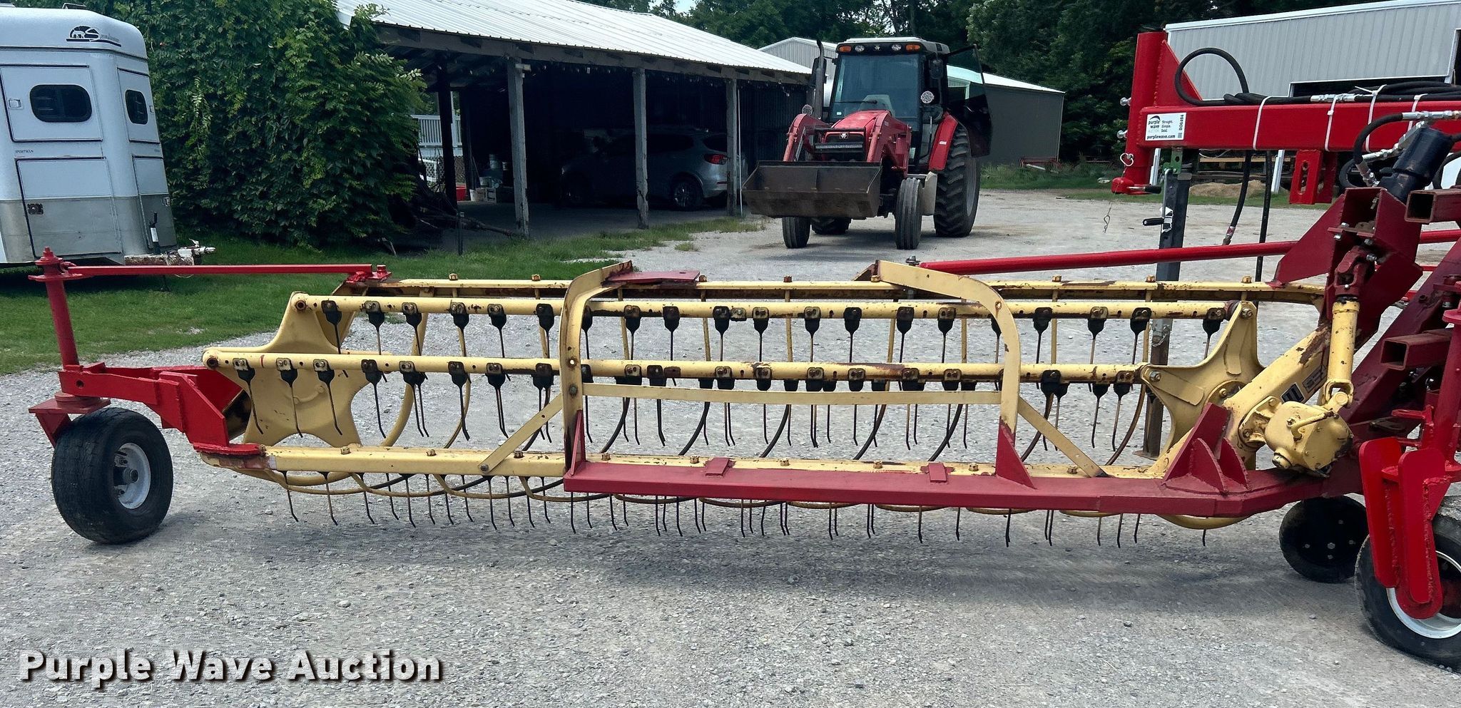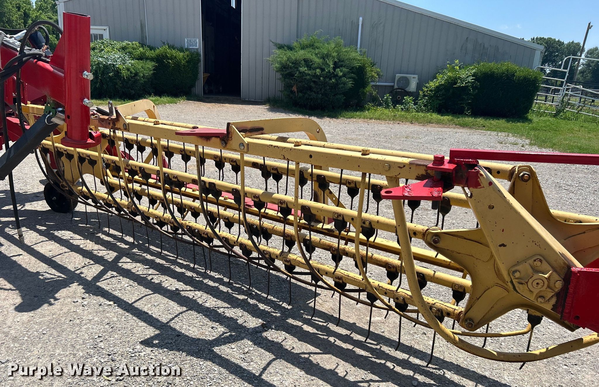 Purple Wave is selling a used Hay Rake in Oklahoma. This item is a Shop Built hay rake with the following: Width: 23', PTO: 540, Hydraulic driven, (2) side delivery rake sections, New Holland 258, Hitch: Gooseneck