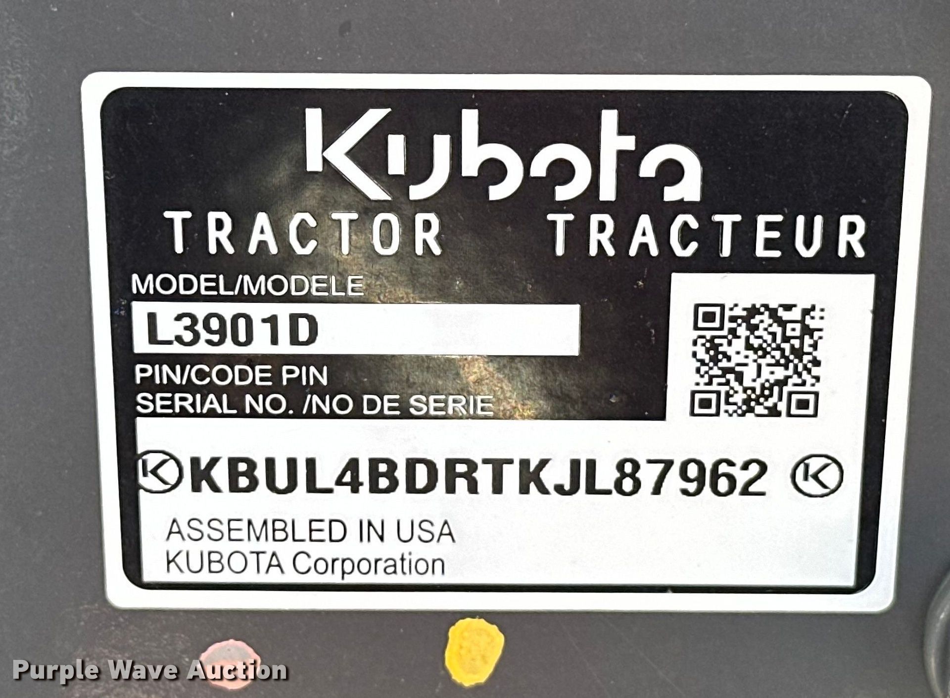 Purple Wave is selling a used Tractor in Oklahoma. This item is a 2021 Kubota L3901D MFWD tractor with the following: Hours: 179 on meter, Serial: KBUL4BDRTKJL87962
