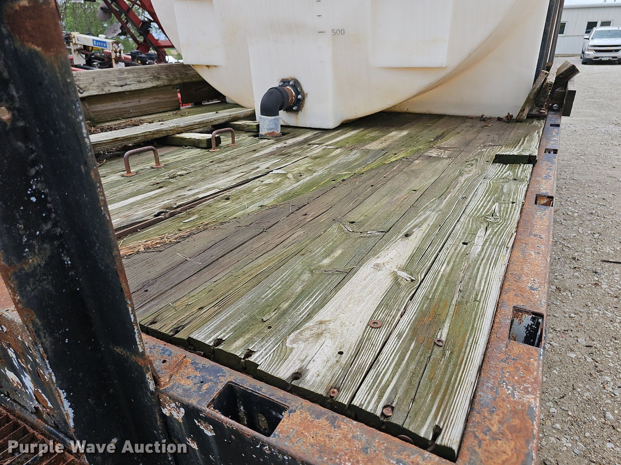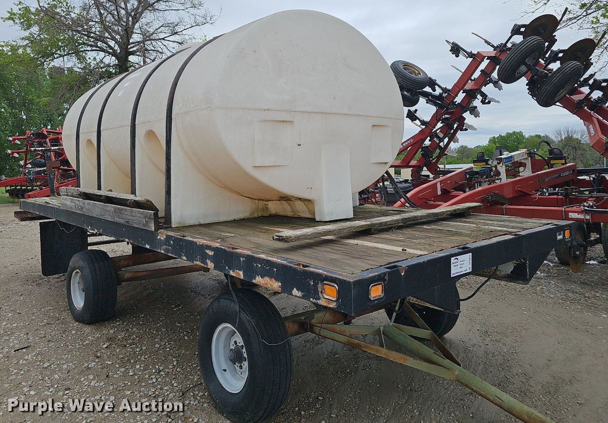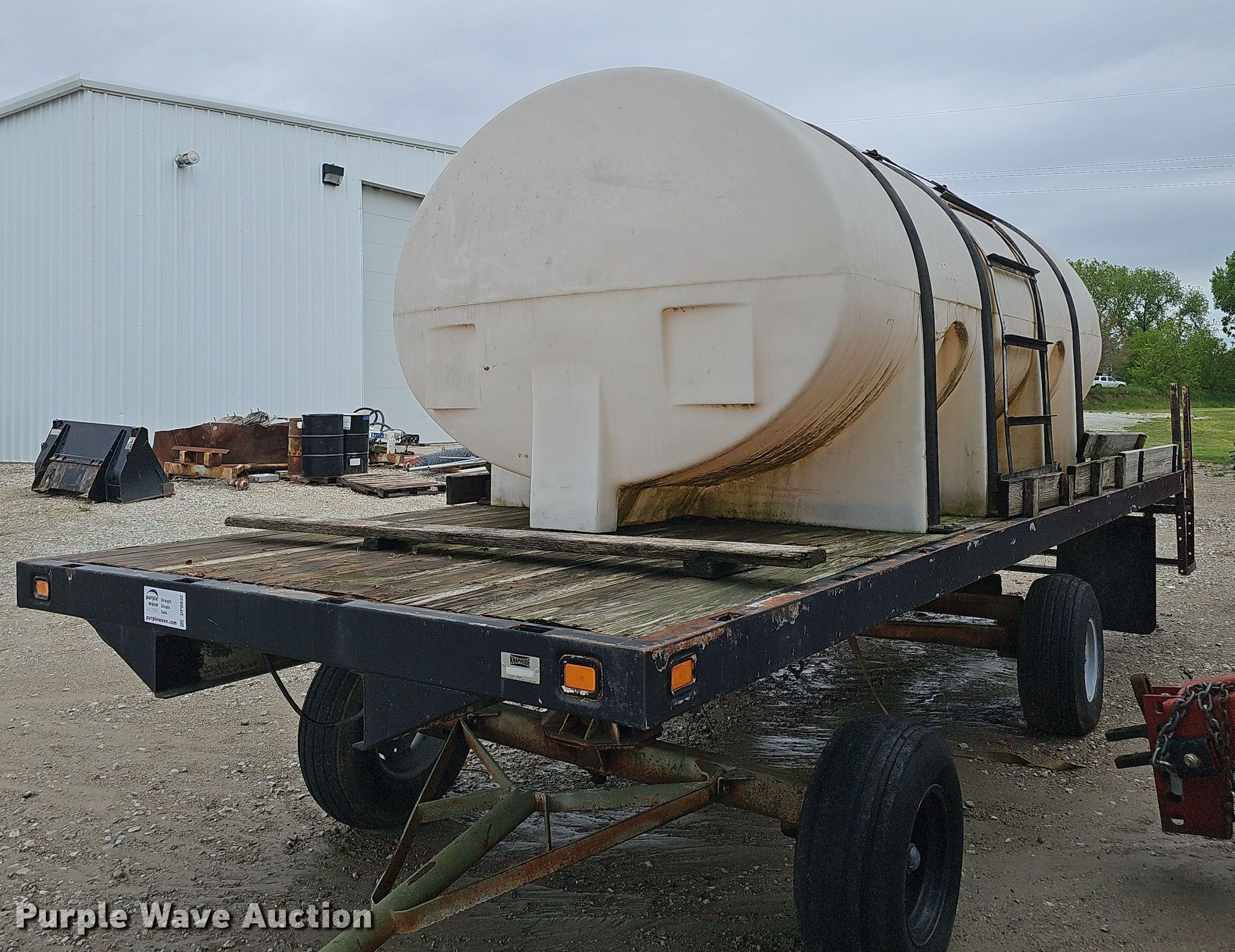Knapheide flatbed with tank. Serial: 960012, Dimensions: 22' 3" L x 96" W. Features Poly tank Capacity: 2,500 gallons. Notes Running gears not included, Poly tank issues, leak. Agriland FS. Harlan, IA 51537