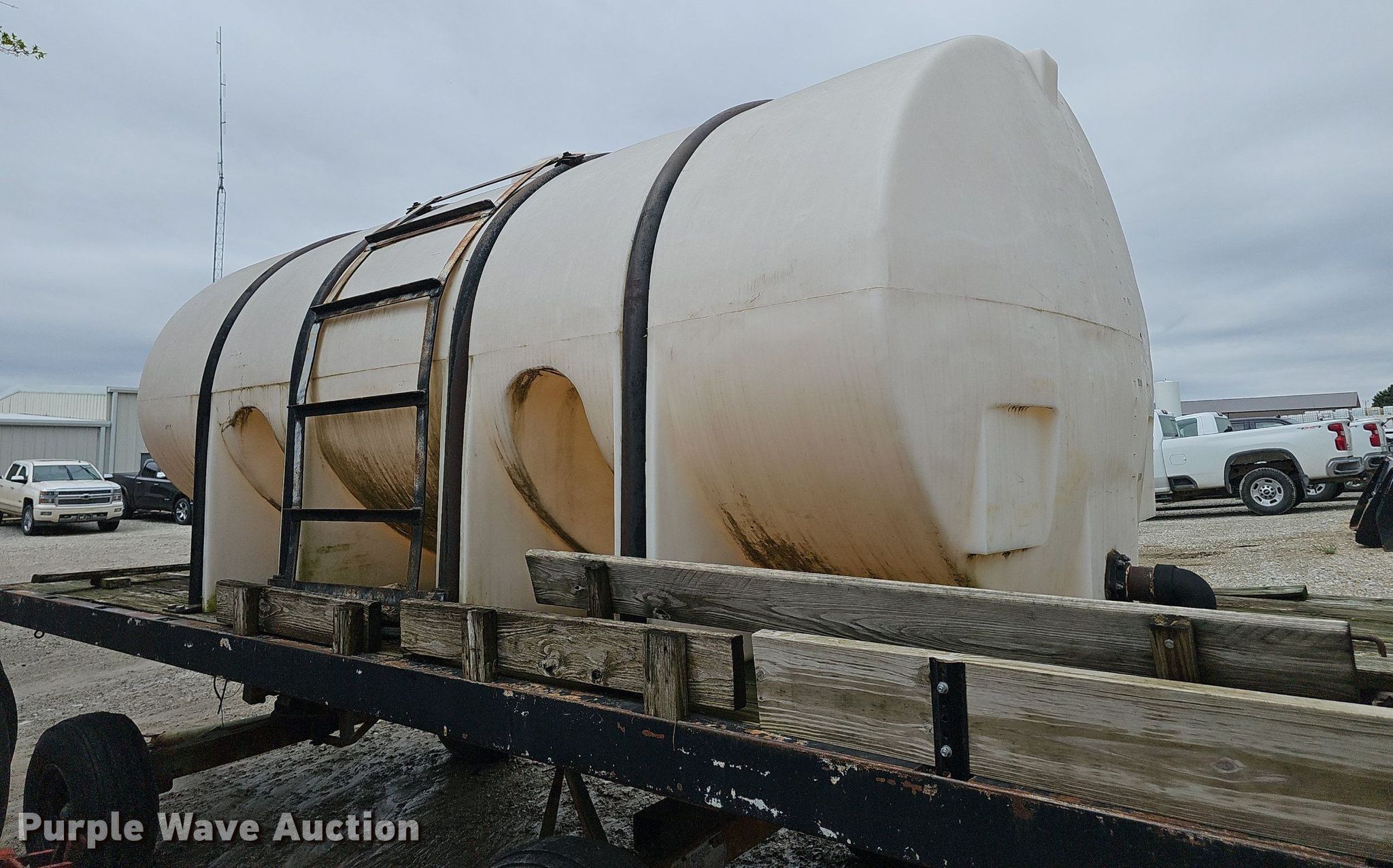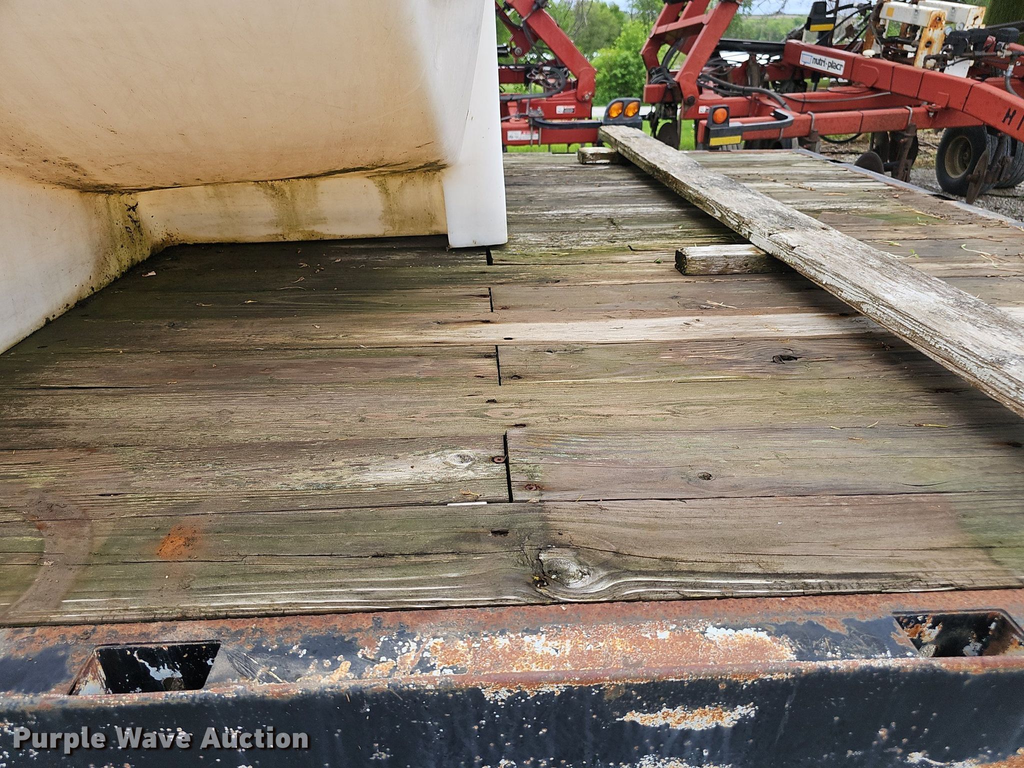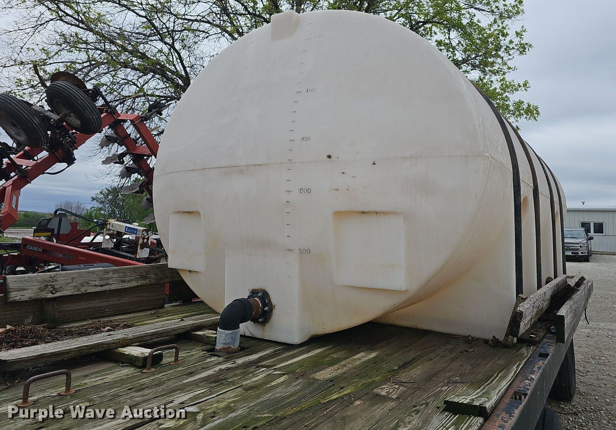 Knapheide flatbed with tank. Serial: 960012, Dimensions: 22' 3" L x 96" W. Features Poly tank Capacity: 2,500 gallons. Notes Running gears not included, Poly tank issues, leak. Agriland FS. Harlan, IA 51537