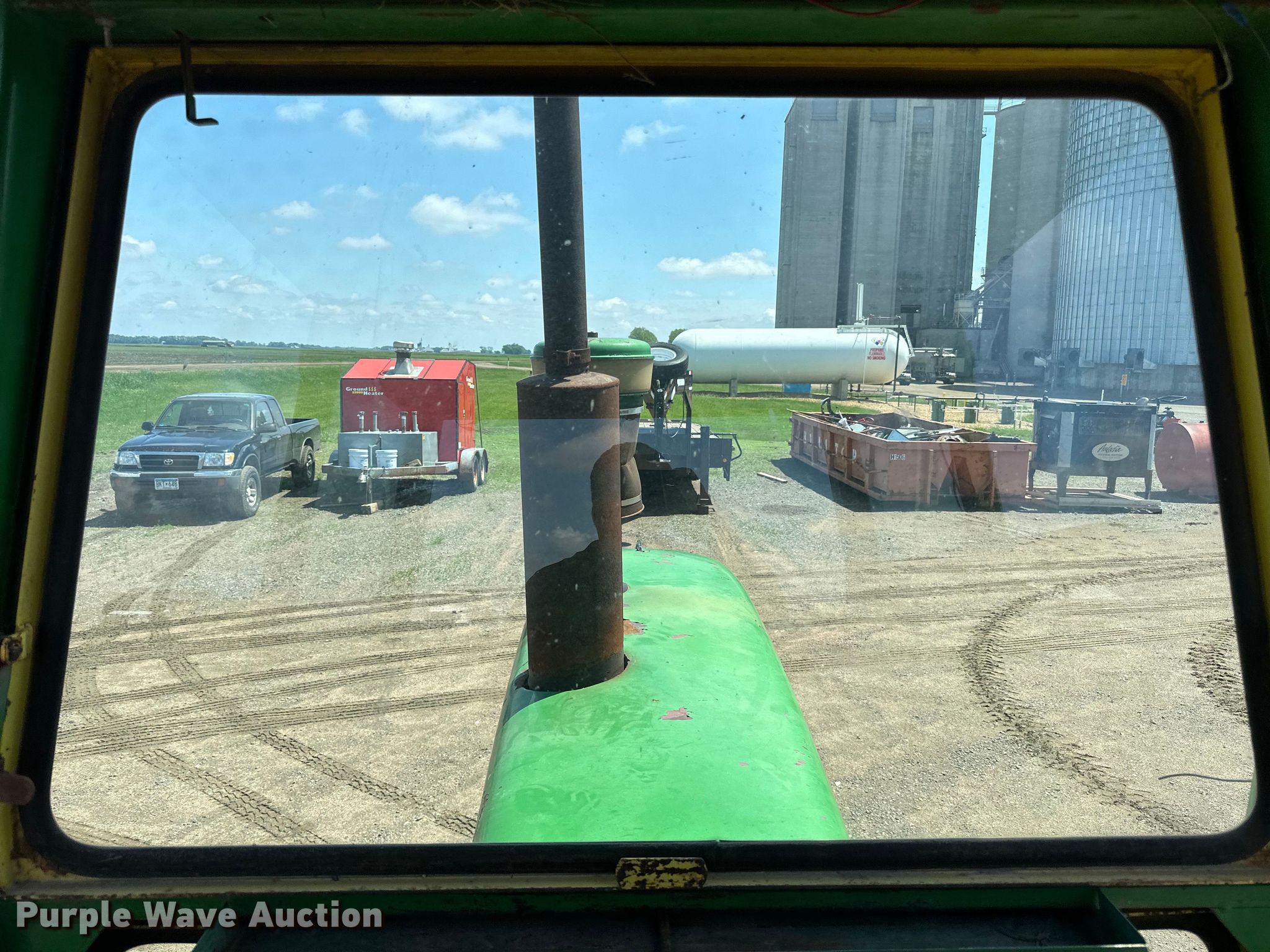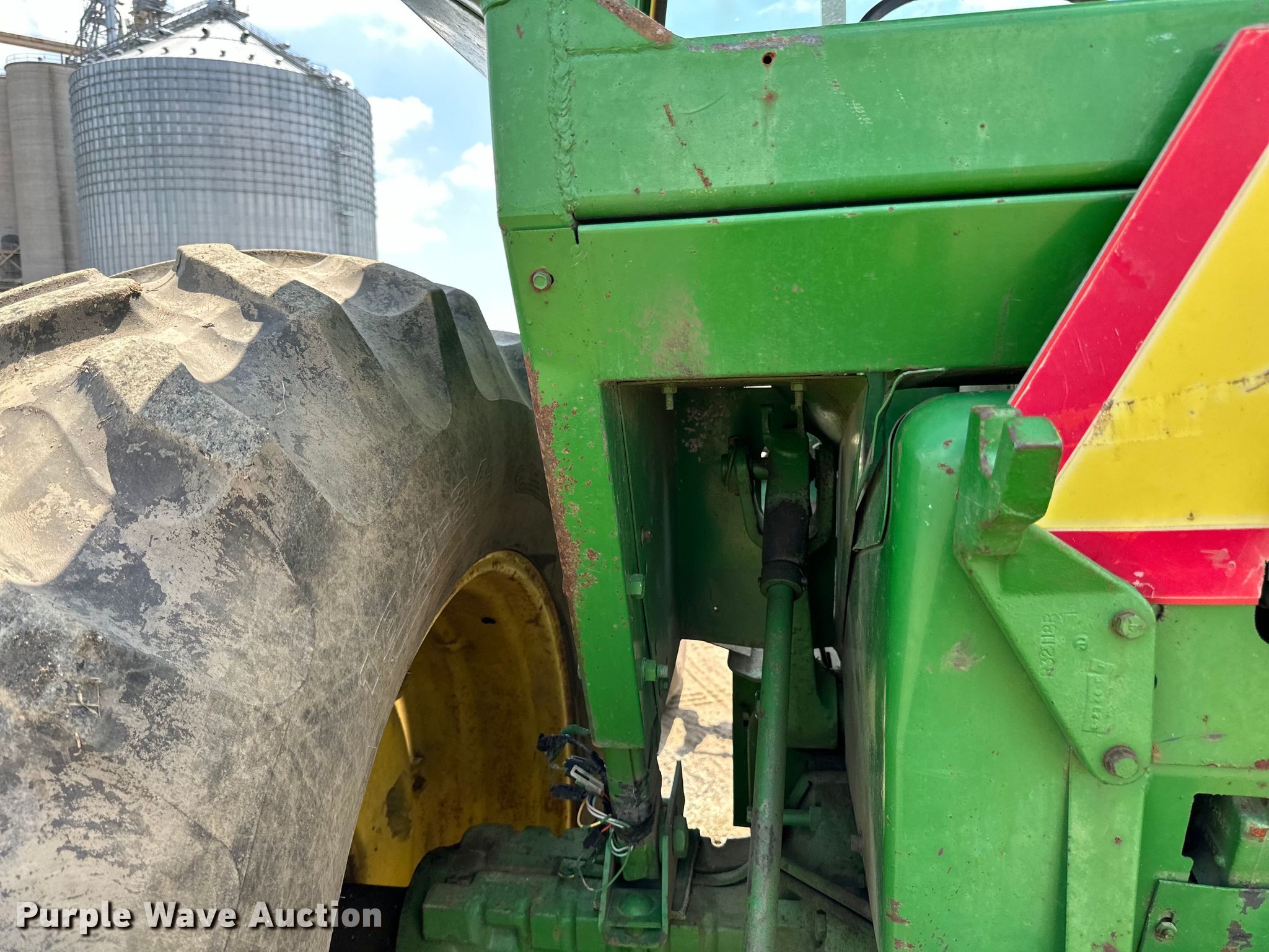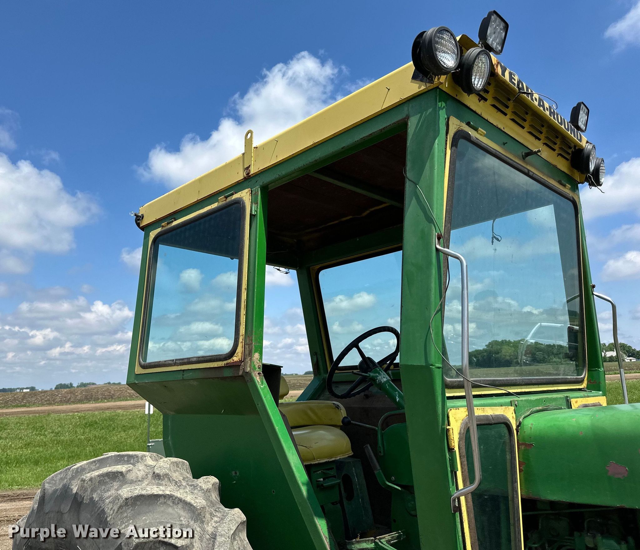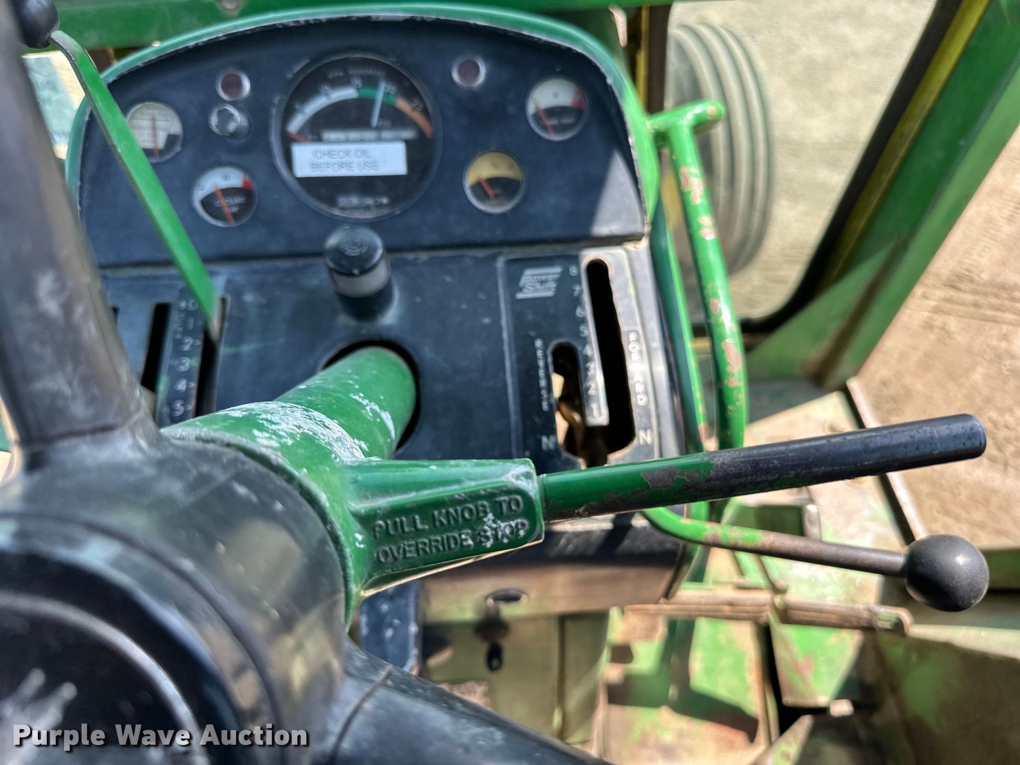 1966 John Deere 4020 tractor. Hours: 9,656 on meter, Serial: T213 144423R. Engine John Deere, Cylinders: 6, Fuel type: Diesel. Transmission Powershift, 8F - 4R. Features PTO: 540, 1000, Three point Top link. Tires Front: 10.00-16, Rear: 18.4-34. Notes Doors missing, Back window missing. Christensen Family Farms. Sleepy Eye, MN 56085