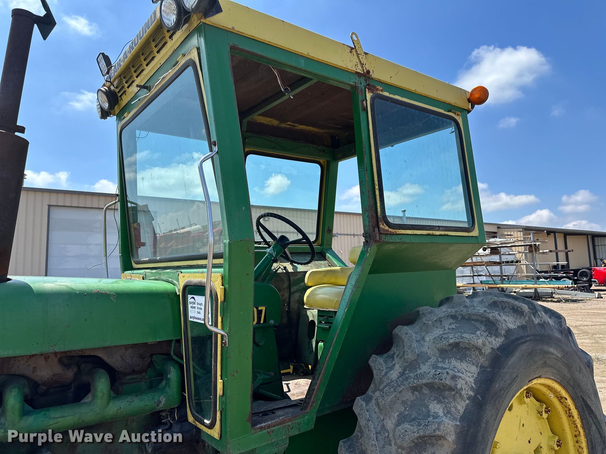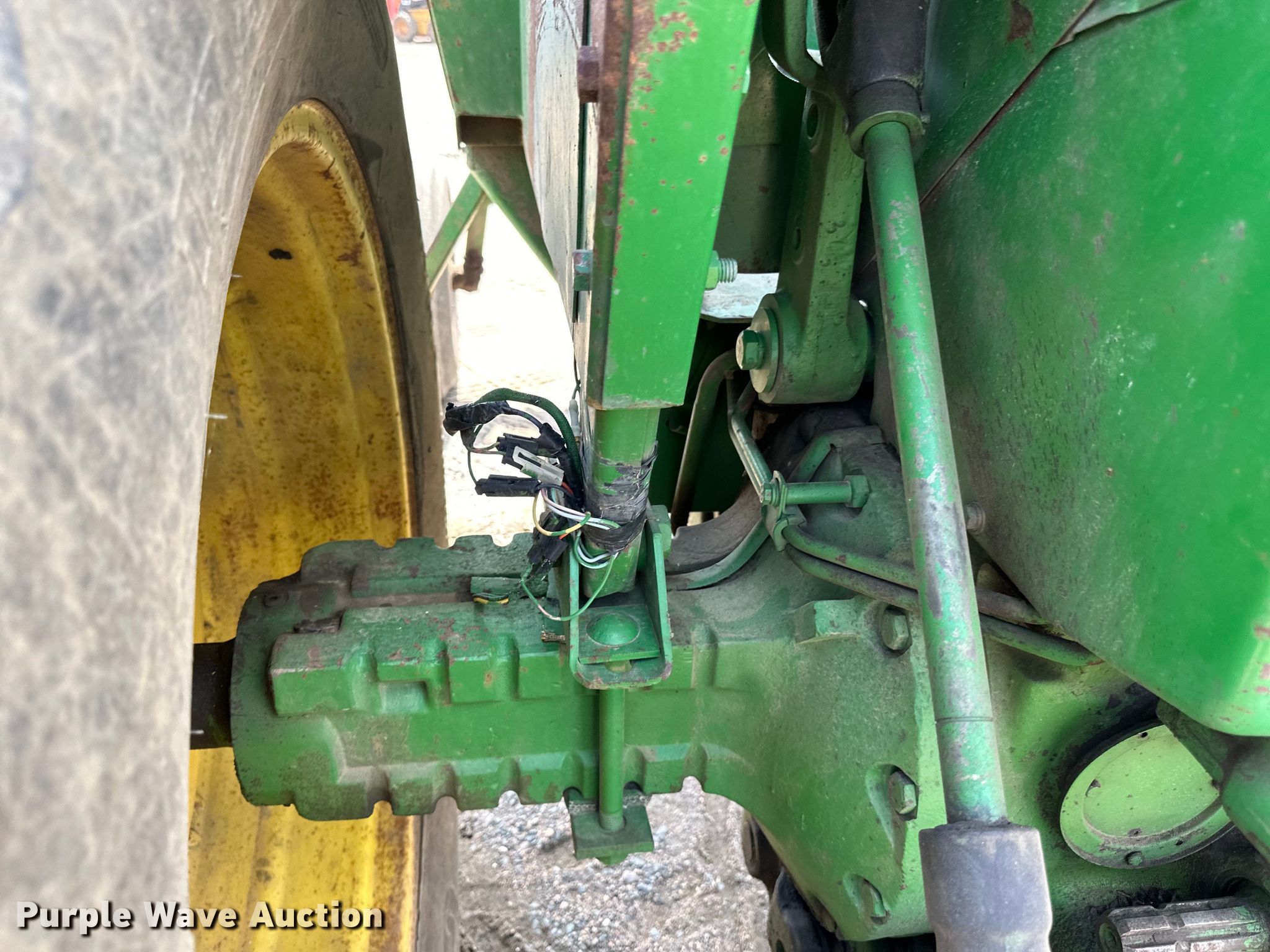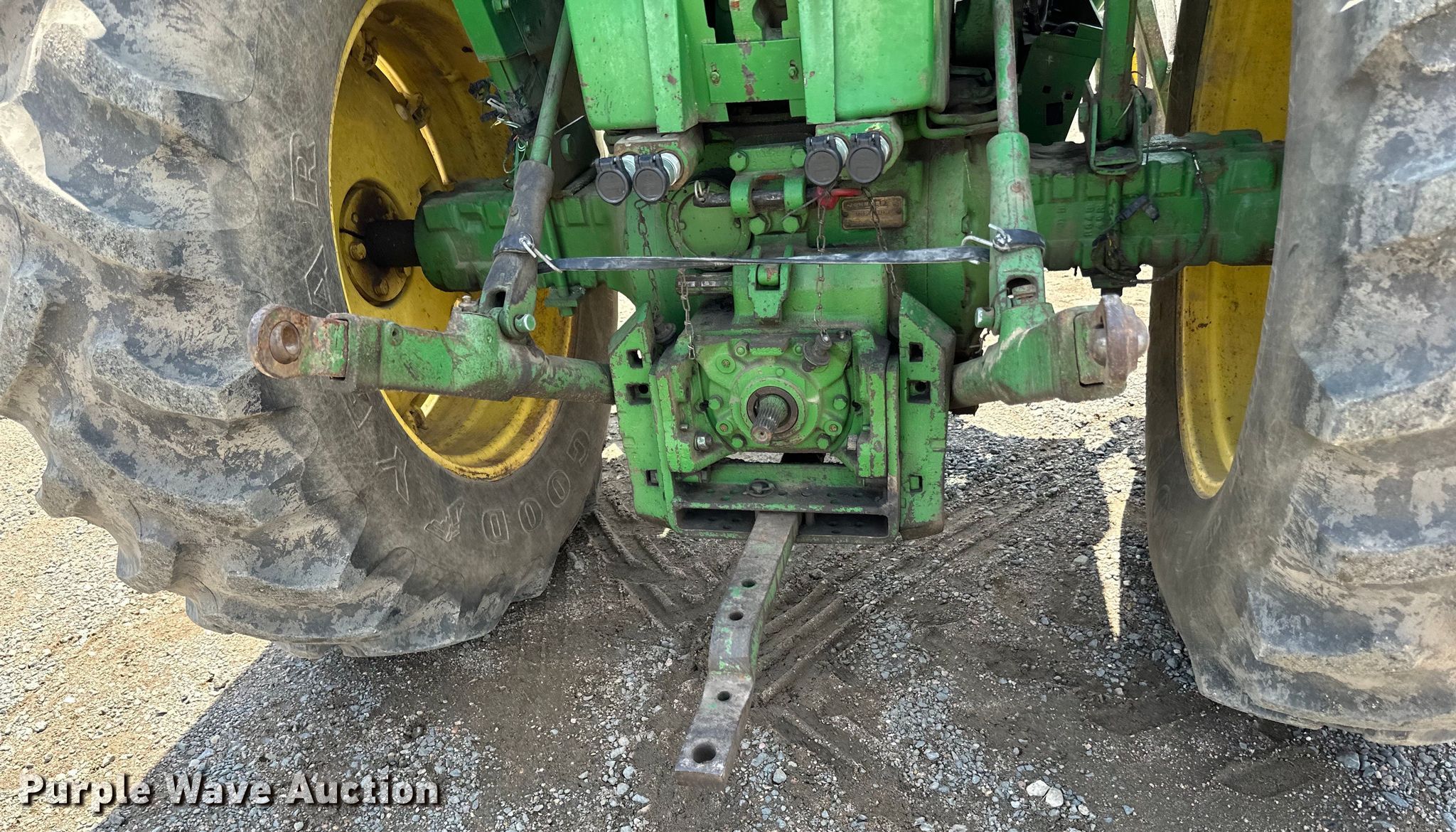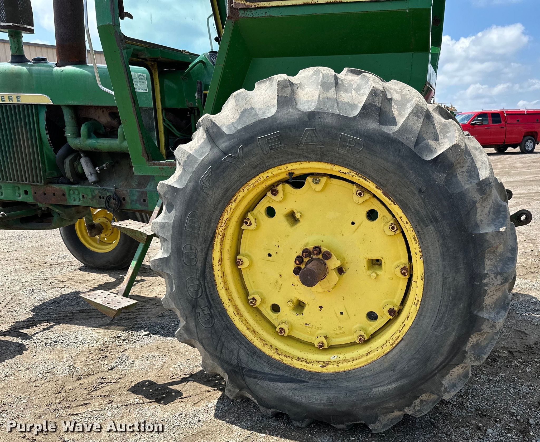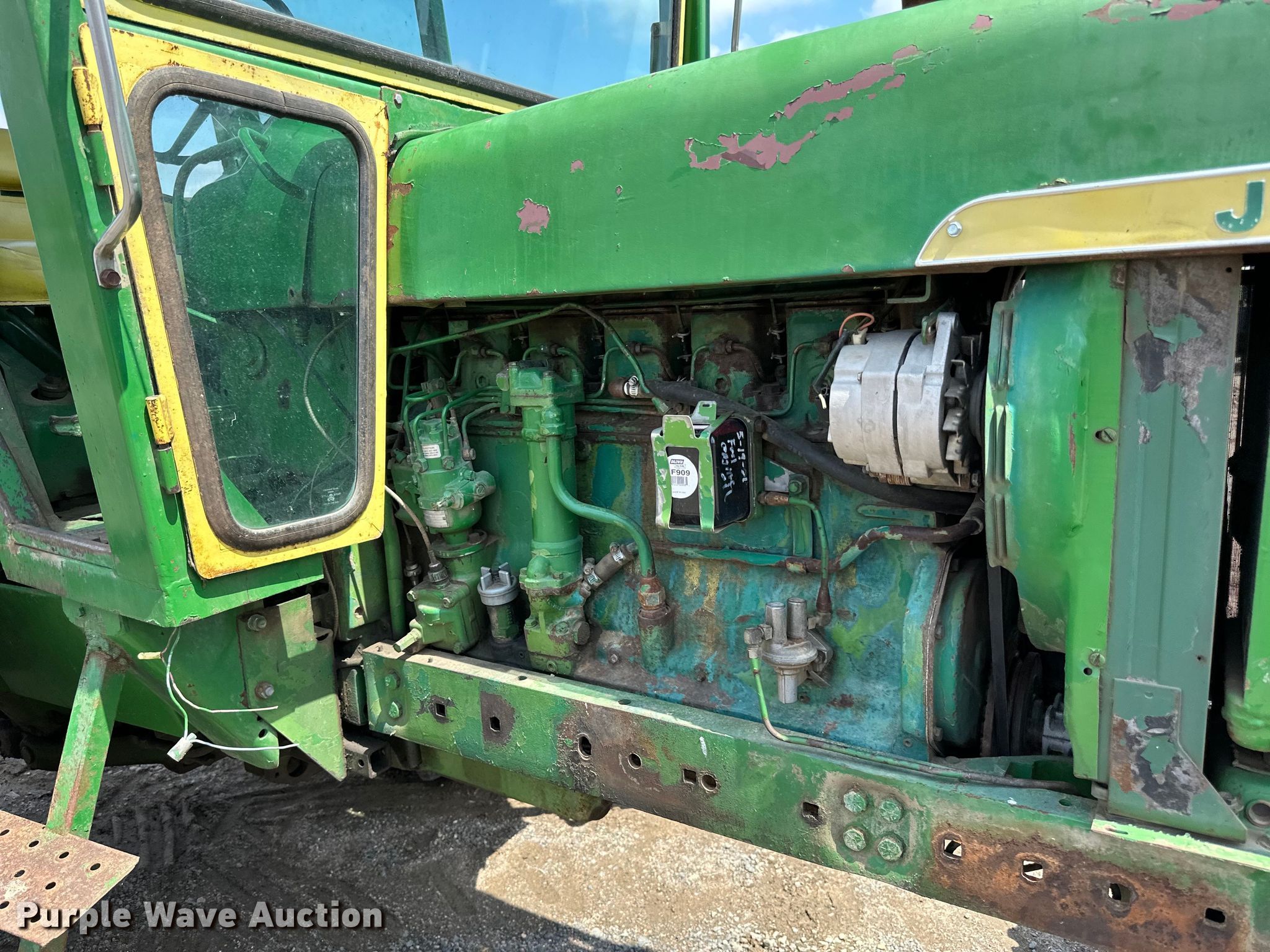 1966 John Deere 4020 tractor. Hours: 9,656 on meter, Serial: T213 144423R. Engine John Deere, Cylinders: 6, Fuel type: Diesel. Transmission Powershift, 8F - 4R. Features PTO: 540, 1000, Three point Top link. Tires Front: 10.00-16, Rear: 18.4-34. Notes Doors missing, Back window missing. Christensen Family Farms. Sleepy Eye, MN 56085
