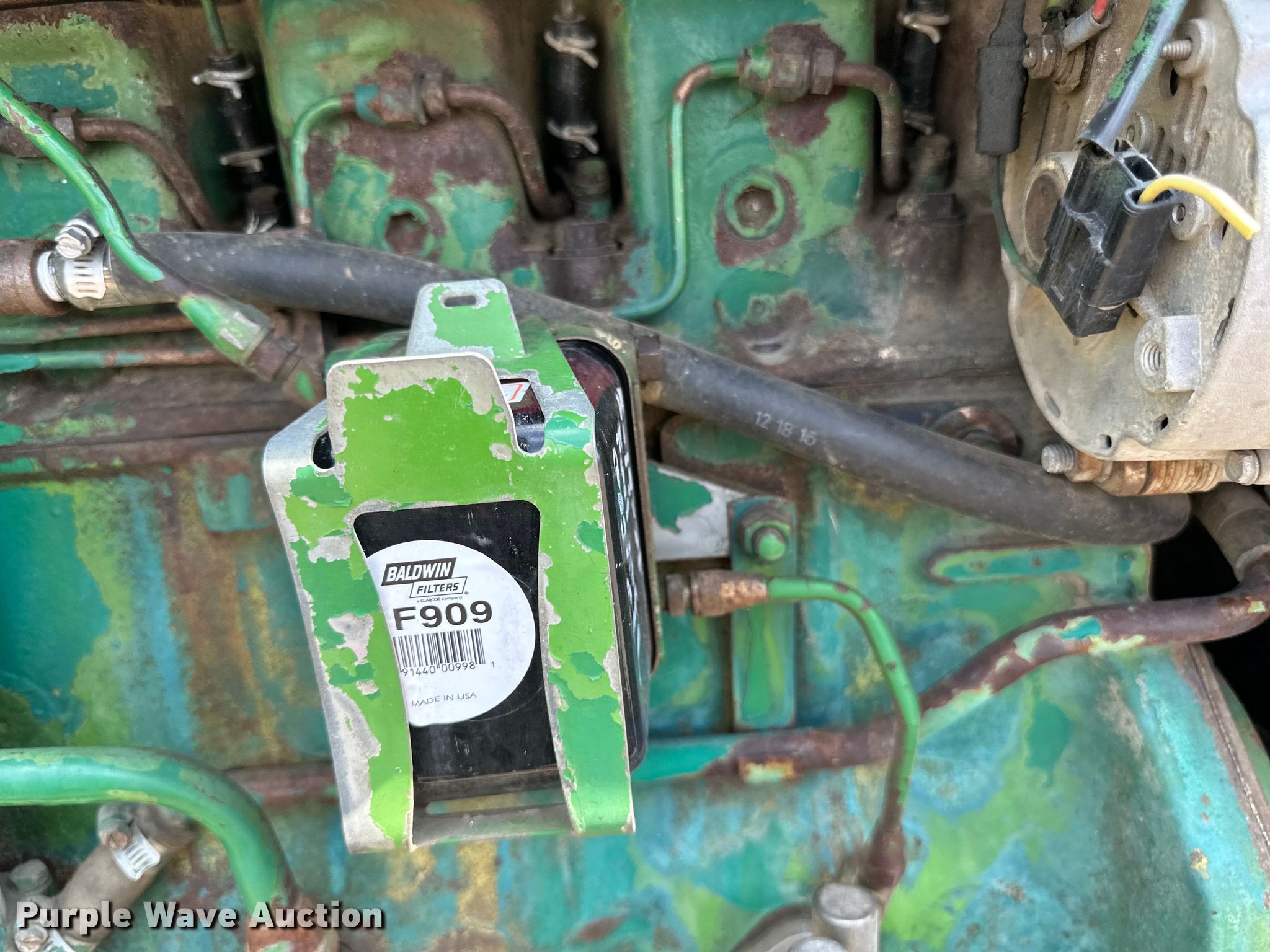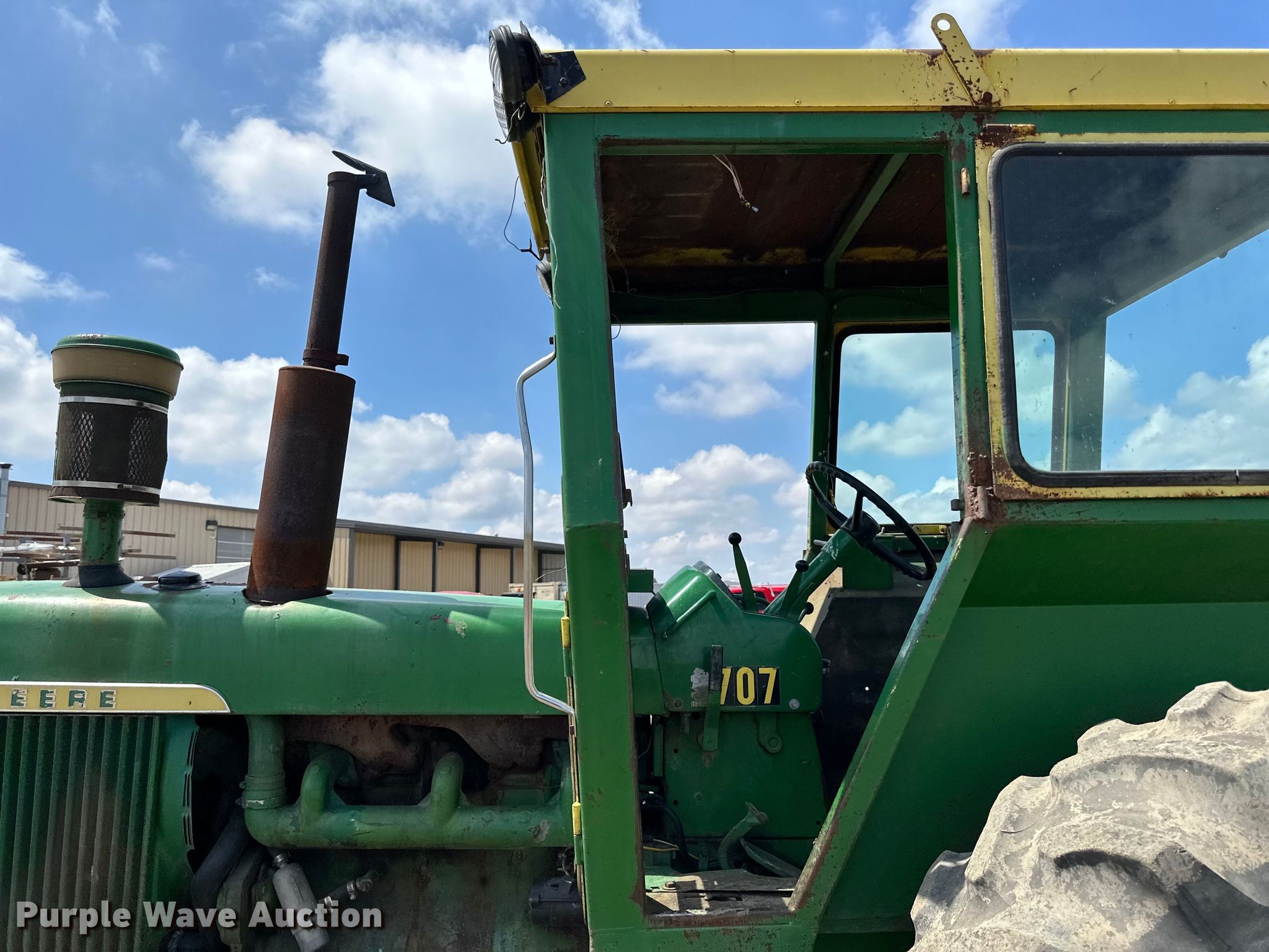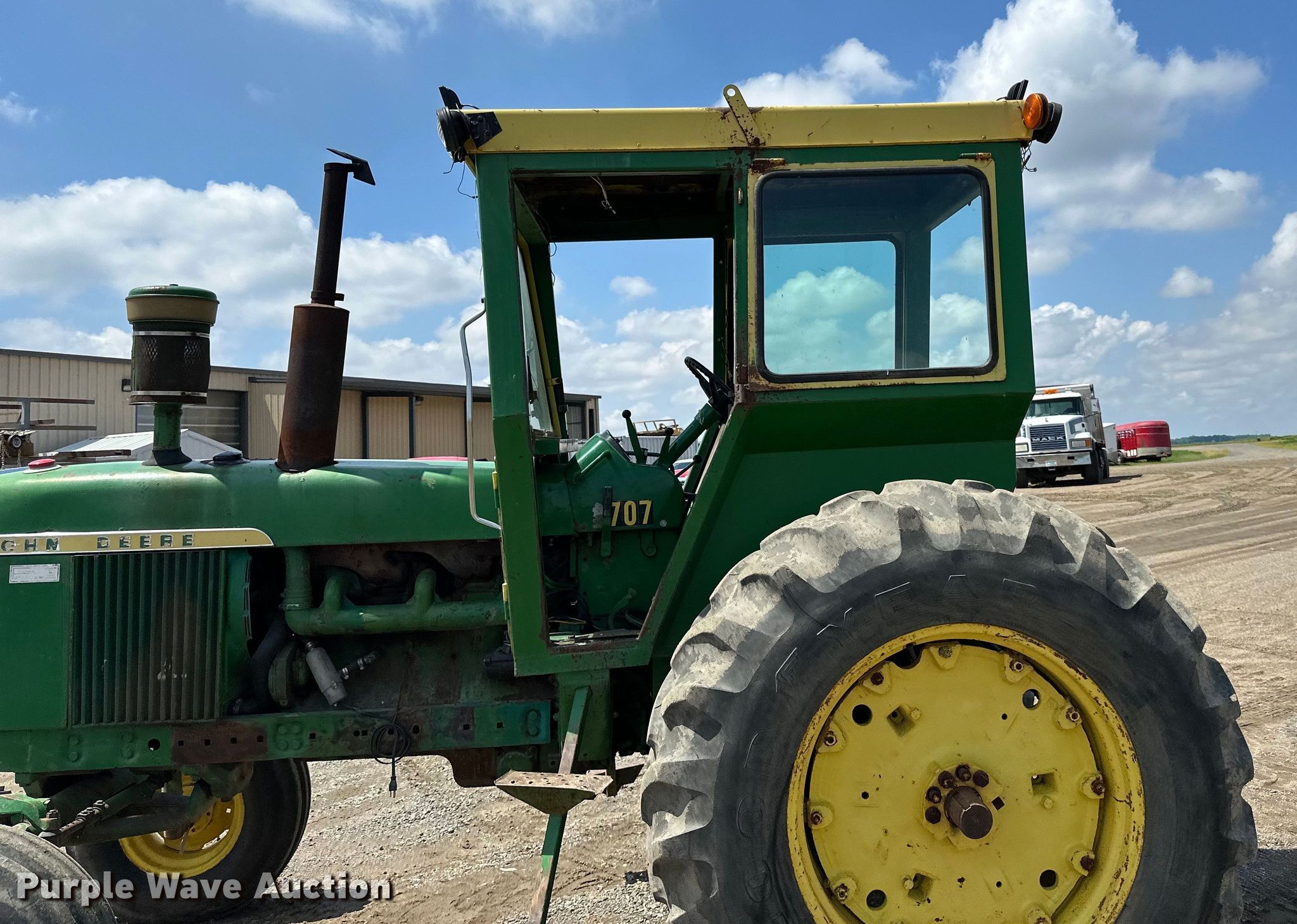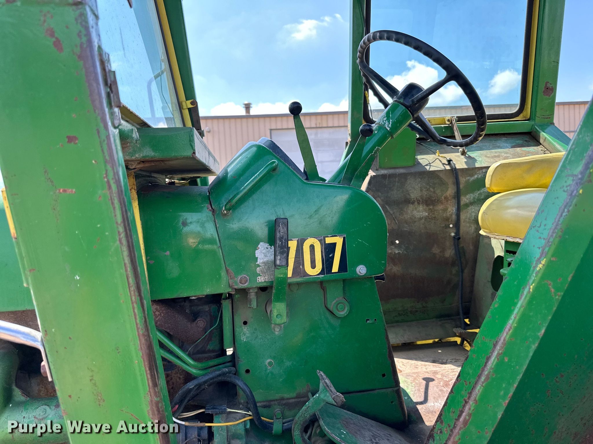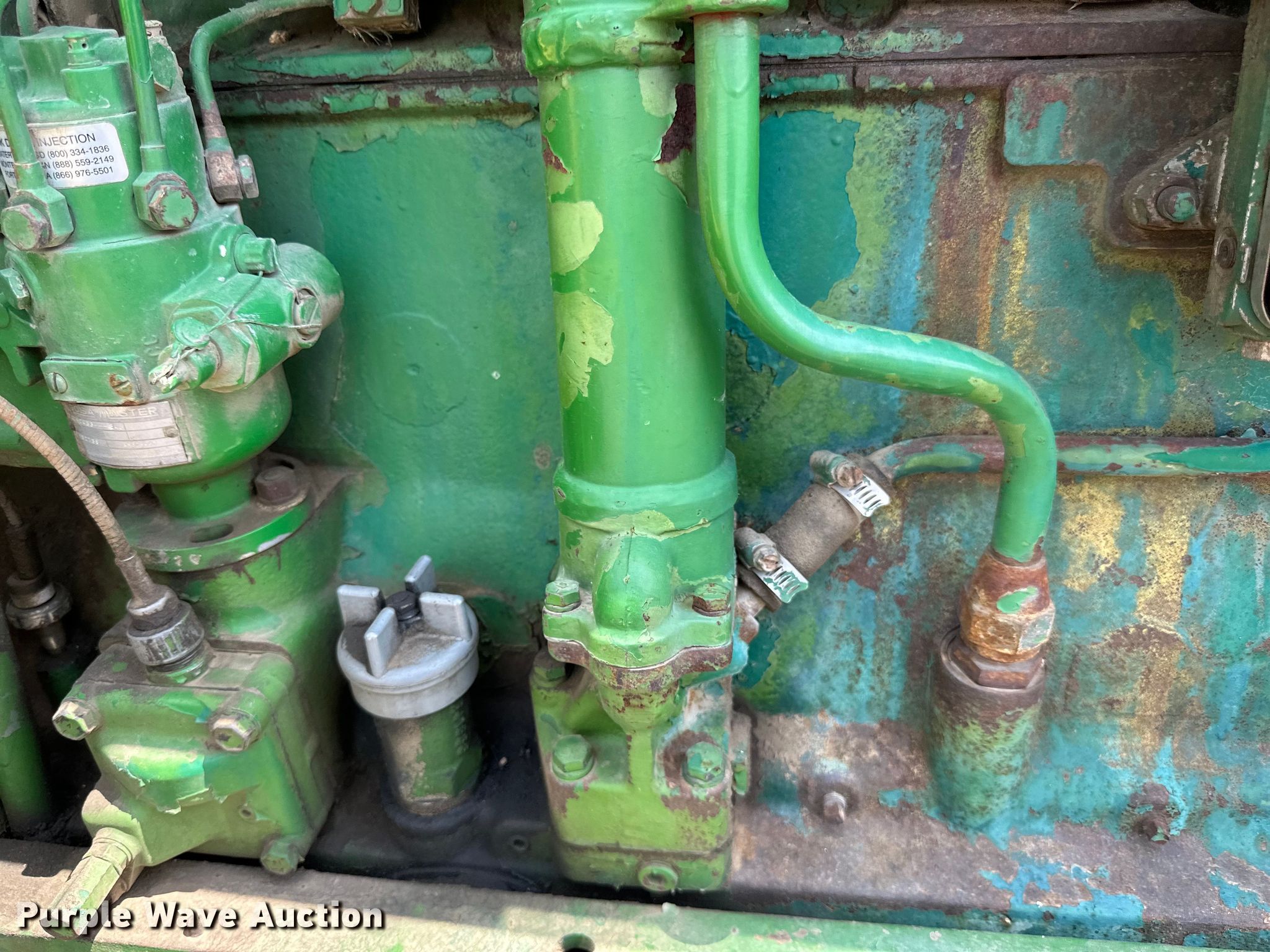 1966 John Deere 4020 tractor. Hours: 9,656 on meter, Serial: T213 144423R. Engine John Deere, Cylinders: 6, Fuel type: Diesel. Transmission Powershift, 8F - 4R. Features PTO: 540, 1000, Three point Top link. Tires Front: 10.00-16, Rear: 18.4-34. Notes Doors missing, Back window missing. Christensen Family Farms. Sleepy Eye, MN 56085