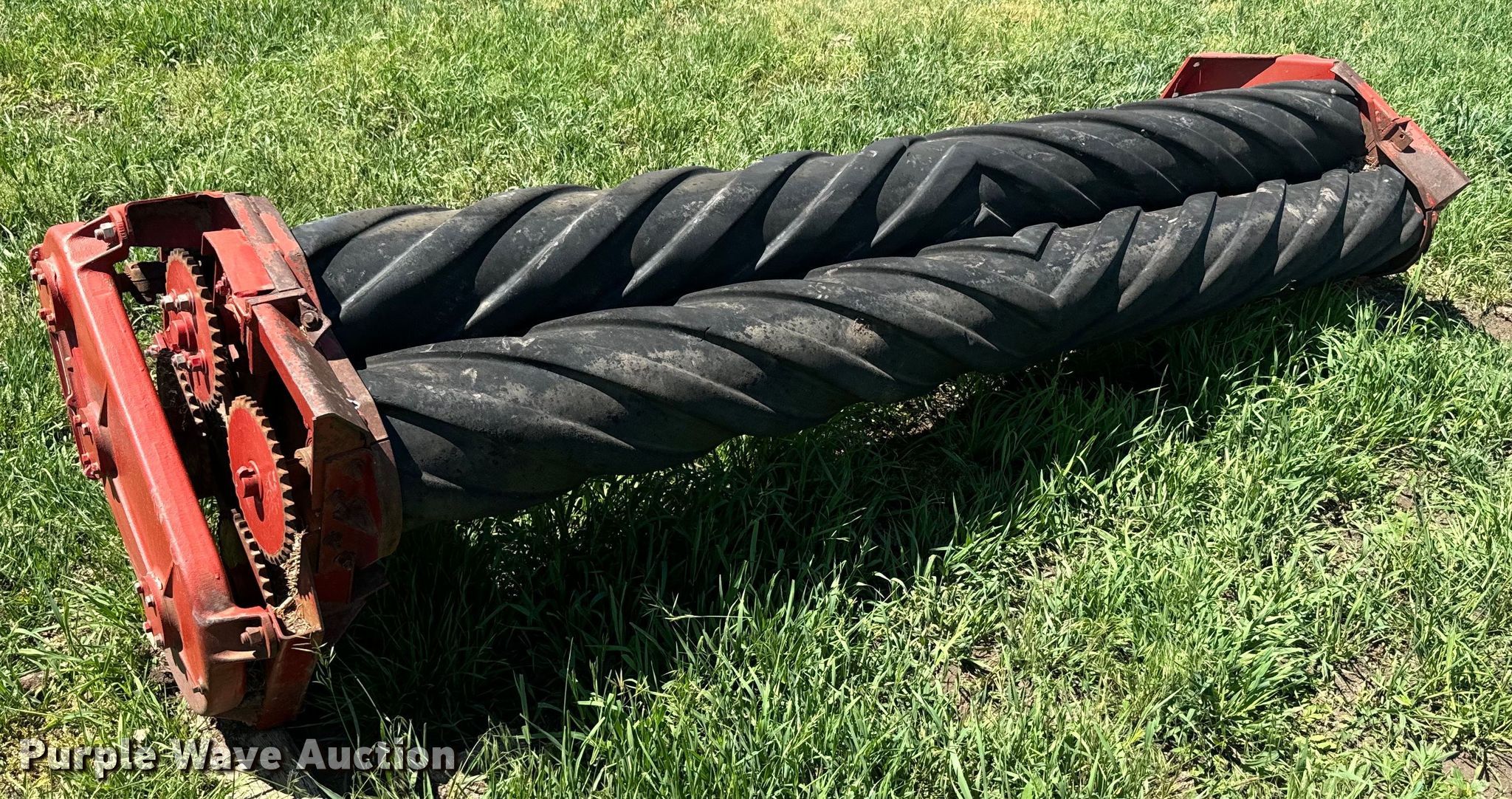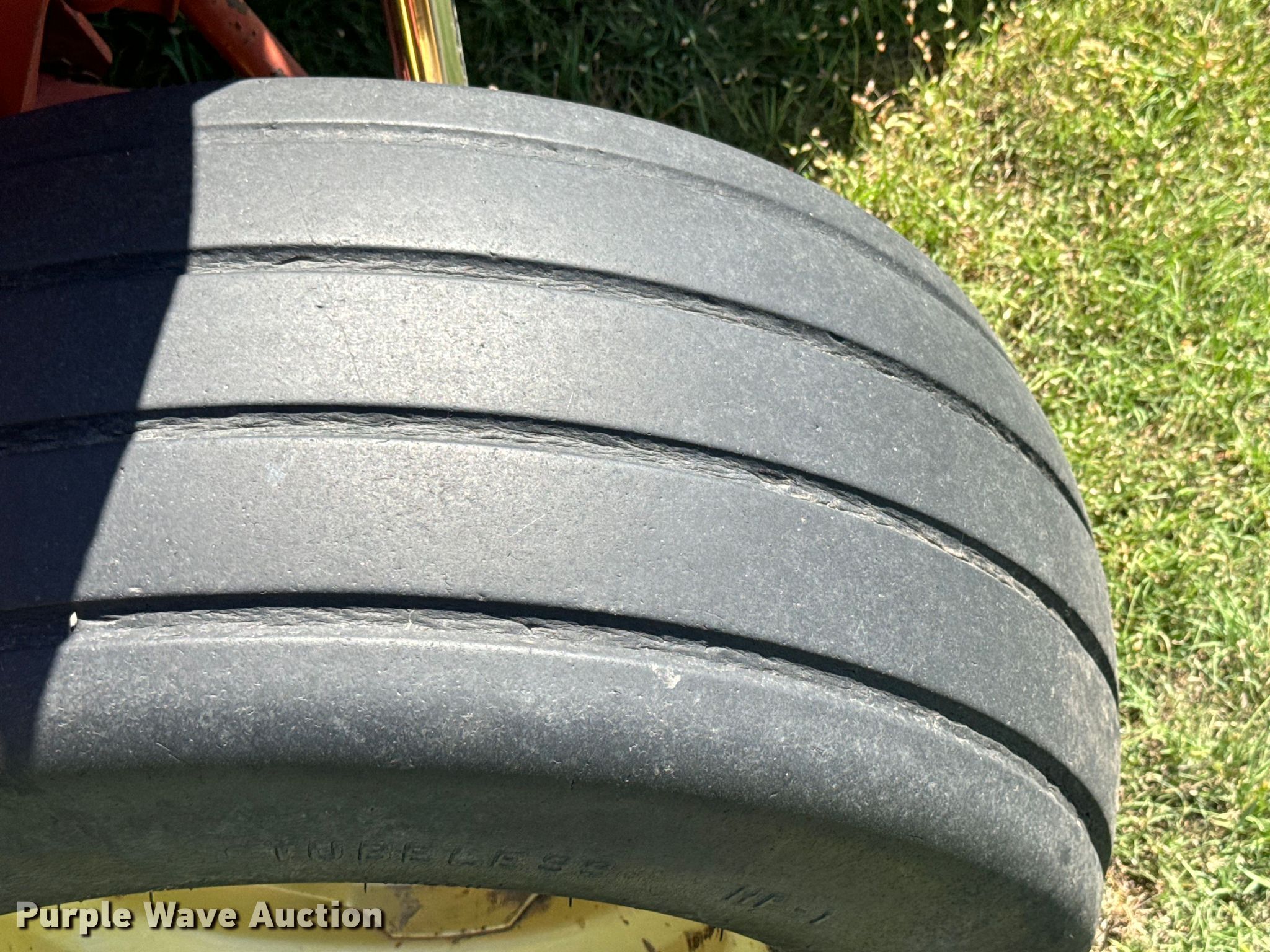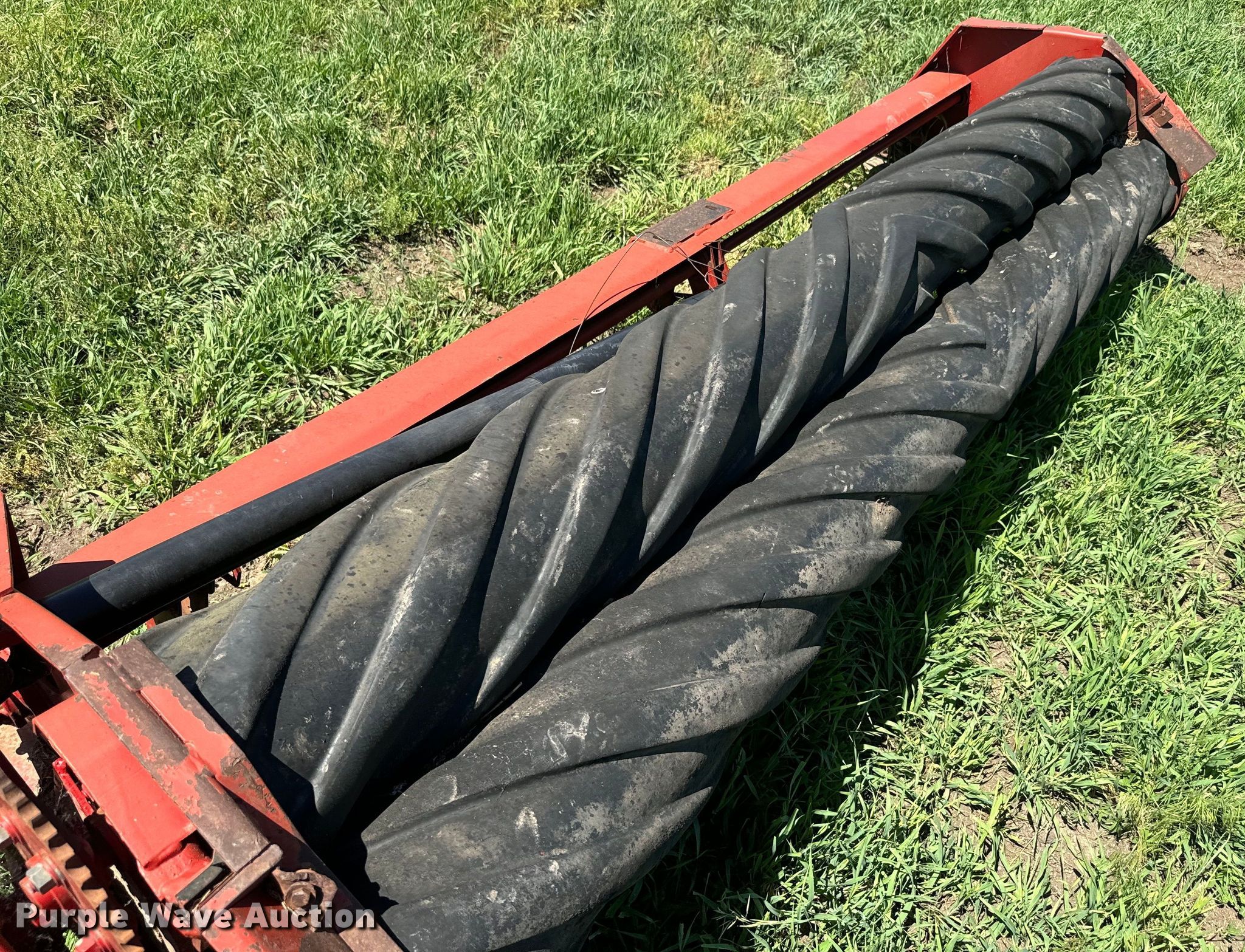 New Holland 116 swather / windrower. Serial: 579833. Features PTO: 1000, Hydraulic PTO pump, Center pivot, Hitch Draw bar, Head Sickle, Width: 15', Conditioners: Rubber/ rubber. Tires Size: 31x13.50-15. Notes Additional conditioner included. Ellsworth, KS 67439