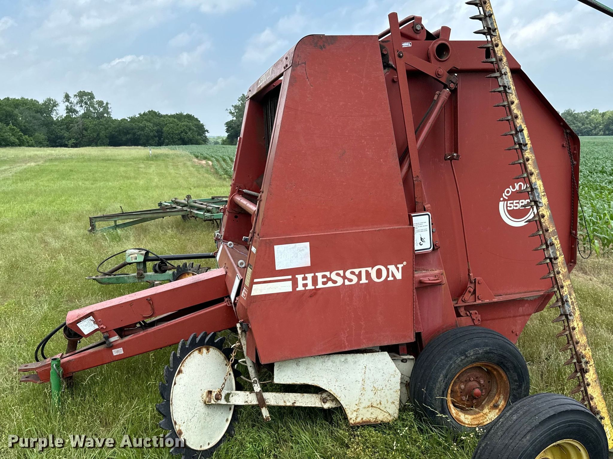 Purple Wave is selling a used Round Baler in Kansas. This item is a Hesston 5580 round baler with the following: Serial: R55802755