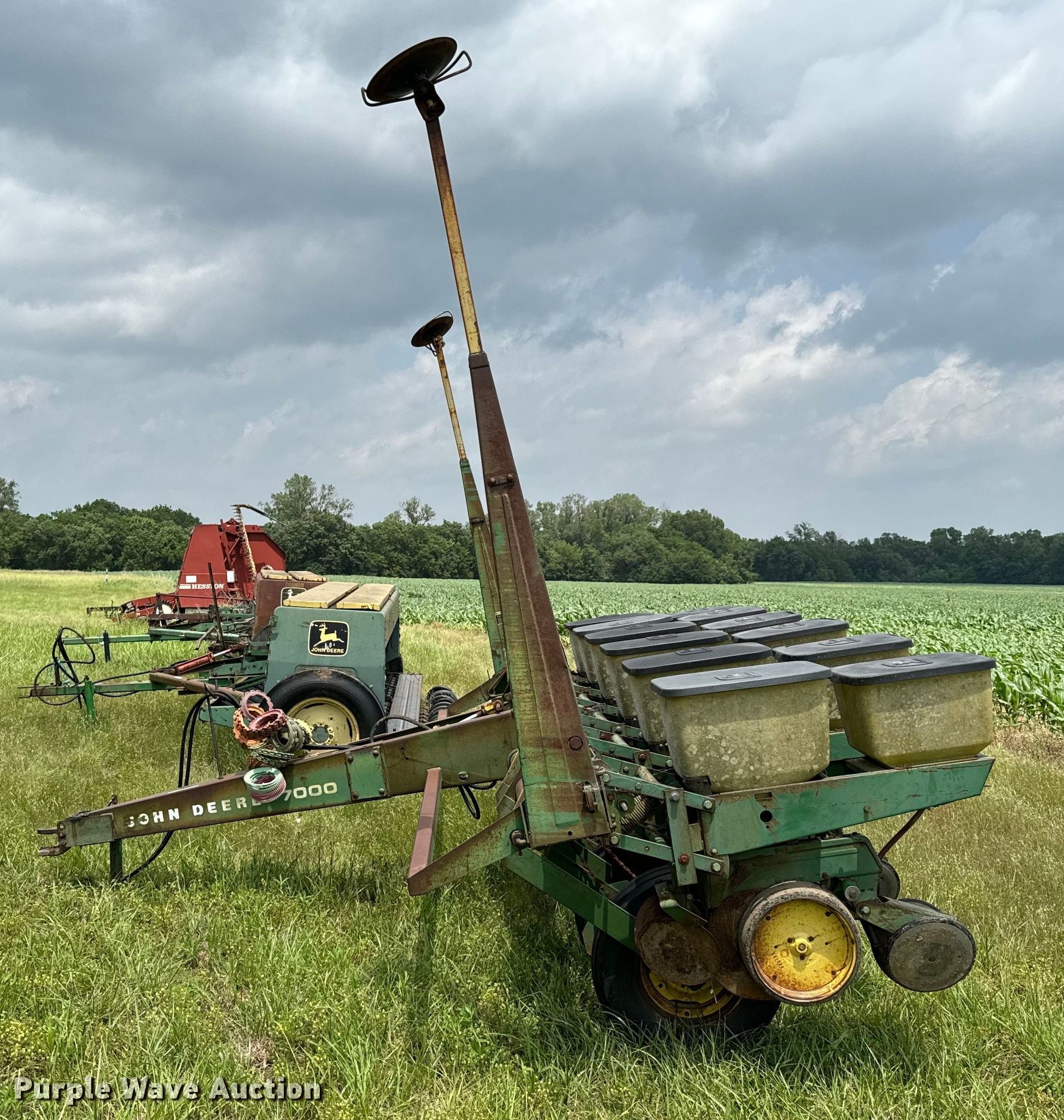 Purple Wave is selling a used Planter in Kansas. This item is a John Deere 7000 planter with the following: Row units: 6, Row spacing: 30", Serial: 123317A