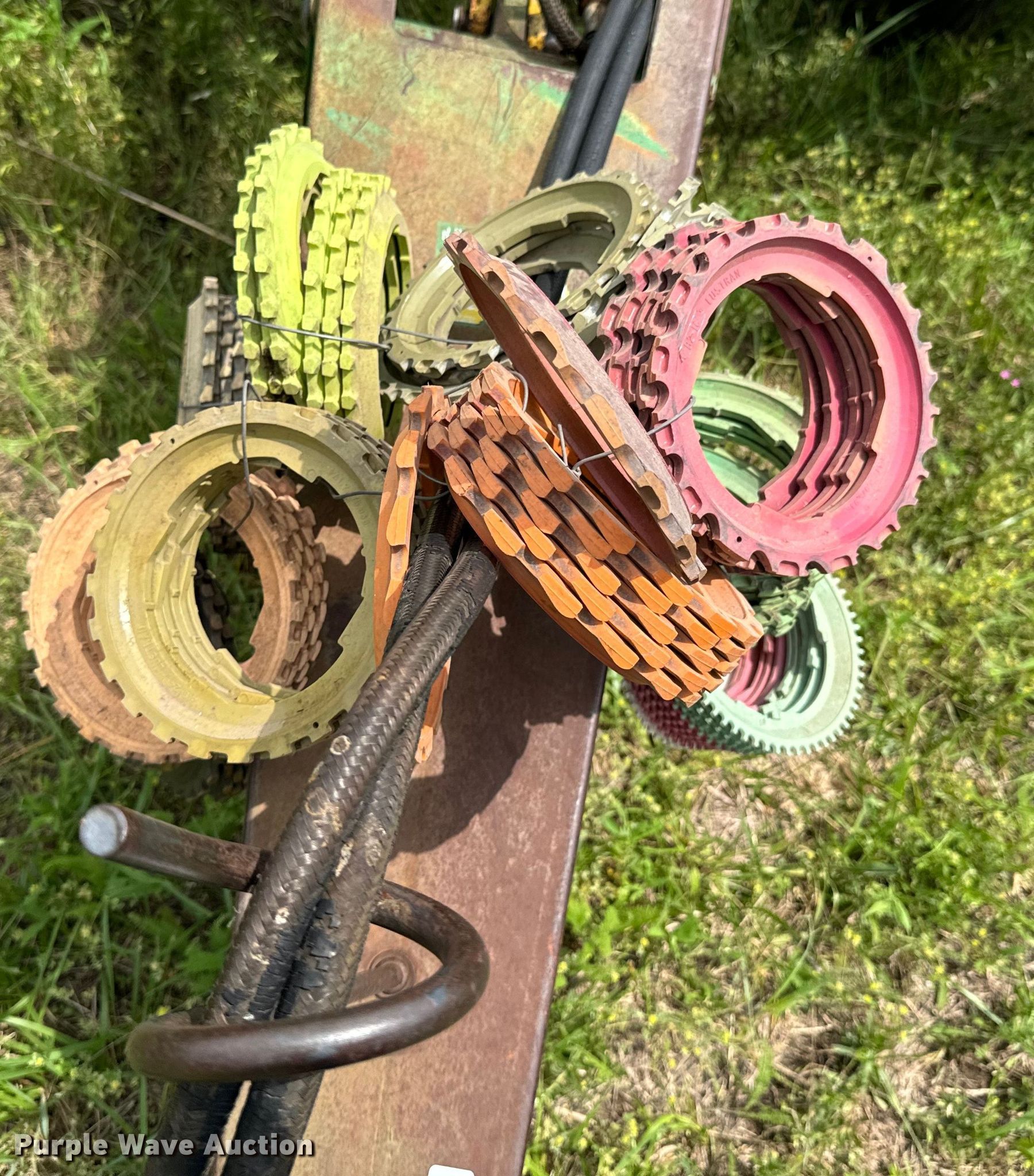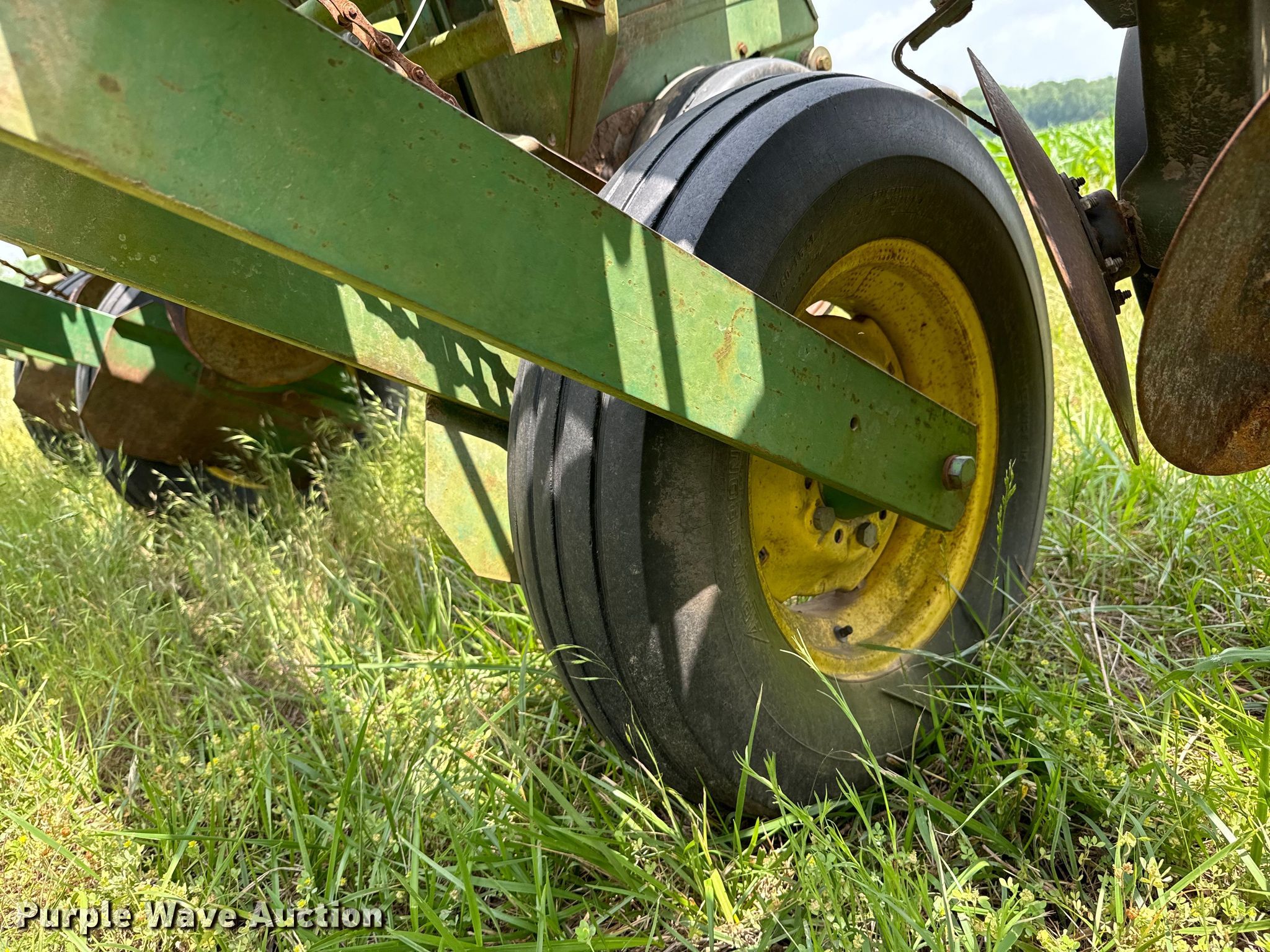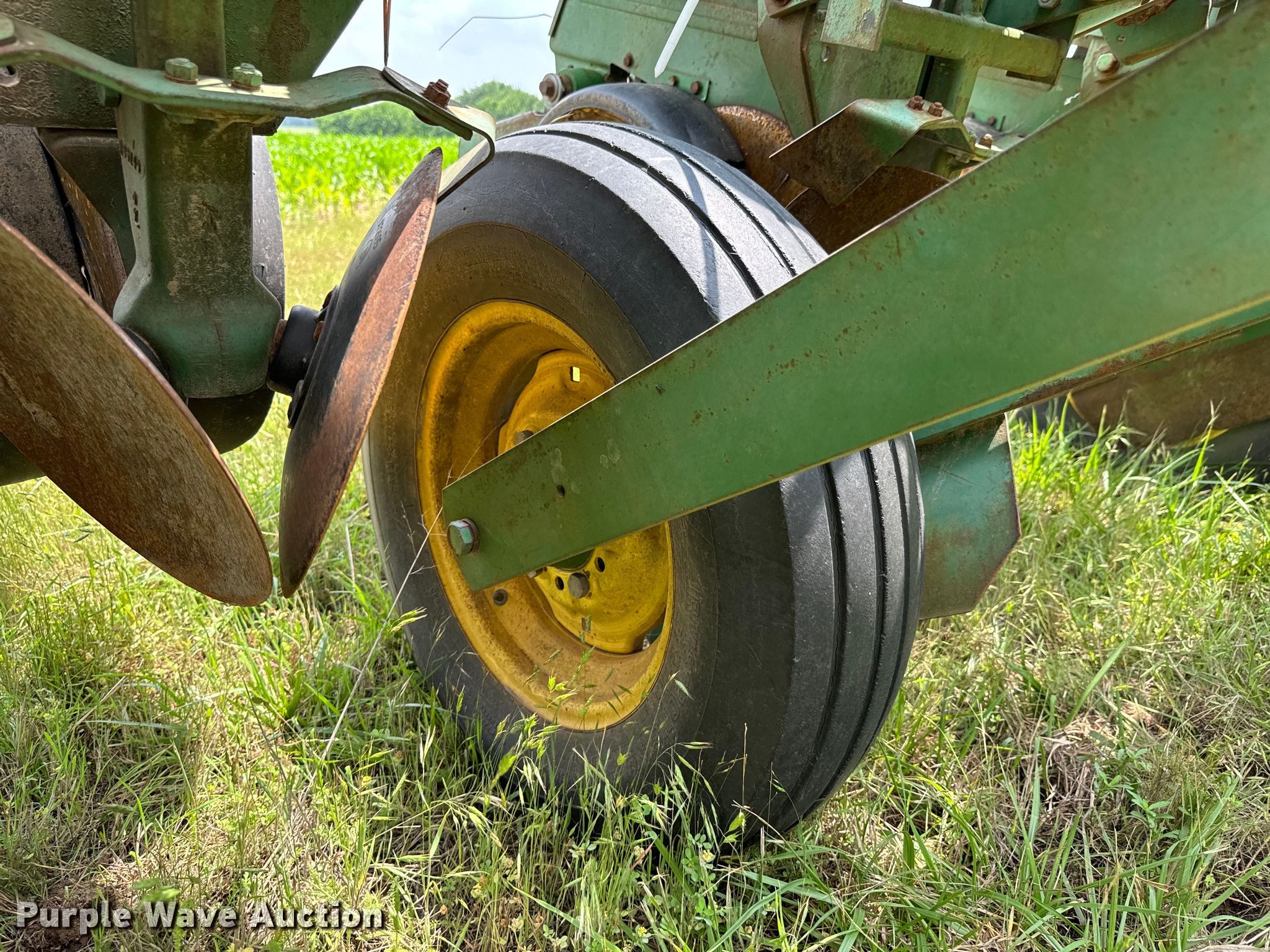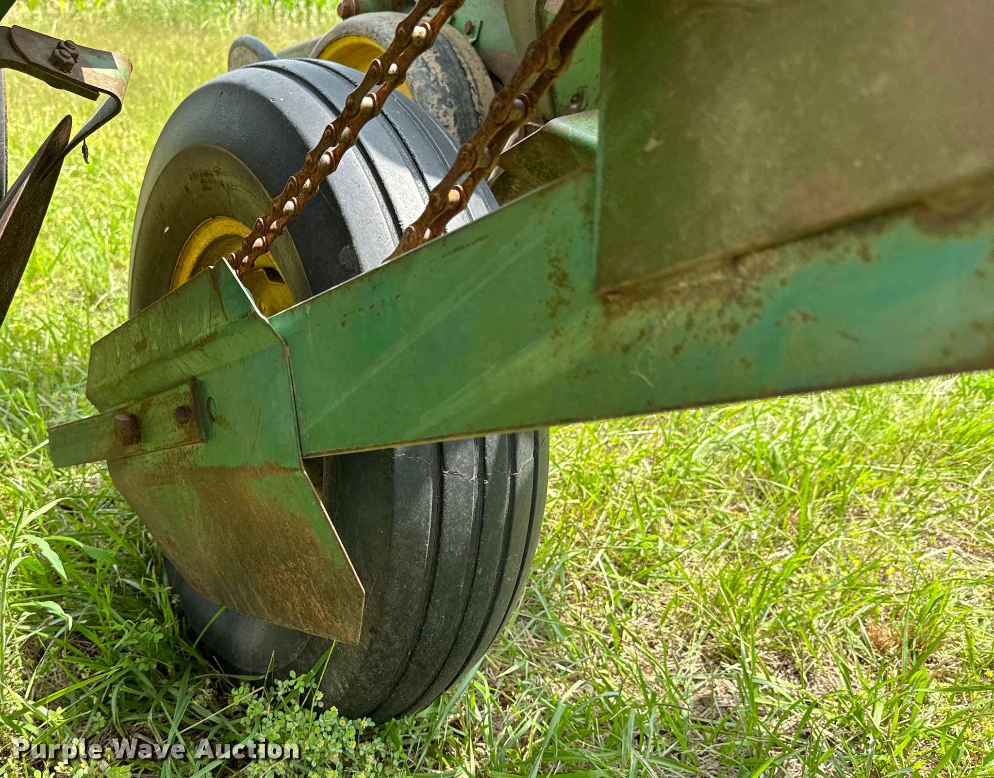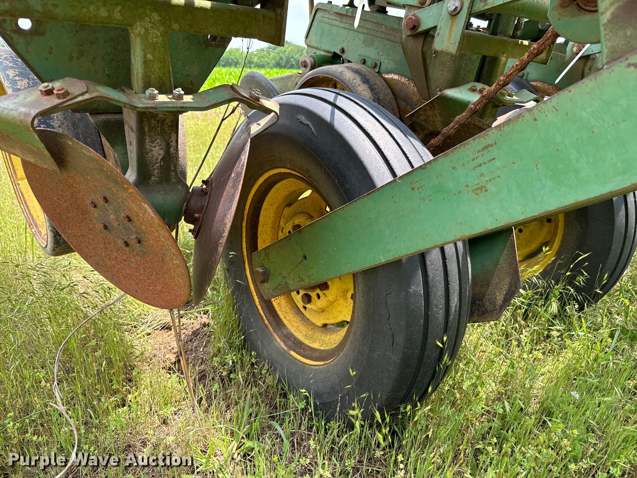 John Deere 7000 planter. Row units: 6, Row spacing: 30", Serial: 123317A. Features Frame Marker arm, Seed delivery Individual seed hoppers, Row units Meter drive: Ground, Down pressure: Hydraulic, Seed firmers, Disk openers: Double, Gauge wheels: Double, Closing system: Double Type: Rubber, Fertilizer/ insecticide Fertilizer, Application method: Seed firmer. Tires Transport tire size: 7.60-15 Quantity: 4. Havana, KS 67347
