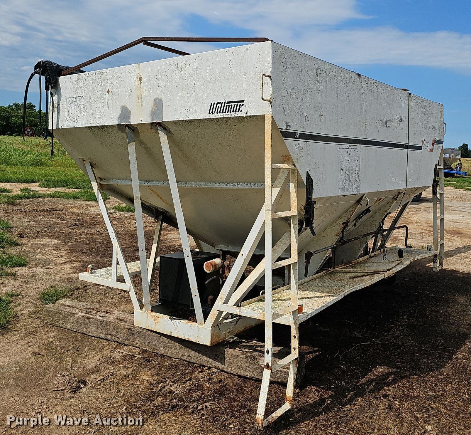 Purple Wave is selling a used Fertilizer or Seed Tender in Missouri. This item is a Willmar Roadrunner seed tender bed with the following: Length: 15', Diameter: 8", Lift: Manual, 12' L x 94" W x 68" H