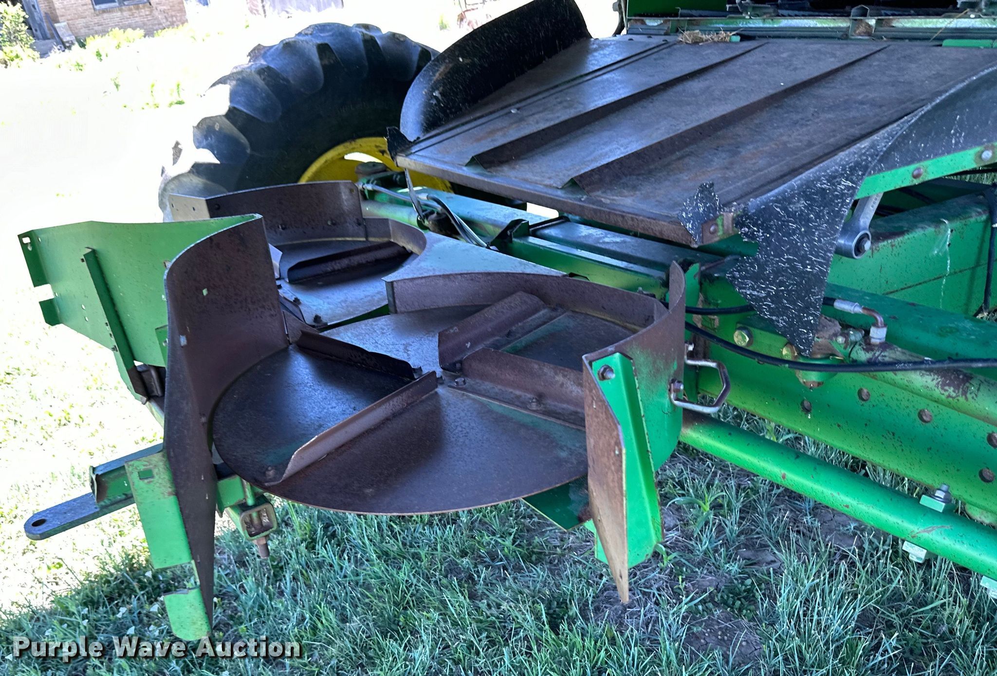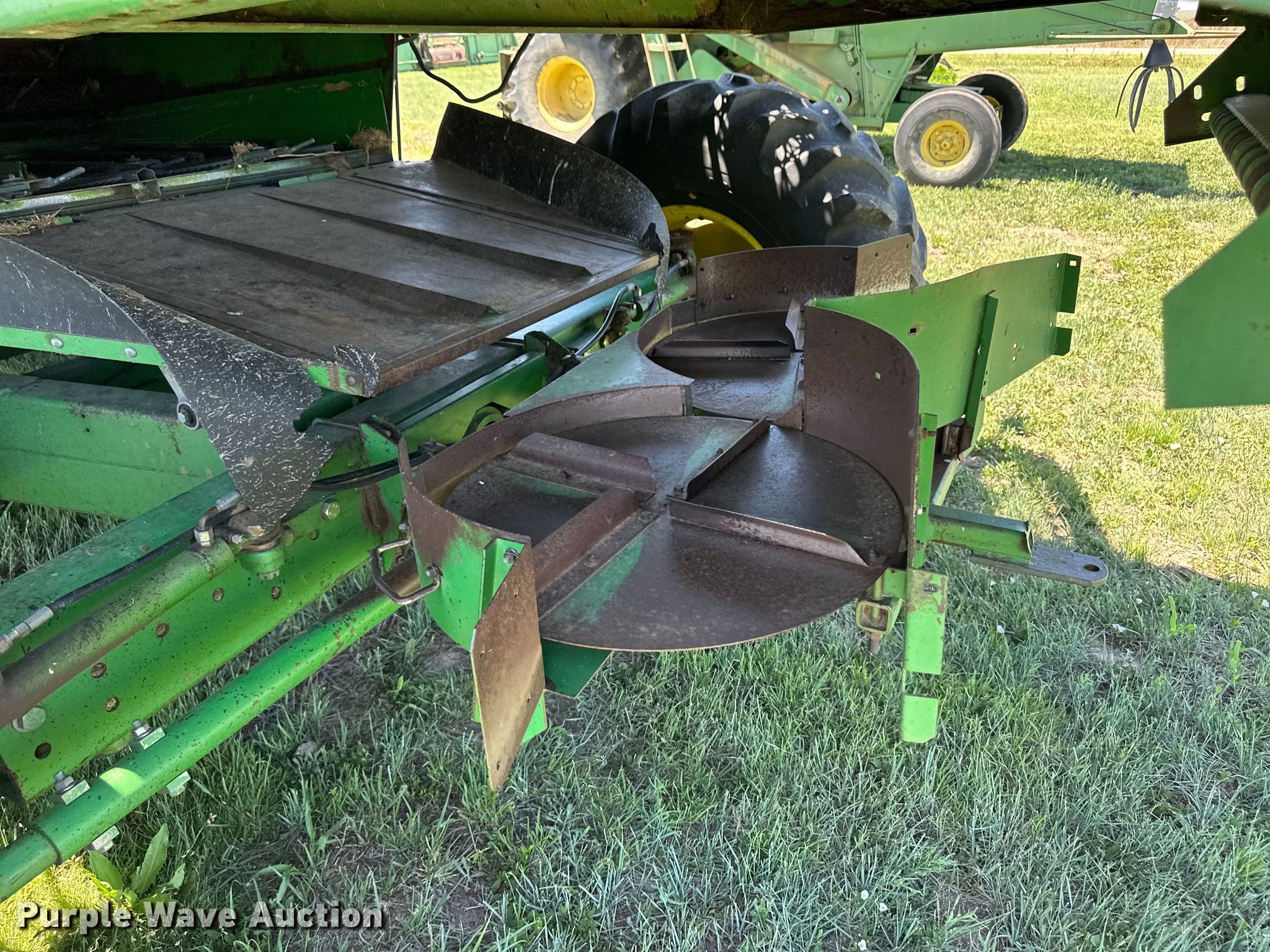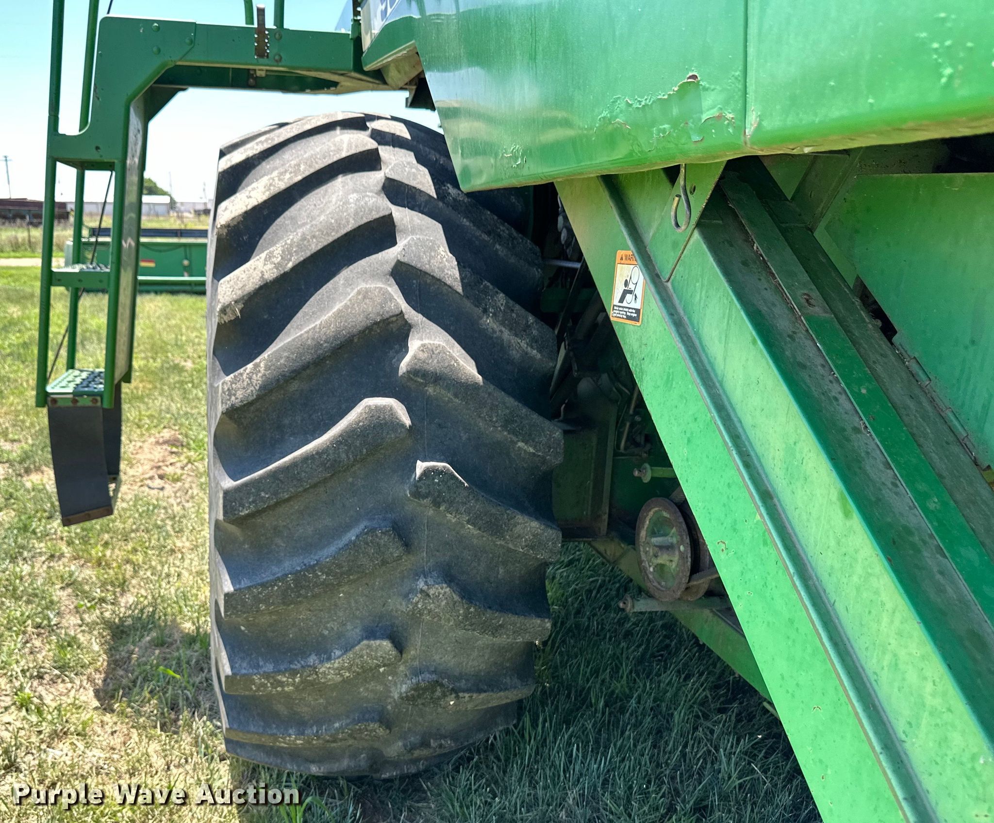 1996 John Deere 9600 combine. Engine hours: 6,368 on meter, Separator hours: 4,376 on meter, Serial: H09600X665946. Engine John Deere, Cylinders: 6, Fuel type: Diesel. Transmission Hydrostatic, 3F - 3R. Interior AC, Heat. Features Feederhouse: Variable speed, Rotor speeds: Variable, Chaff spreader, Straw chopper, Bin: Extensions, Unloading auger length: 19'. Tires Front: 30.5L-32, Rear: 18.4-25. Nowlin Cattle Company. Booker, TX 79005