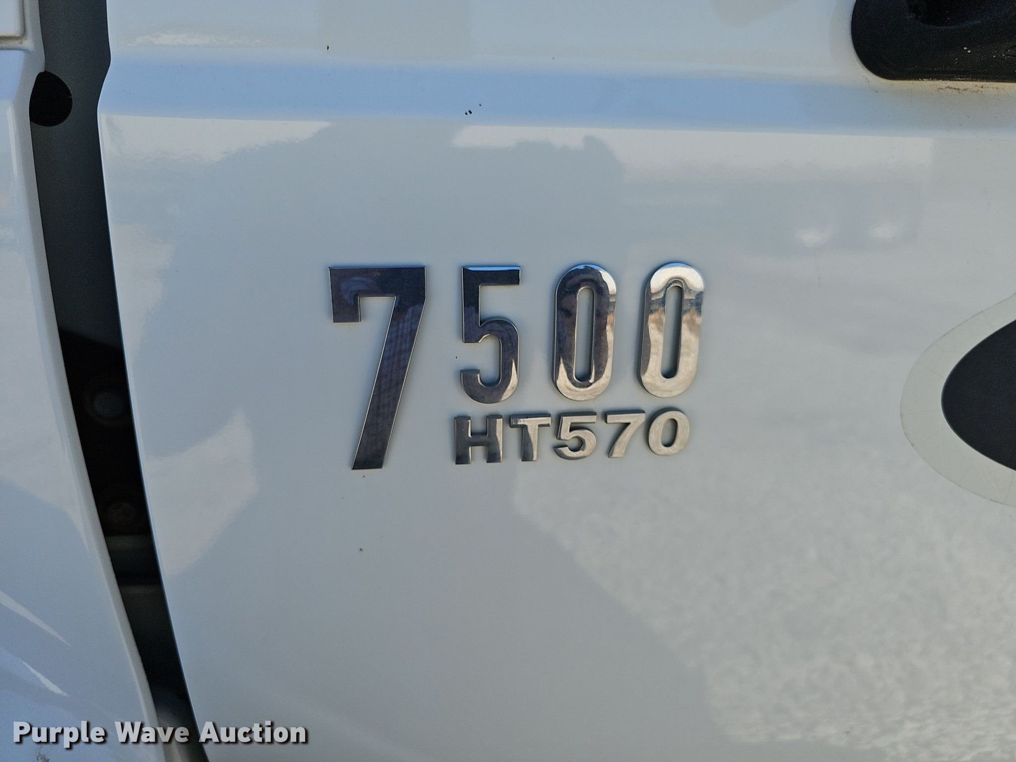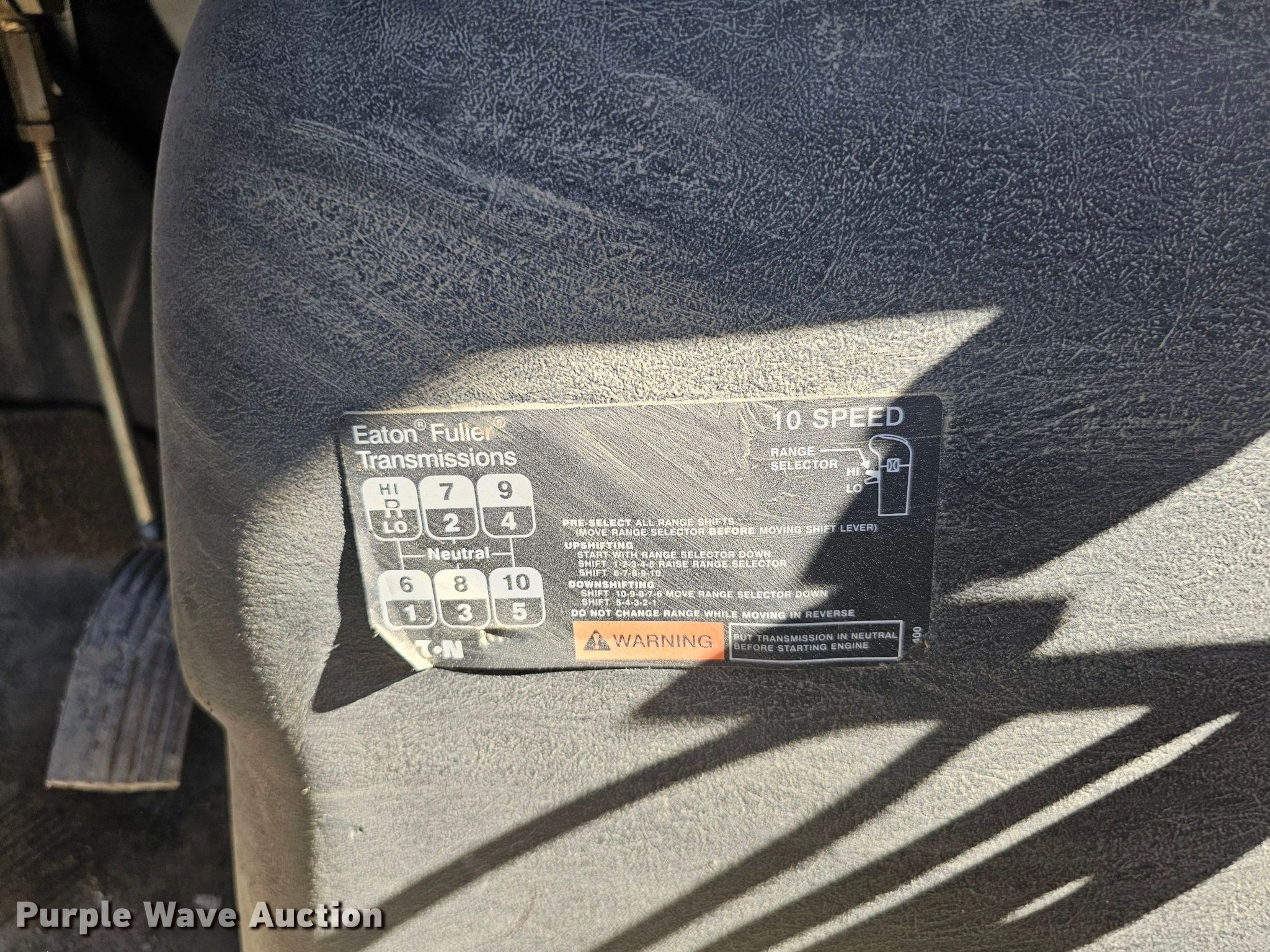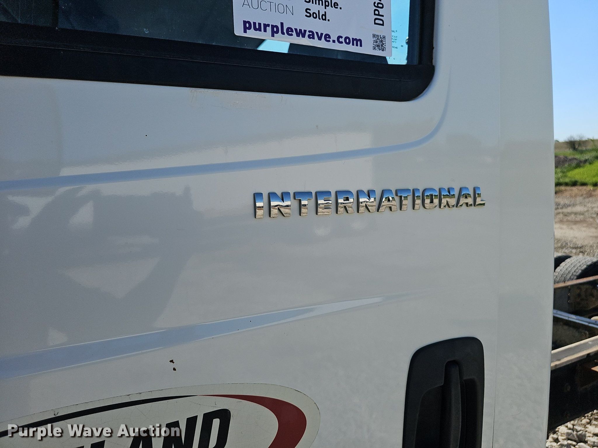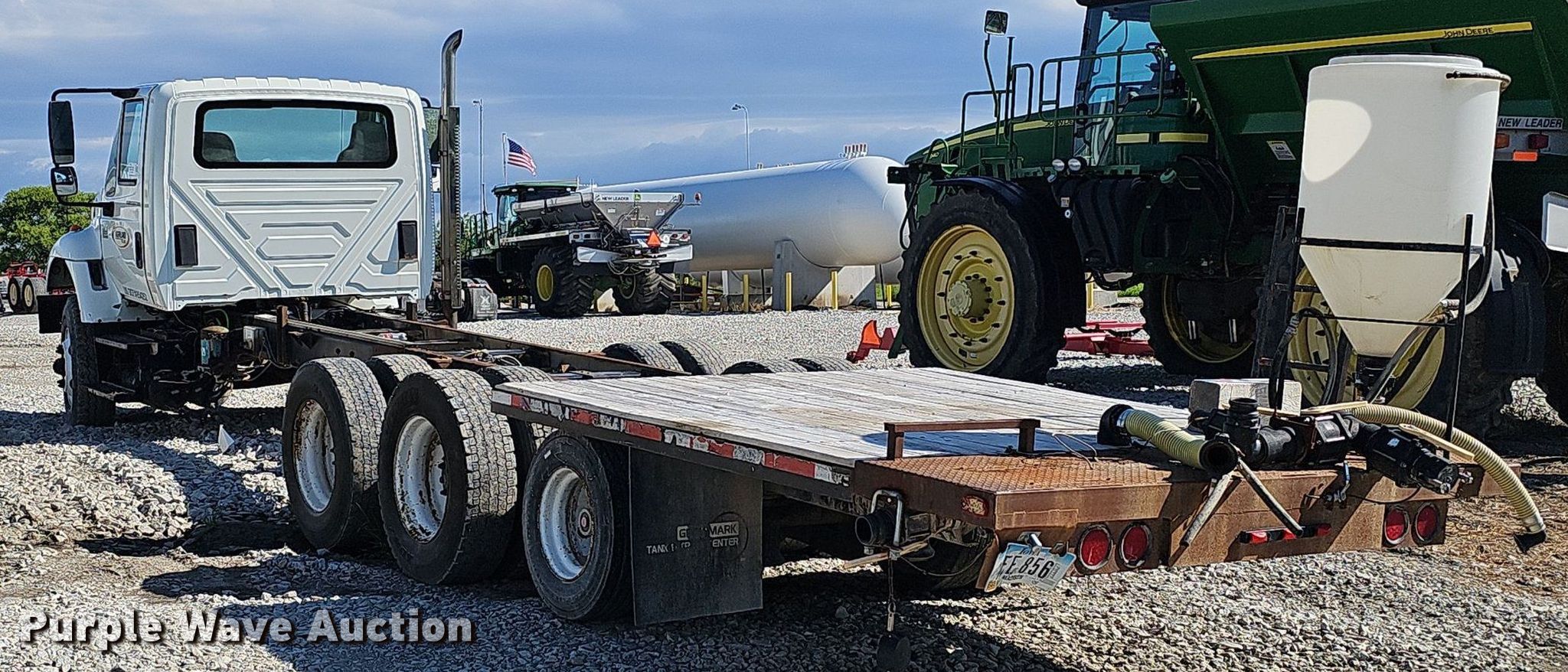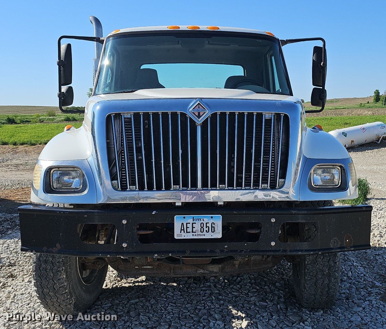 2007 International 7500 truck cab and chassis. Miles: 211,219 on odometer, VIN: 1HTWNAZT37J462994. Engine International HT570, Displacement: 9.3L, Cylinders: 6, Fuel type: Diesel. Transmission Eaton Fuller, Manual, Speed: 10. Chassis Axles: Triple, Tag axle, Differential lock: Inter-axle, Suspension: Air Dump valves, Brakes: Air, Truck chassis: 338", GVWR: 56,000 lbs FAWR: 16,000 lbs, IAWR: 20,000 lbs, RAWR: 20,000 lbs, Wheelbase: 228". Interior AC, Heat, Heated mirrors, Cruise control, Air ride cab. Features Deck 10' 2" L x 96" W, Poly tank Capacity: 50 gallons, Outlet: 3.5". Tires Front: 315/80R22.5, Rear: 295/75R22.5 & 275/80R22.5, Lift axle: 235/75R17.5. Notes Windshield chipped or cracked, Dead battery. Iowa title. Agriland FS. Hamlin, IA 50117