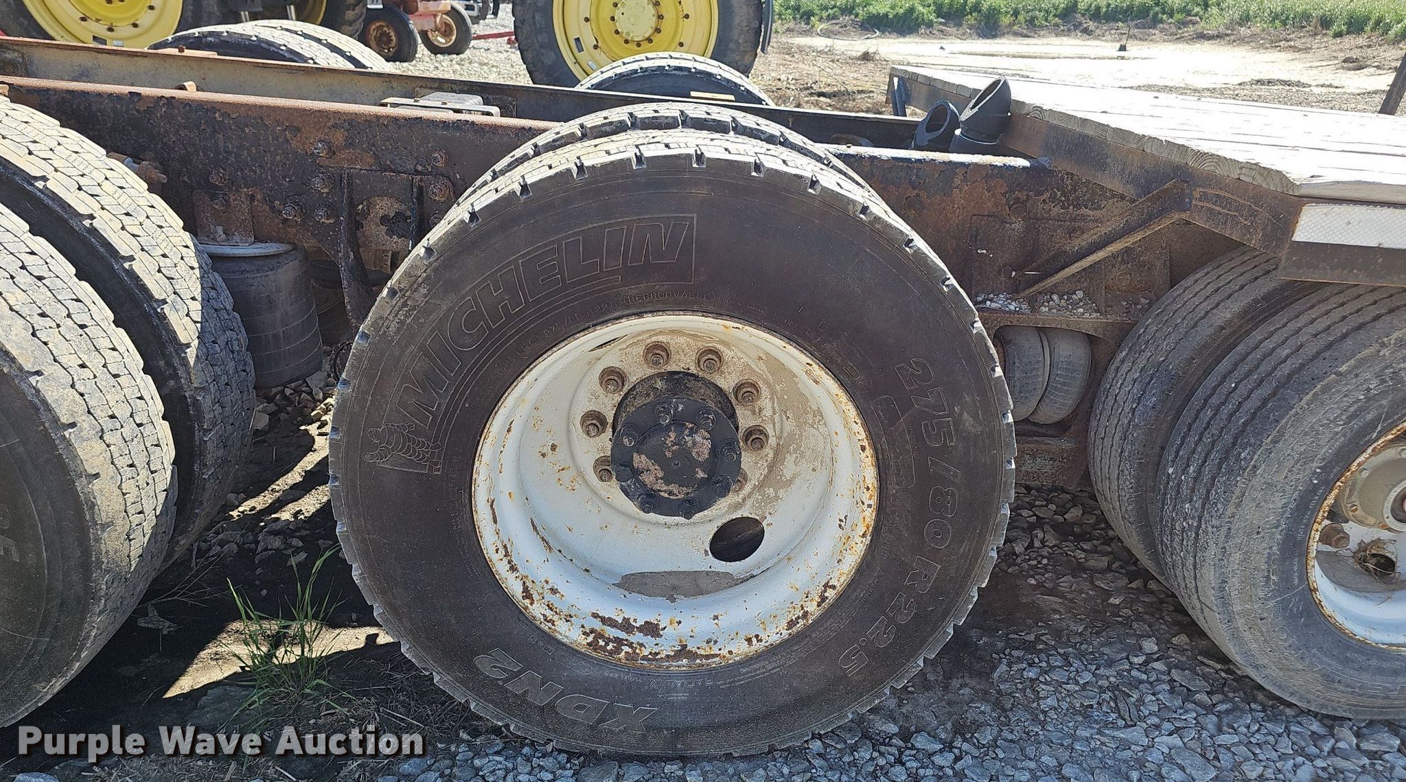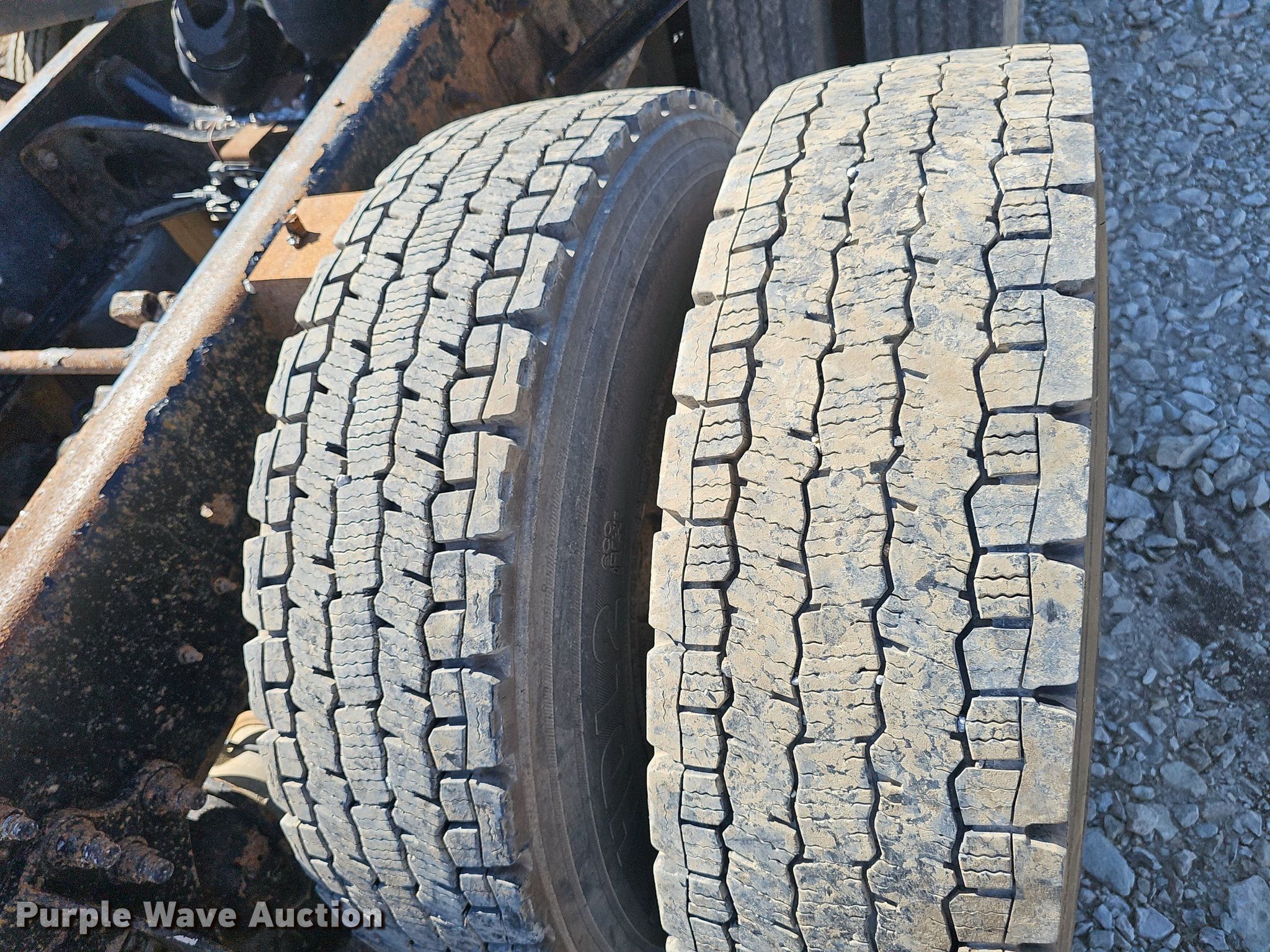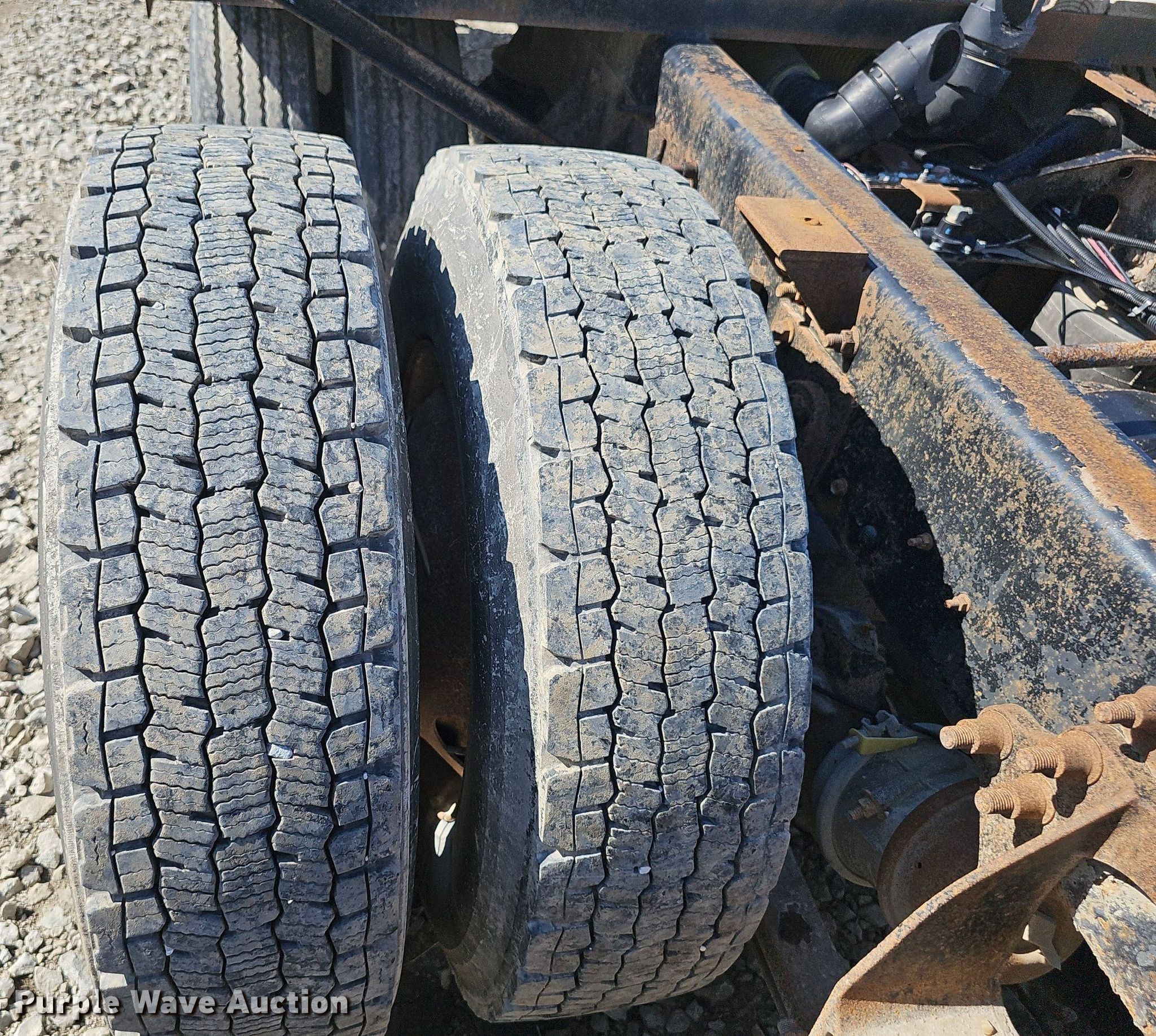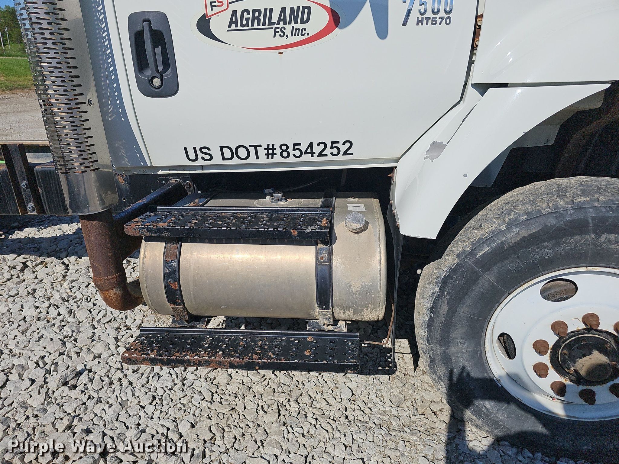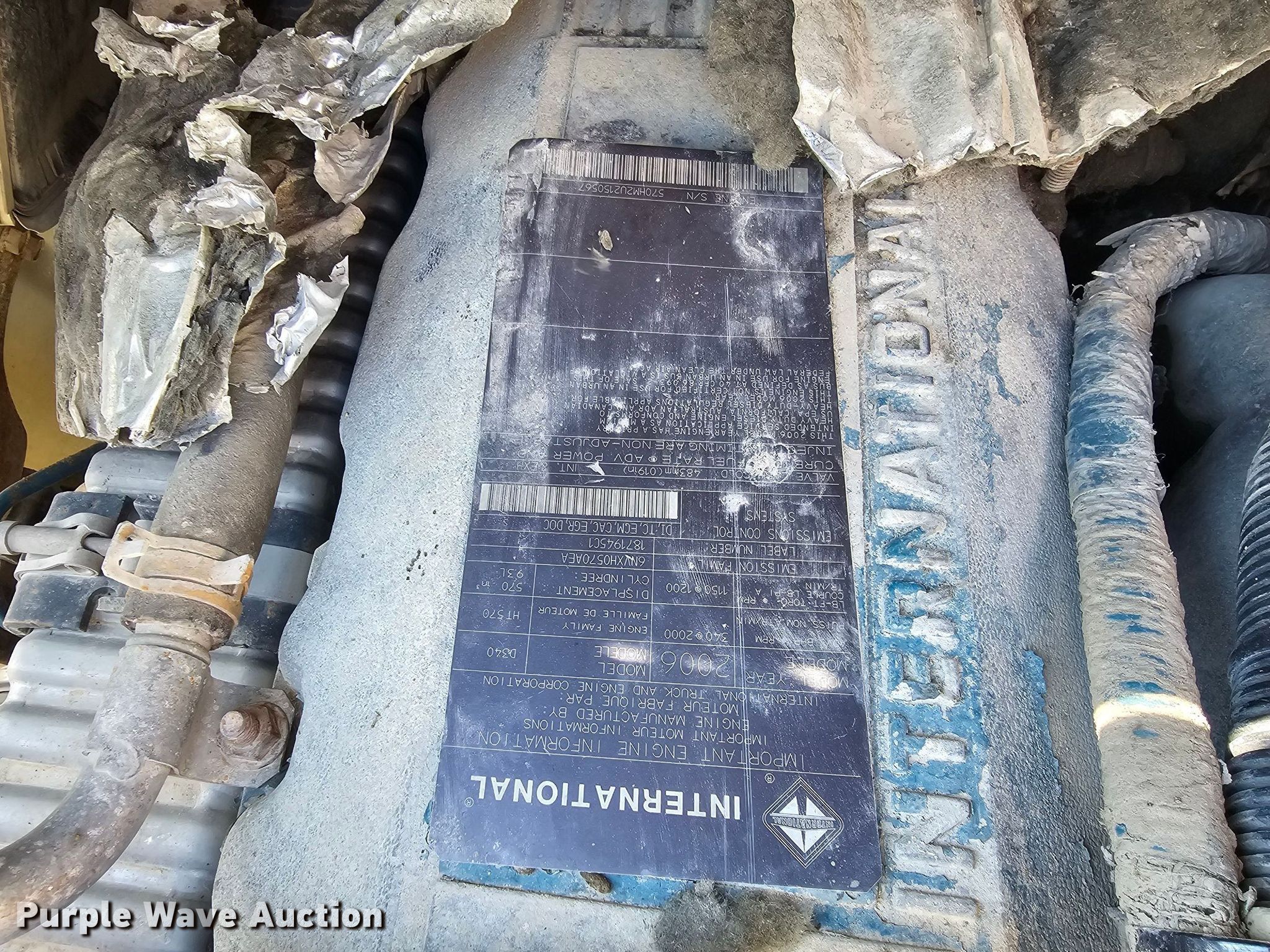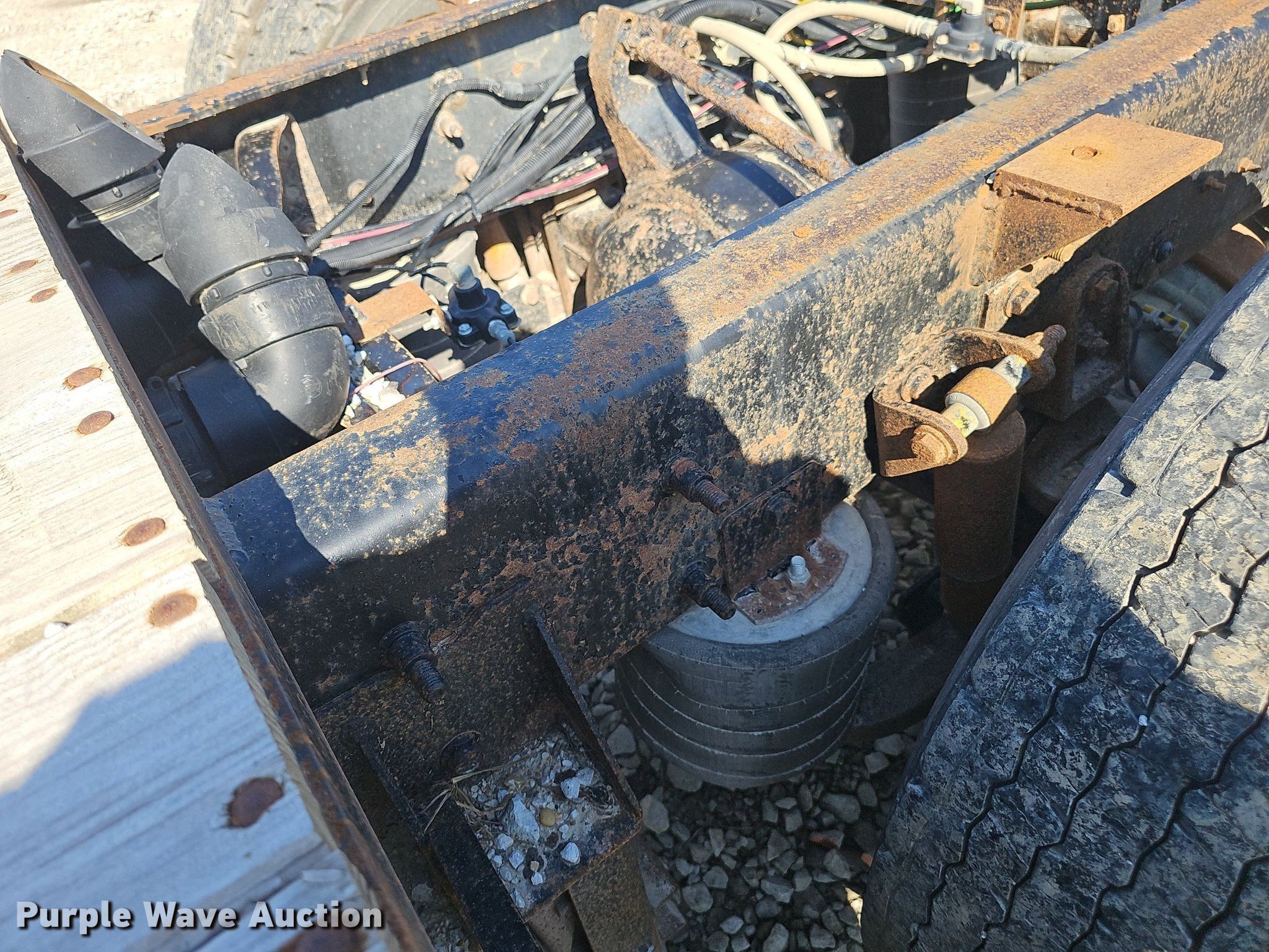 2007 International 7500 truck cab and chassis. Miles: 211,219 on odometer, VIN: 1HTWNAZT37J462994. Engine International HT570, Displacement: 9.3L, Cylinders: 6, Fuel type: Diesel. Transmission Eaton Fuller, Manual, Speed: 10. Chassis Axles: Triple, Tag axle, Differential lock: Inter-axle, Suspension: Air Dump valves, Brakes: Air, Truck chassis: 338", GVWR: 56,000 lbs FAWR: 16,000 lbs, IAWR: 20,000 lbs, RAWR: 20,000 lbs, Wheelbase: 228". Interior AC, Heat, Heated mirrors, Cruise control, Air ride cab. Features Deck 10' 2" L x 96" W, Poly tank Capacity: 50 gallons, Outlet: 3.5". Tires Front: 315/80R22.5, Rear: 295/75R22.5 & 275/80R22.5, Lift axle: 235/75R17.5. Notes Windshield chipped or cracked, Dead battery. Iowa title. Agriland FS. Hamlin, IA 50117