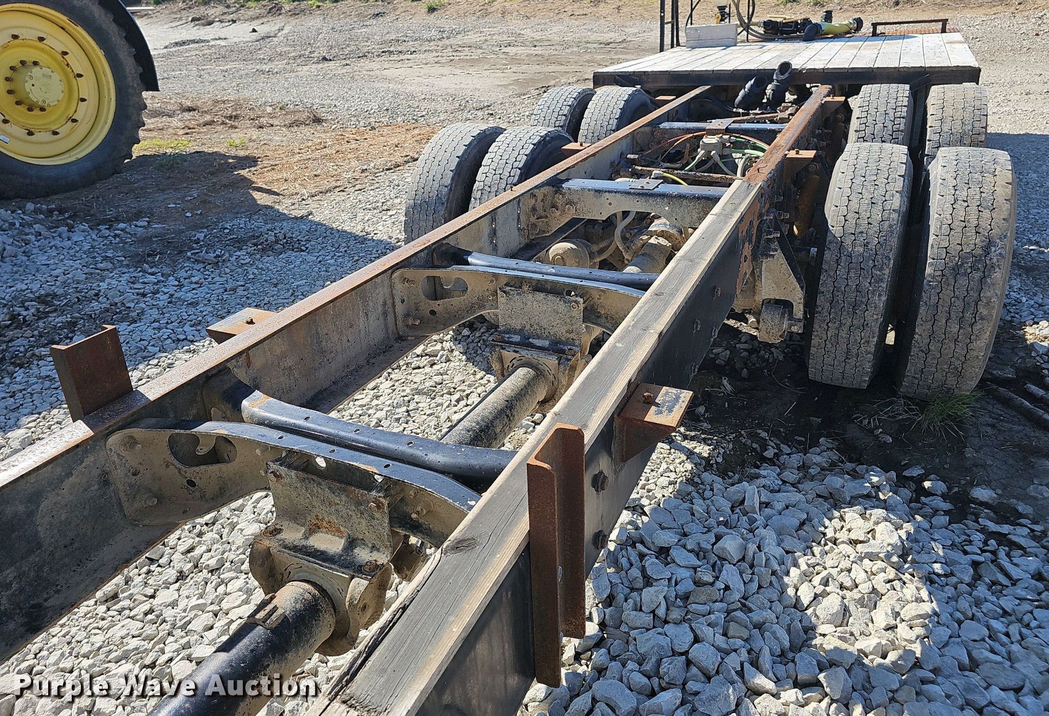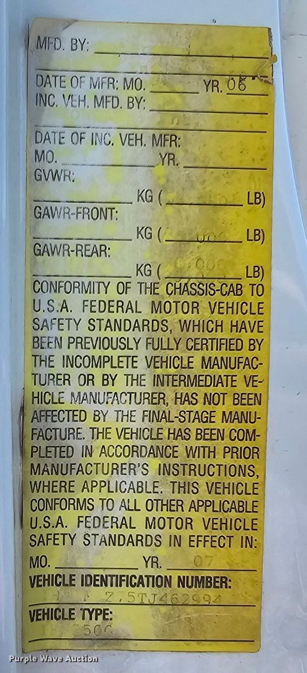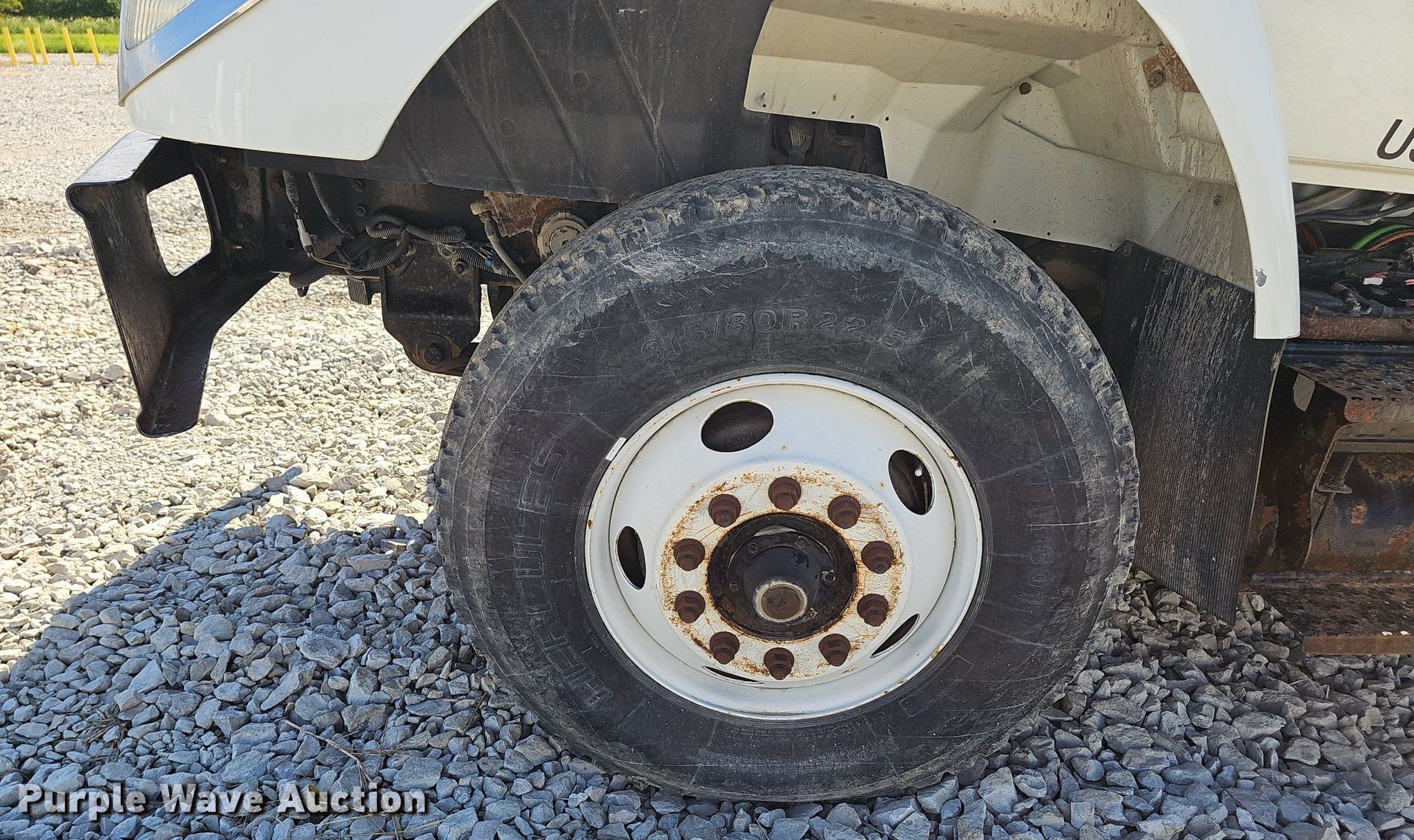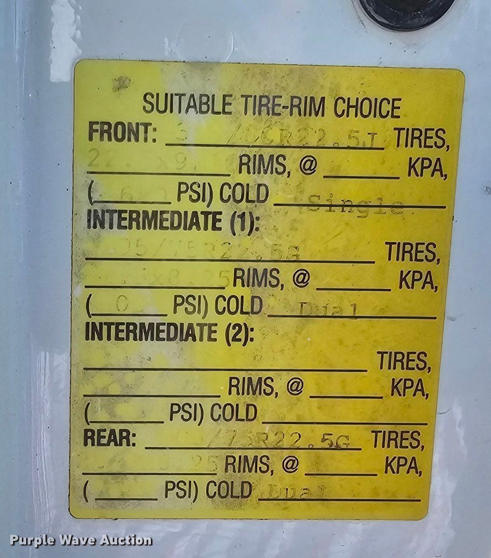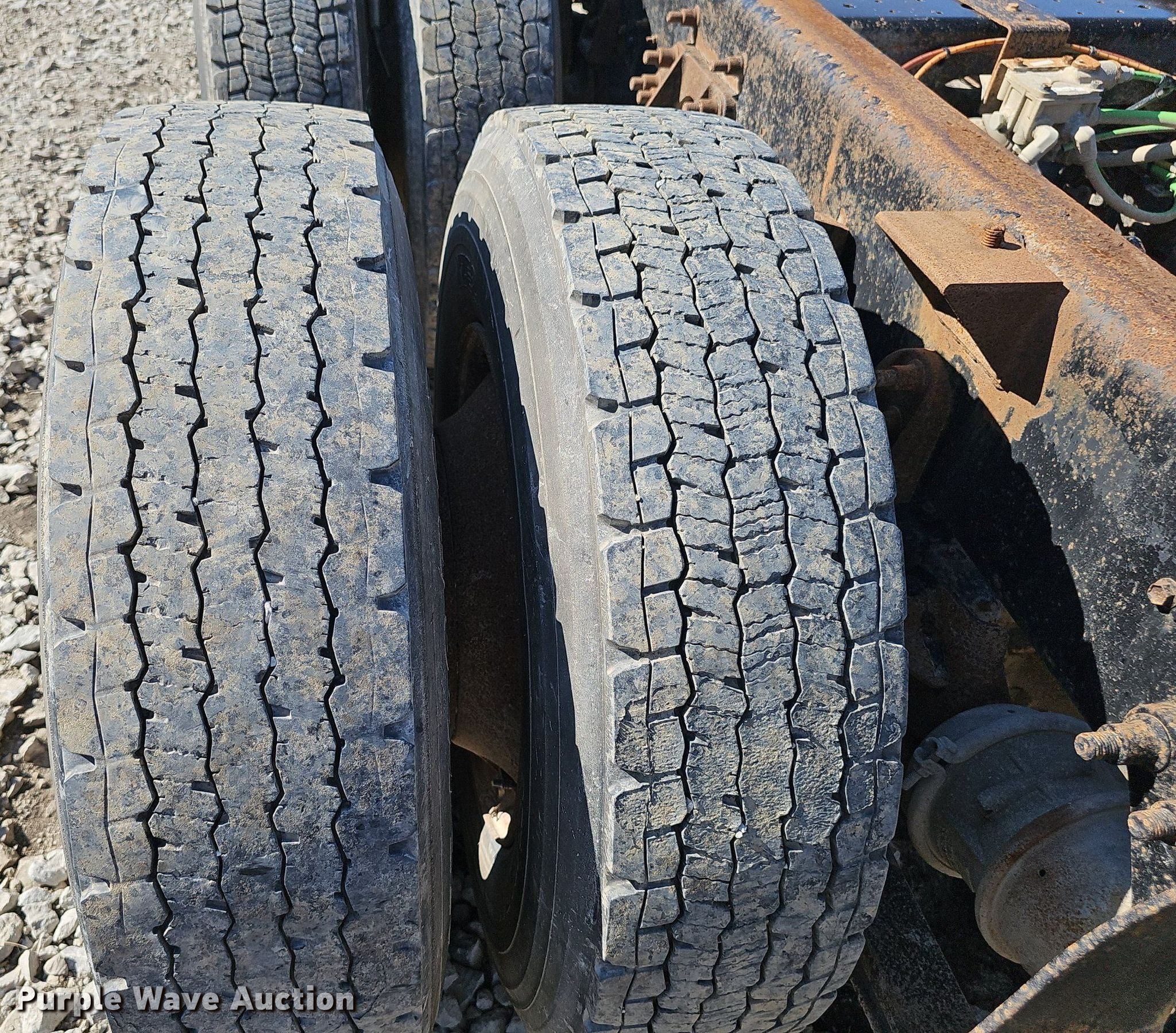 2007 International 7500 truck cab and chassis. Miles: 211,219 on odometer, VIN: 1HTWNAZT37J462994. Engine International HT570, Displacement: 9.3L, Cylinders: 6, Fuel type: Diesel. Transmission Eaton Fuller, Manual, Speed: 10. Chassis Axles: Triple, Tag axle, Differential lock: Inter-axle, Suspension: Air Dump valves, Brakes: Air, Truck chassis: 338", GVWR: 56,000 lbs FAWR: 16,000 lbs, IAWR: 20,000 lbs, RAWR: 20,000 lbs, Wheelbase: 228". Interior AC, Heat, Heated mirrors, Cruise control, Air ride cab. Features Deck 10' 2" L x 96" W, Poly tank Capacity: 50 gallons, Outlet: 3.5". Tires Front: 315/80R22.5, Rear: 295/75R22.5 & 275/80R22.5, Lift axle: 235/75R17.5. Notes Windshield chipped or cracked, Dead battery. Iowa title. Agriland FS. Hamlin, IA 50117