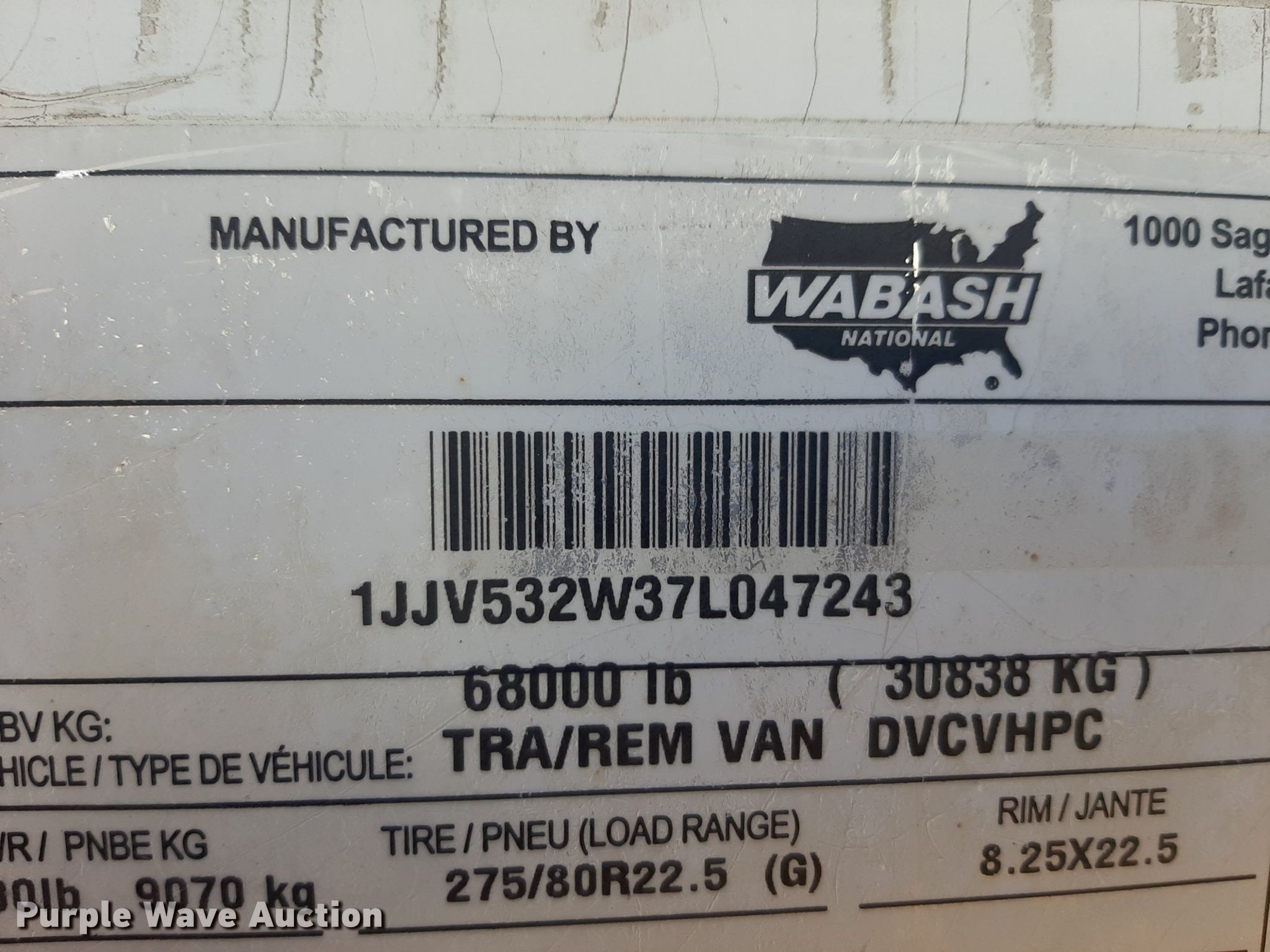 Purple Wave is selling a used Dry Van Trailer in Kansas. This item is a 2007 Wabash dry van trailer with the following: VIN: 1JJV532W37L047243, Unit #: 53144