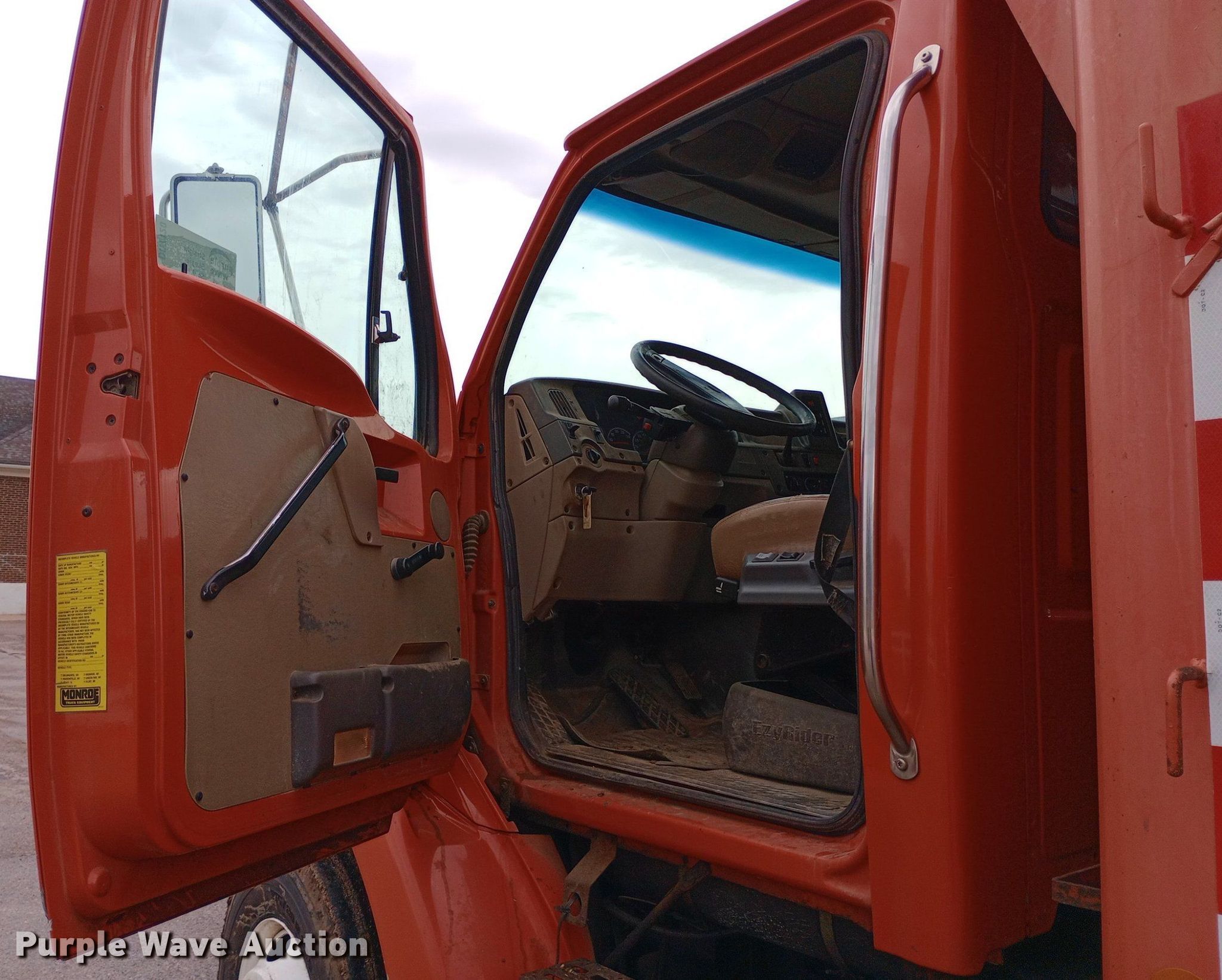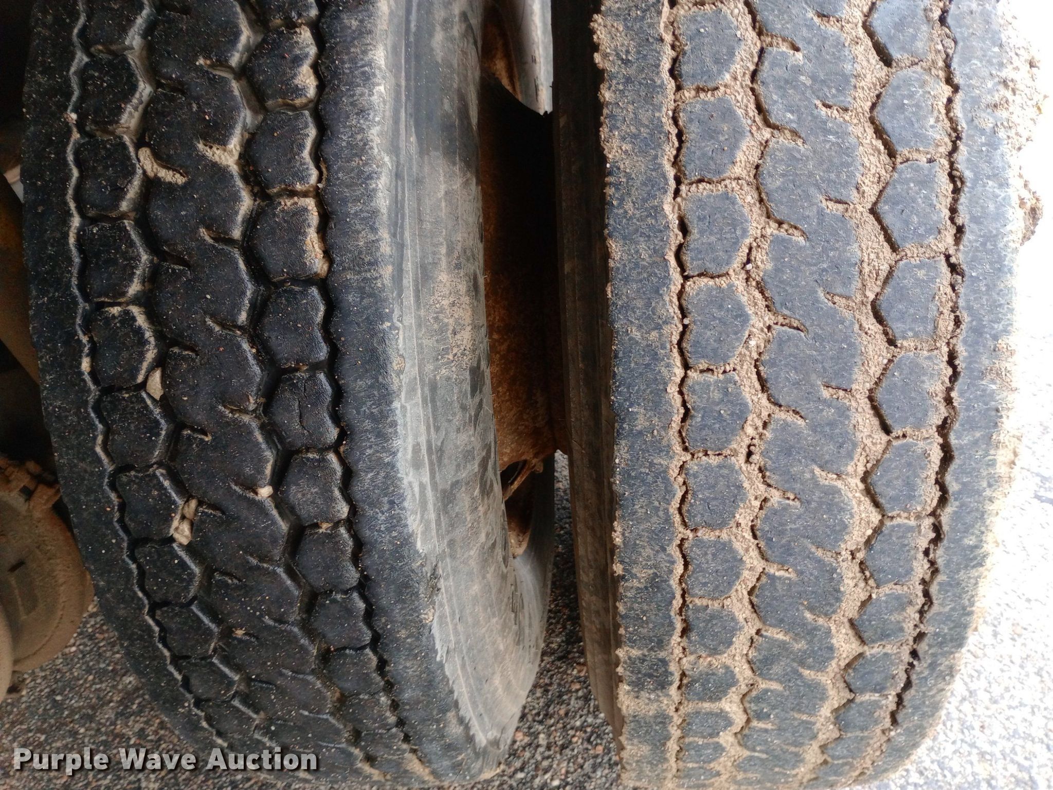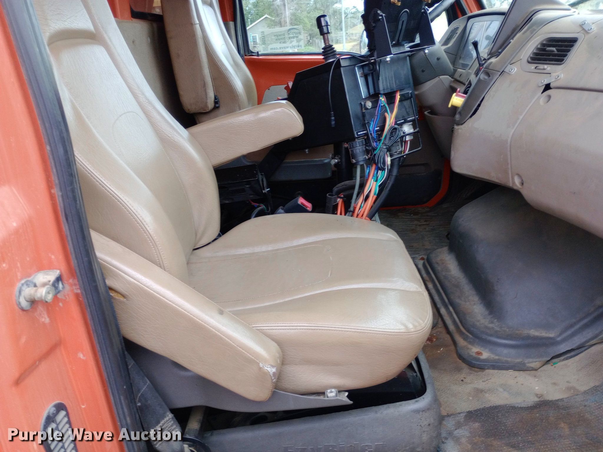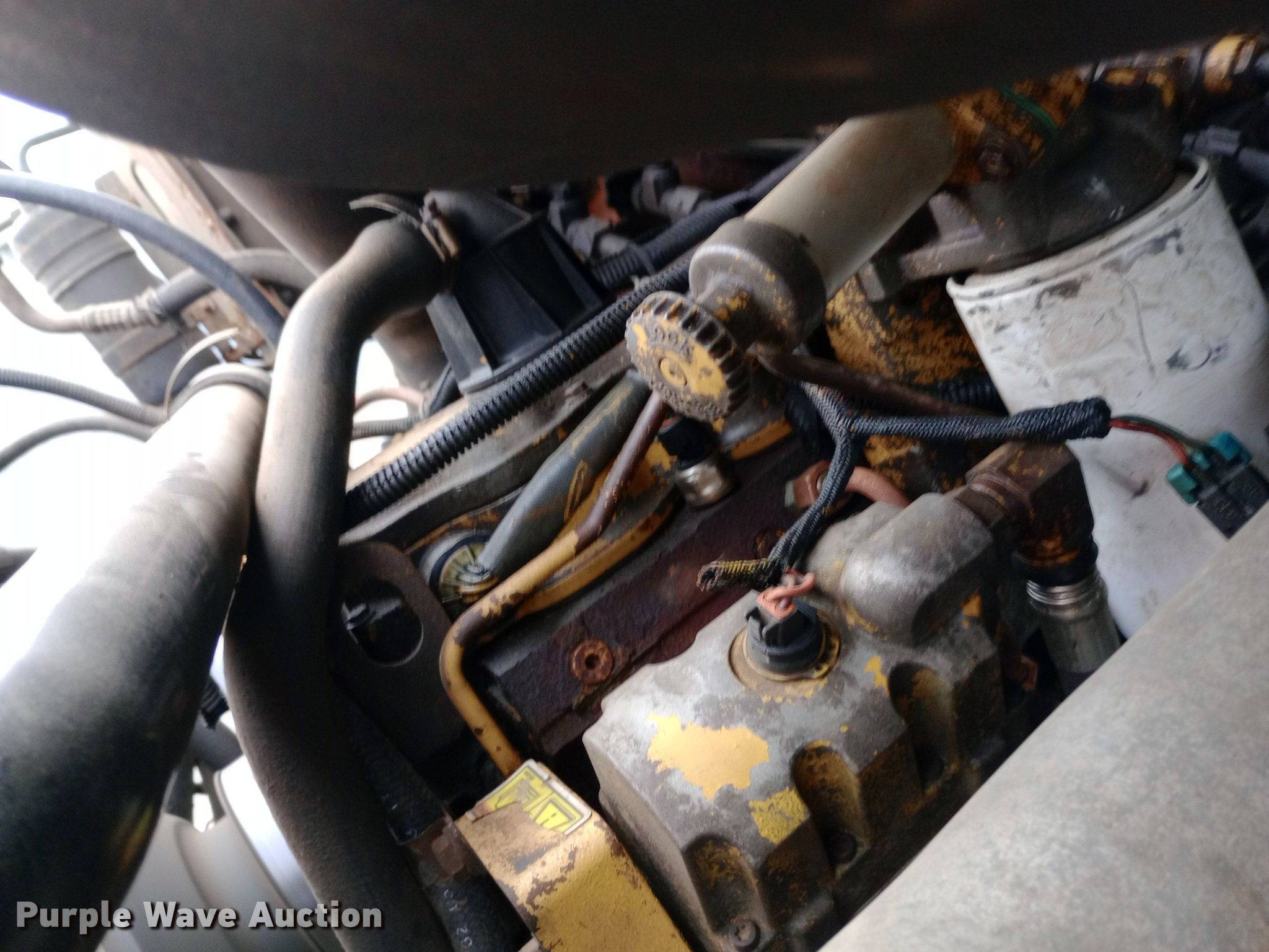 2003 Sterling LT7500 dump truck. Miles: 194,991 on odometer, Hours: 10,155 on meter, VIN: 2FZHATAK33AL69738. Engine Caterpillar 3126, Cylinders: 6, Fuel type: Diesel. Transmission Automatic. Chassis Axles: Tandem, Suspension: Spring, Brakes: Air, PTO, Front mount PTO, GVWR: 53,880 lbs FAWR: 13,880 lbs, IAWR: 20,000 lbs, RAWR: 20,000 lbs. Interior AC, Heat, Cruise control. Features Dump bed Monroe, Capacity: 9 cu.yd., 13' L x 96" W, Side height: 44", Bed type: Steel, Ram: Single, End gate: Air operated, Spreader Monroe, Capacity: 9 cu.yd., Plow Width: 132". Tires Front: 275/80R22.5, Rear: 295/75R22.5. Notes Dash warning indicator: ABS, Battery. Kansas title. Mitzners Bobcat & Trenching. South Hutchinson, KS 67505