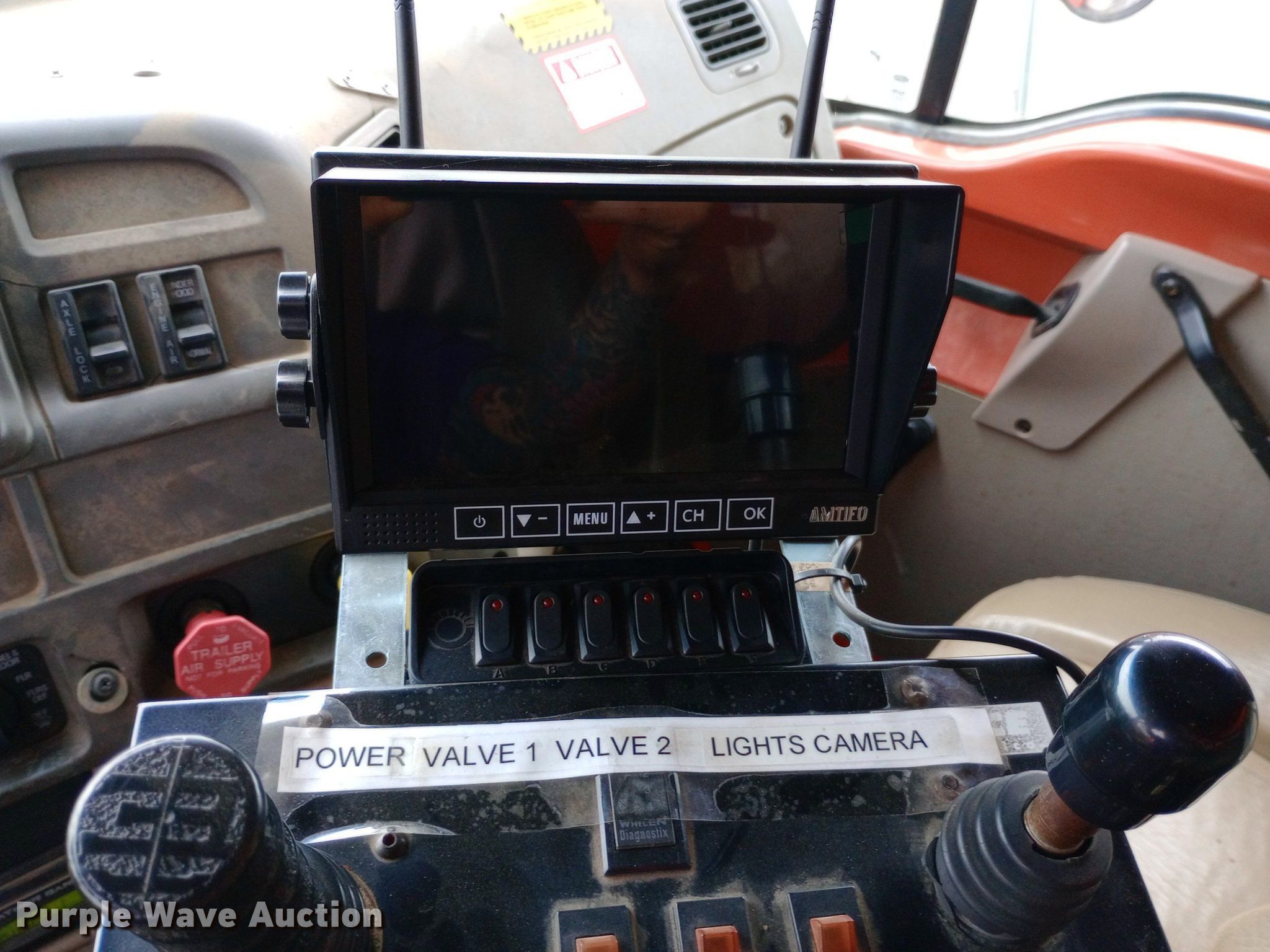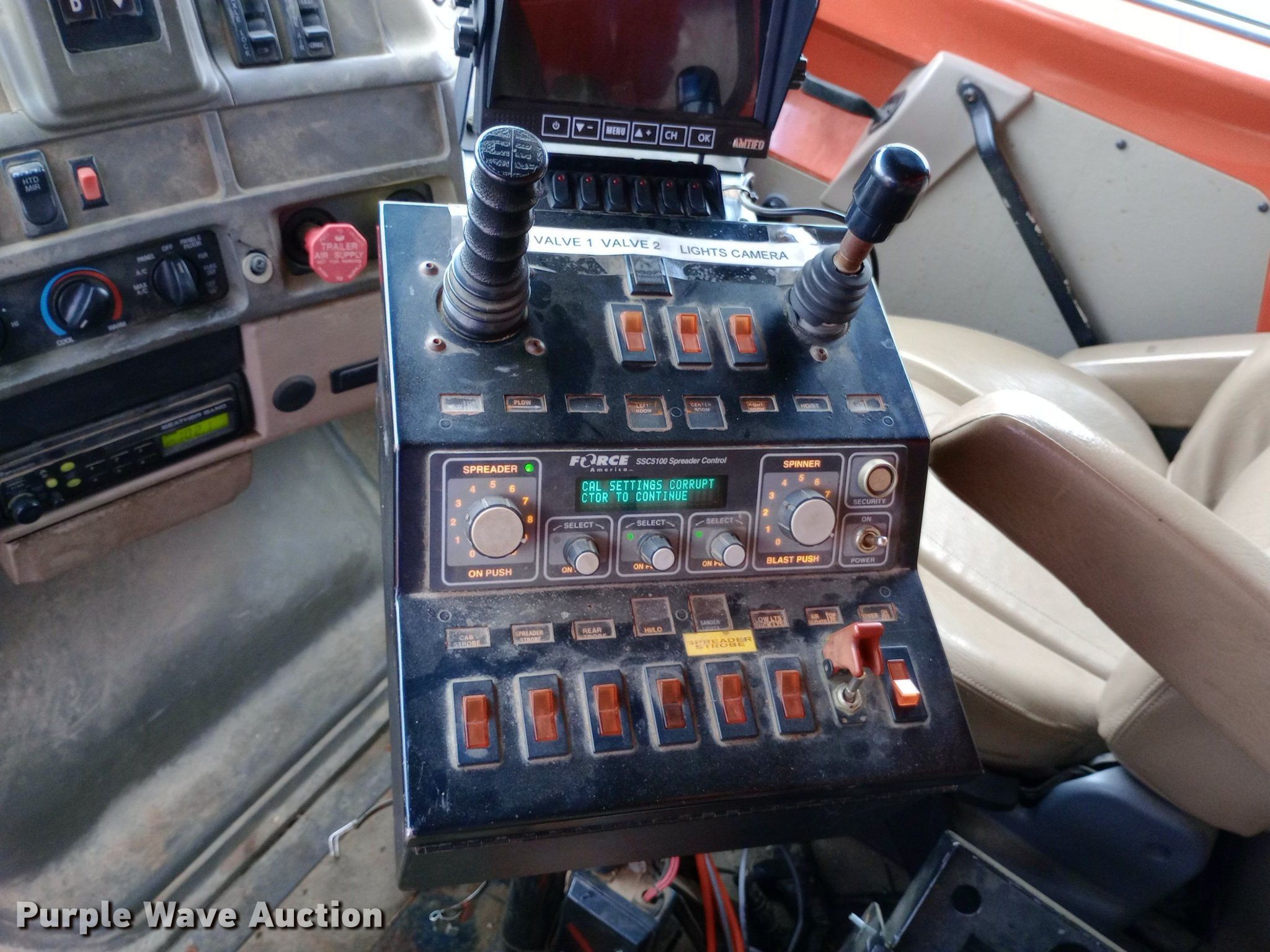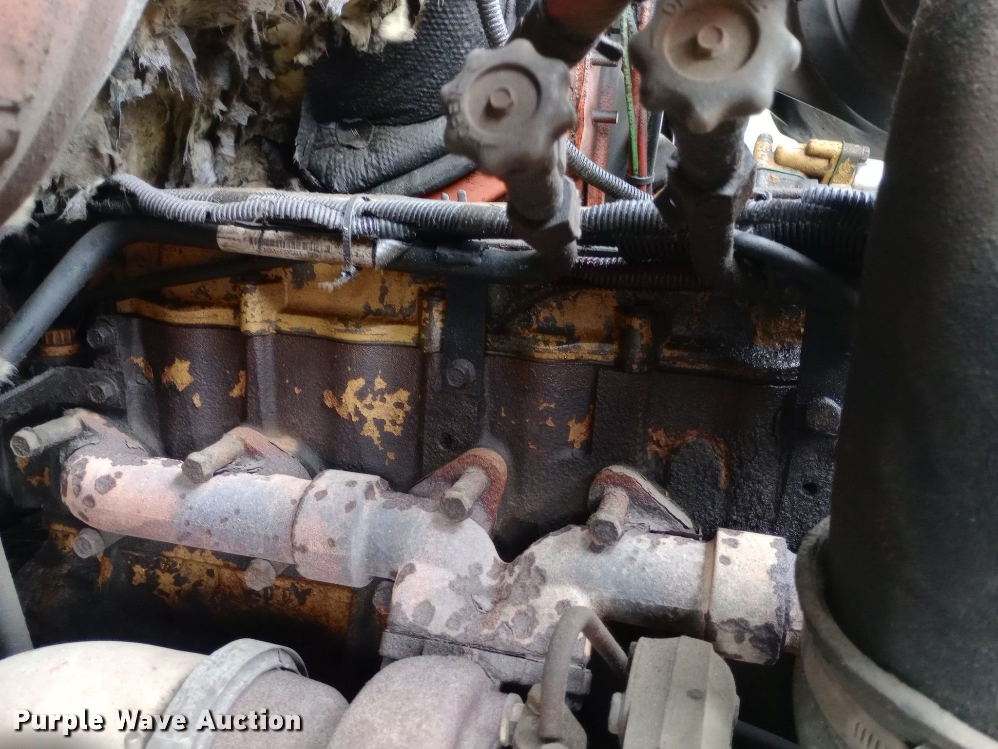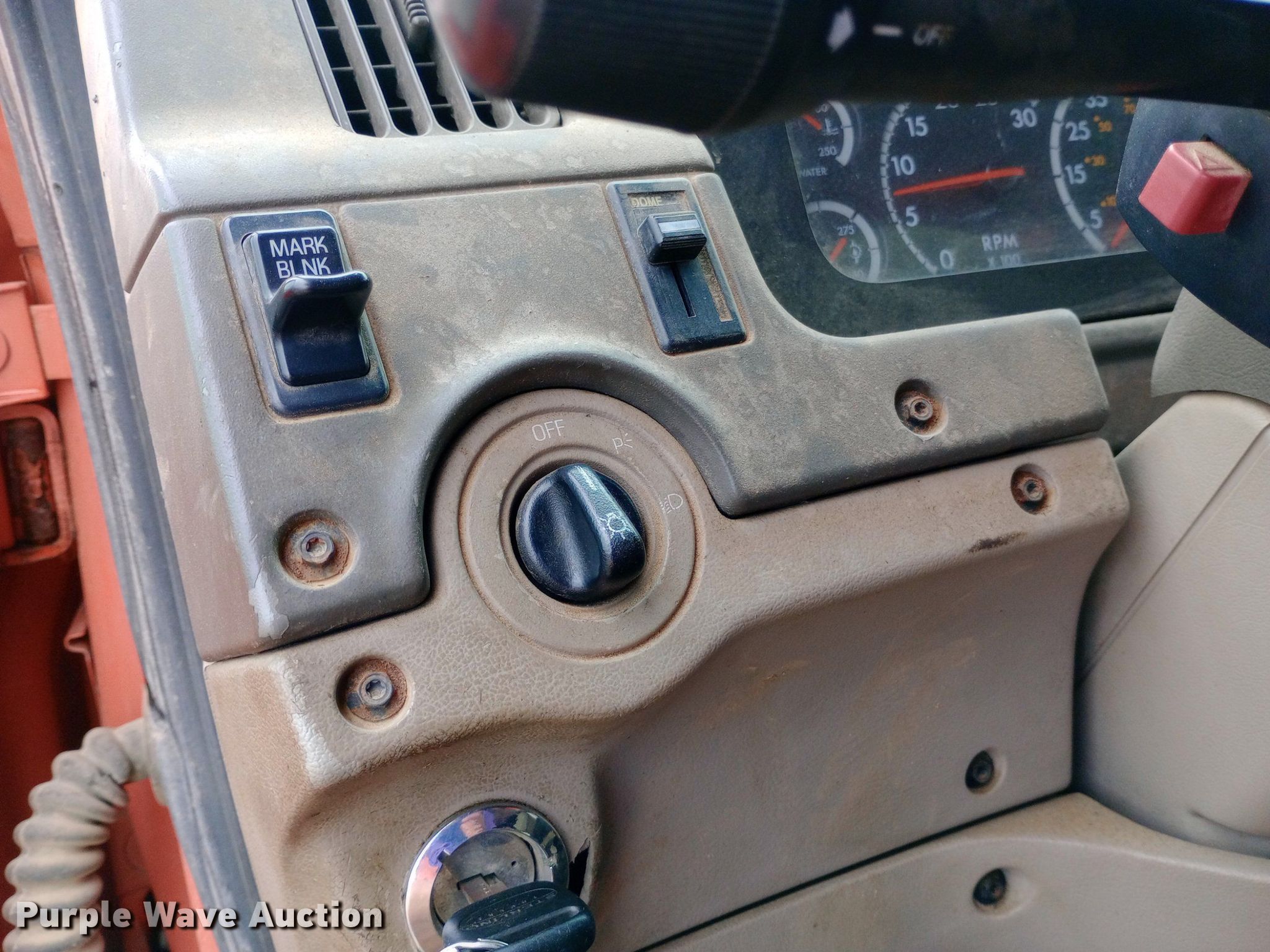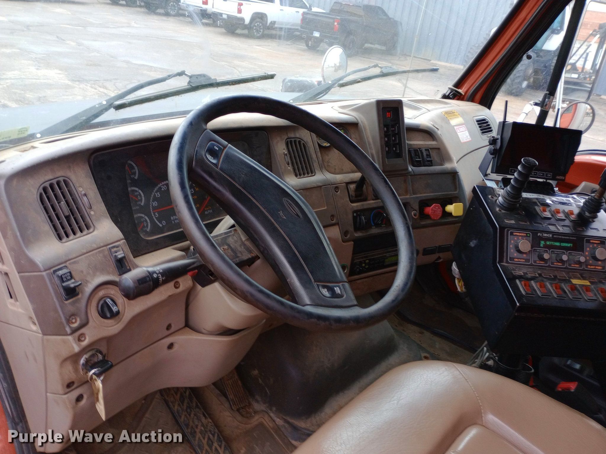 2003 Sterling LT7500 dump truck. Miles: 194,991 on odometer, Hours: 10,155 on meter, VIN: 2FZHATAK33AL69738. Engine Caterpillar 3126, Cylinders: 6, Fuel type: Diesel. Transmission Automatic. Chassis Axles: Tandem, Suspension: Spring, Brakes: Air, PTO, Front mount PTO, GVWR: 53,880 lbs FAWR: 13,880 lbs, IAWR: 20,000 lbs, RAWR: 20,000 lbs. Interior AC, Heat, Cruise control. Features Dump bed Monroe, Capacity: 9 cu.yd., 13' L x 96" W, Side height: 44", Bed type: Steel, Ram: Single, End gate: Air operated, Spreader Monroe, Capacity: 9 cu.yd., Plow Width: 132". Tires Front: 275/80R22.5, Rear: 295/75R22.5. Notes Dash warning indicator: ABS, Battery. Kansas title. Mitzners Bobcat & Trenching. South Hutchinson, KS 67505