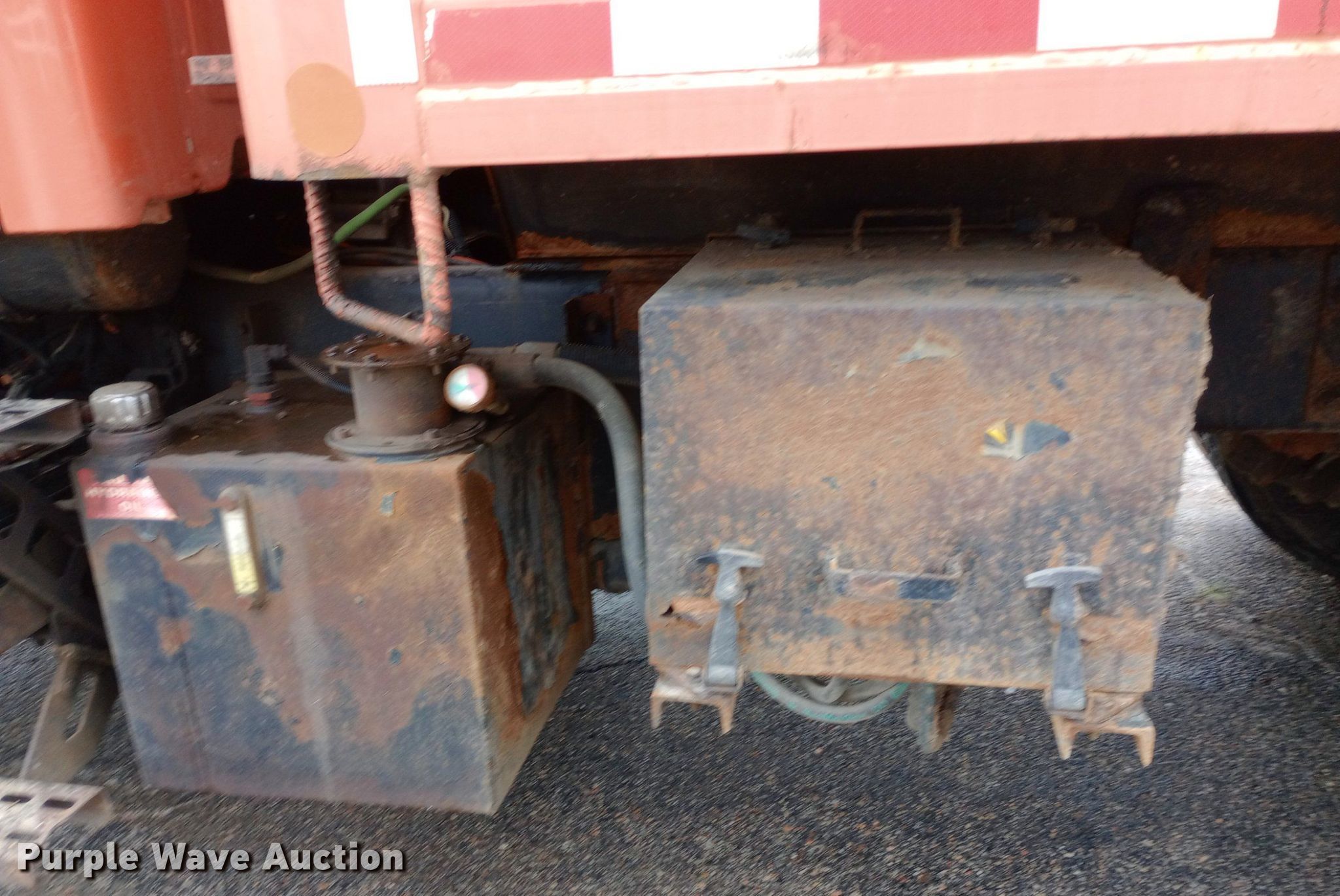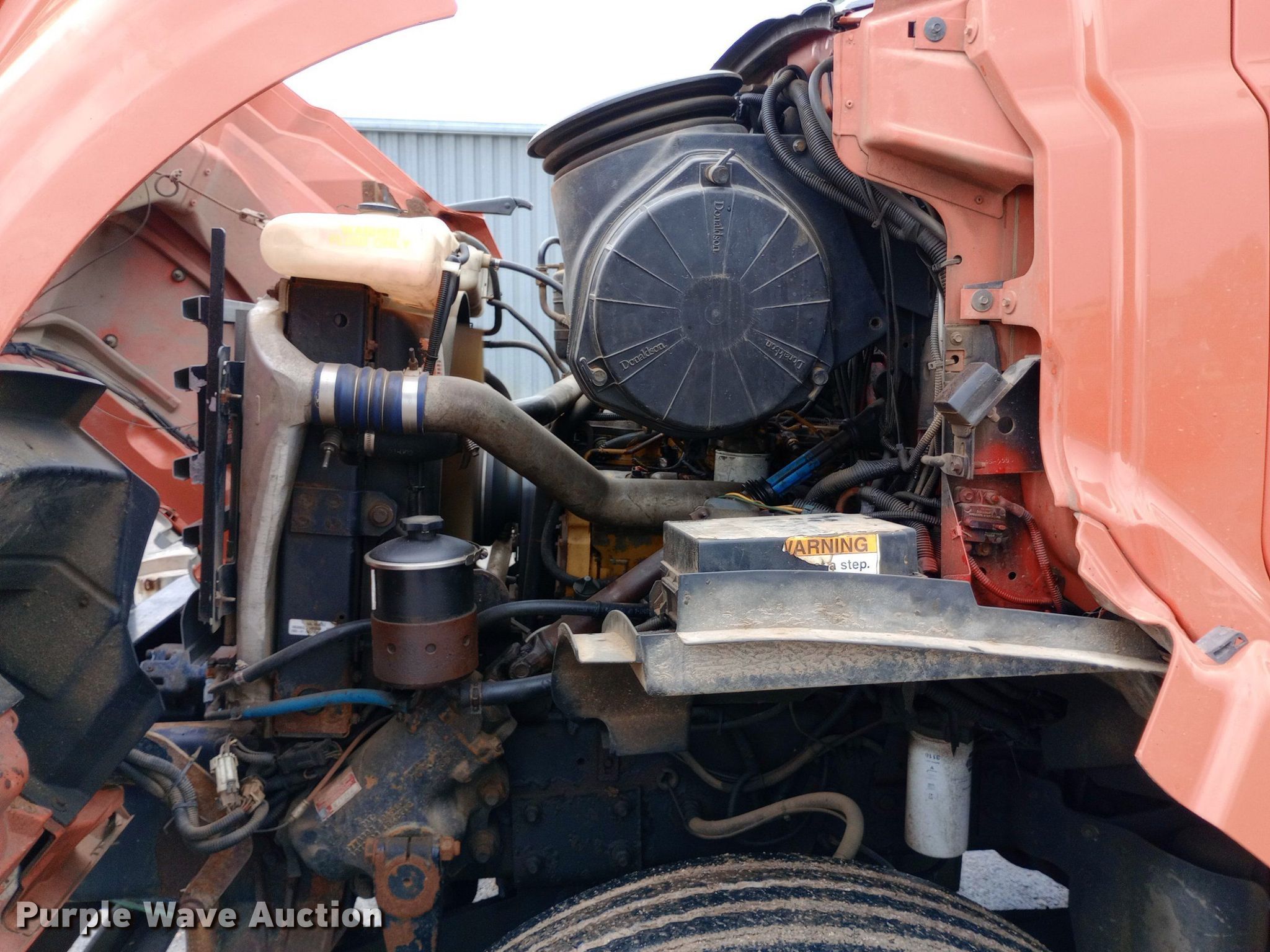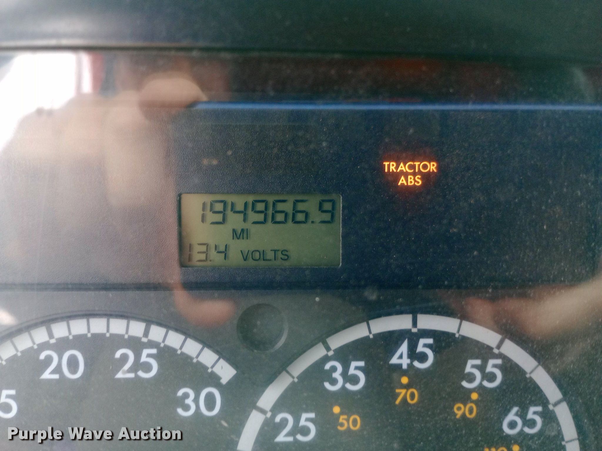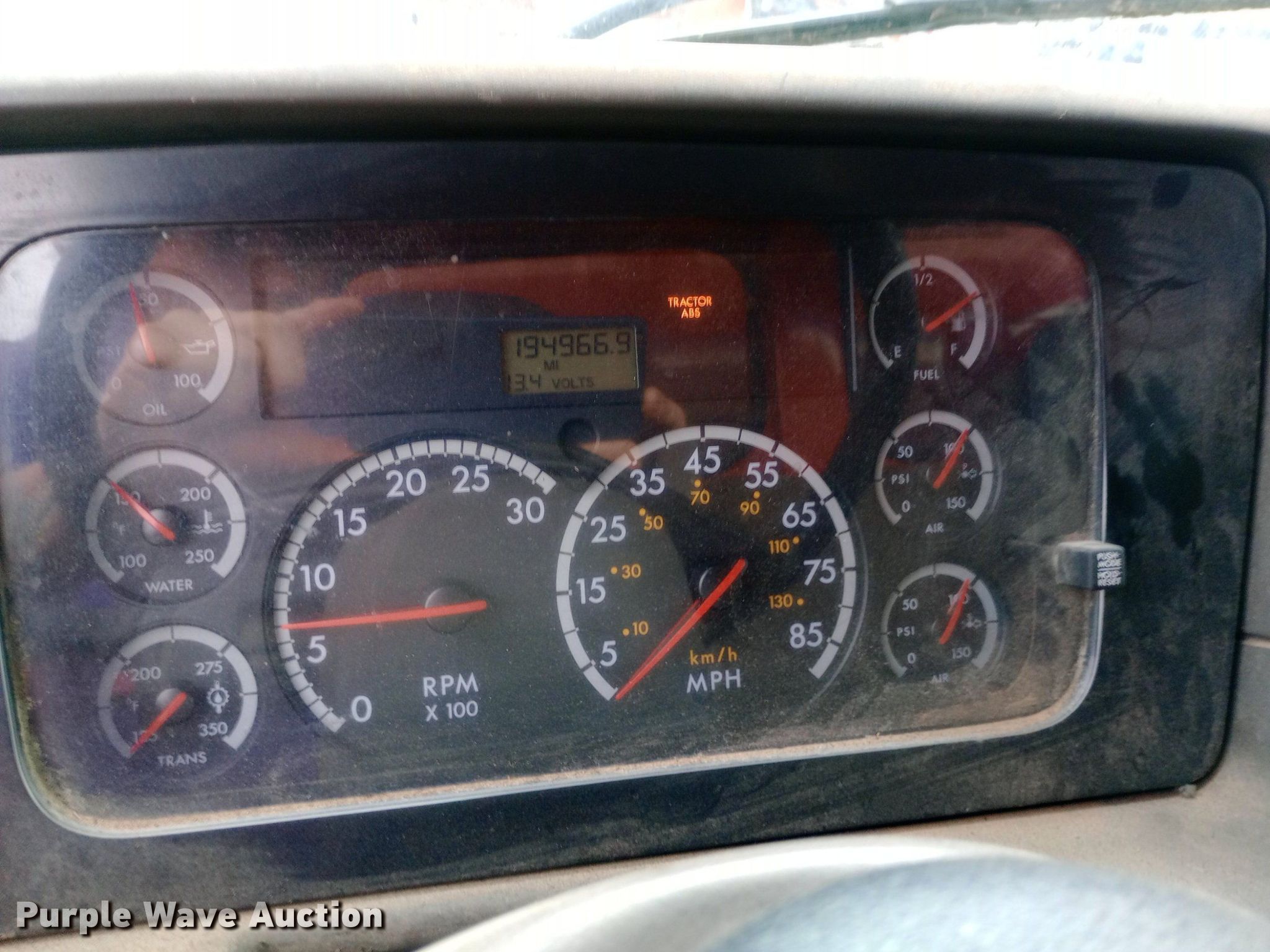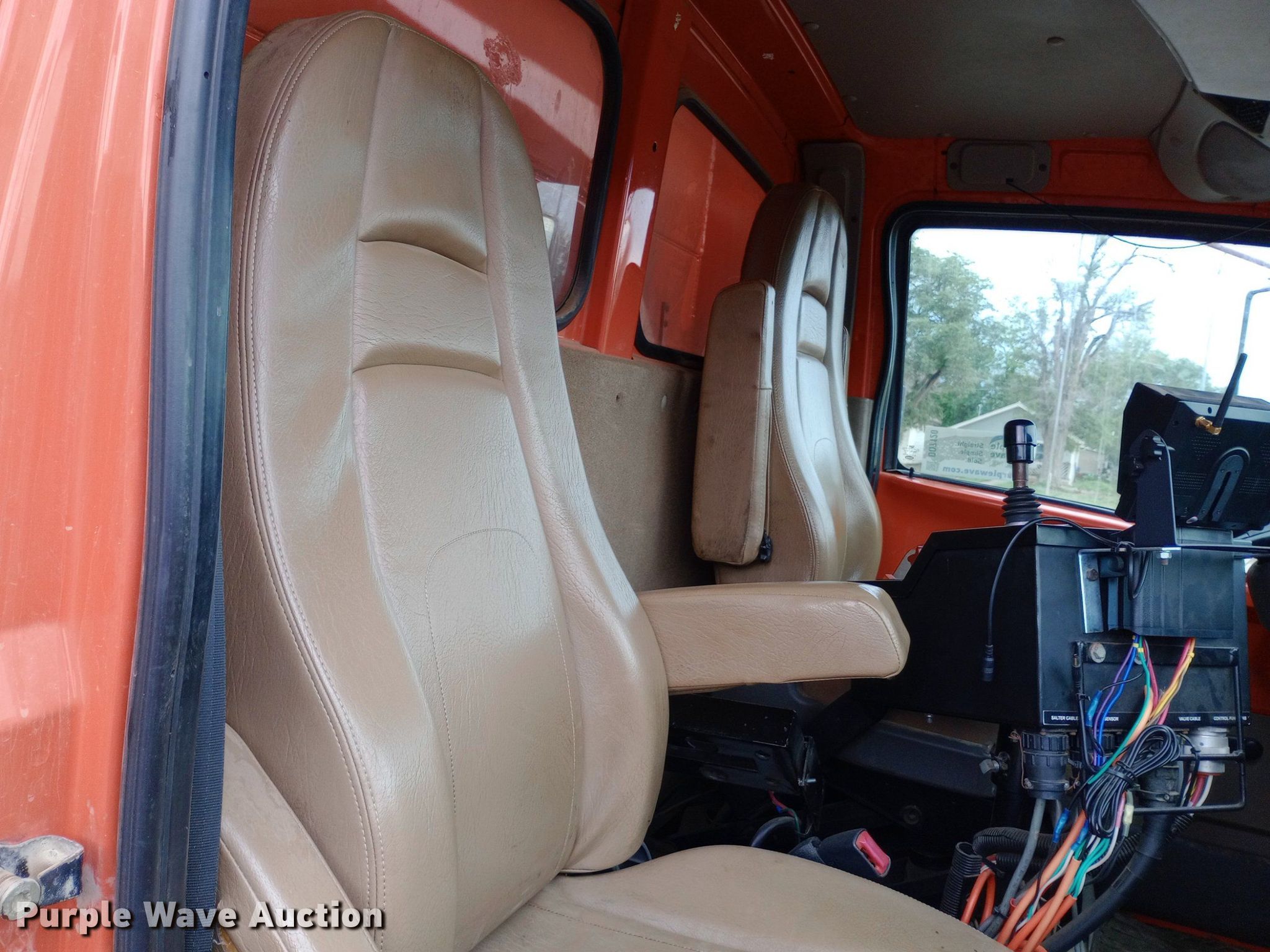 2003 Sterling LT7500 dump truck. Miles: 194,991 on odometer, Hours: 10,155 on meter, VIN: 2FZHATAK33AL69738. Engine Caterpillar 3126, Cylinders: 6, Fuel type: Diesel. Transmission Automatic. Chassis Axles: Tandem, Suspension: Spring, Brakes: Air, PTO, Front mount PTO, GVWR: 53,880 lbs FAWR: 13,880 lbs, IAWR: 20,000 lbs, RAWR: 20,000 lbs. Interior AC, Heat, Cruise control. Features Dump bed Monroe, Capacity: 9 cu.yd., 13' L x 96" W, Side height: 44", Bed type: Steel, Ram: Single, End gate: Air operated, Spreader Monroe, Capacity: 9 cu.yd., Plow Width: 132". Tires Front: 275/80R22.5, Rear: 295/75R22.5. Notes Dash warning indicator: ABS, Battery. Kansas title. Mitzners Bobcat & Trenching. South Hutchinson, KS 67505