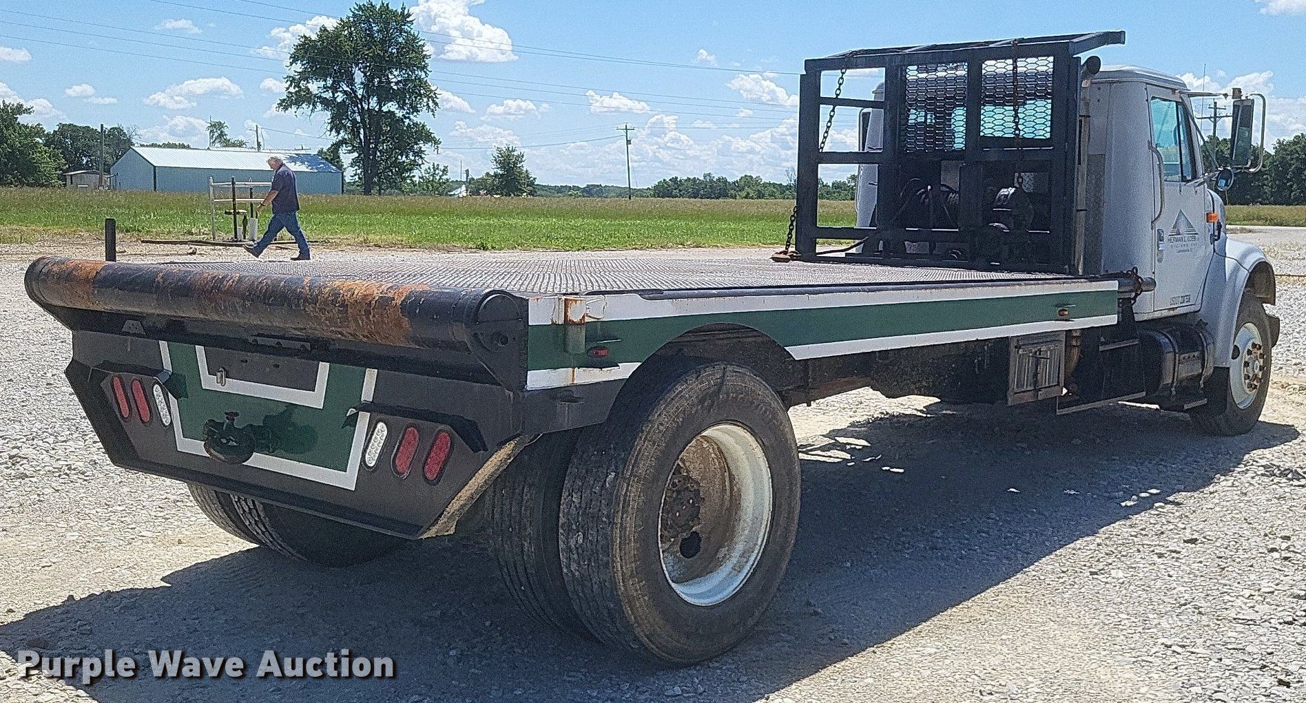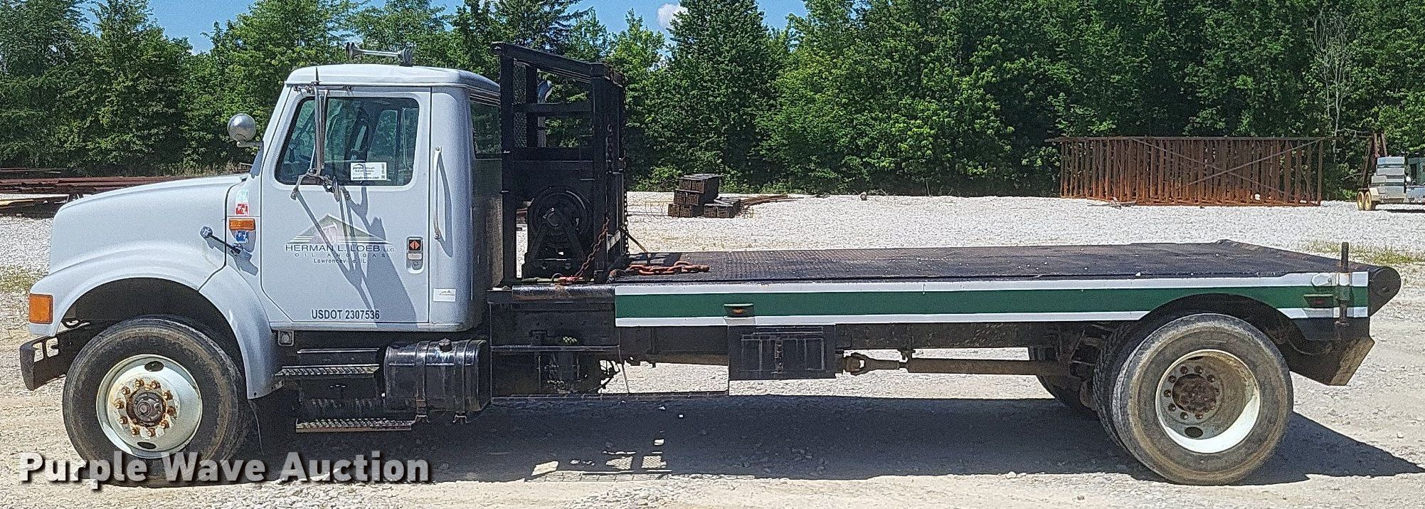 1992 International 4900 winch truck. Miles: 9,753 on odometer Actual mileage unknown, VIN: 1HTSDNUN6NH412533. Engine Displacement: 7.6L, Cylinders: 6, Fuel type: Diesel. Transmission Eaton Fuller, Speed: 5, plus 2. Chassis Axles: Single, Suspension: Spring, Brakes: Air, PTO. Interior Heat. Features Flatbed 16' 5" L x 8' W, Jib pole bed, Winch, Rolling tailboard. Tires Size: 295/75R22.5. Notes Windshield chipped or cracked. Illinois title. Title distribution may be delayed up to 14 days from verification of funds. Herman L Loeb Oil. Lawrenceville, IL 62439