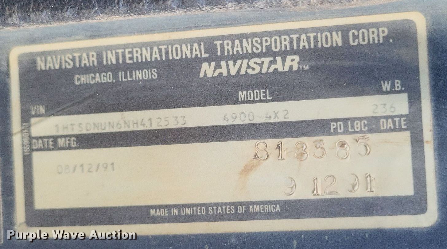 Purple Wave is selling a used Oilfield Truck in Illinois. This item is a 1992 International 4900 winch truck with the following: Miles: 9,753 on odometer, Actual mileage unknown, VIN: 1HTSDNUN6NH412533