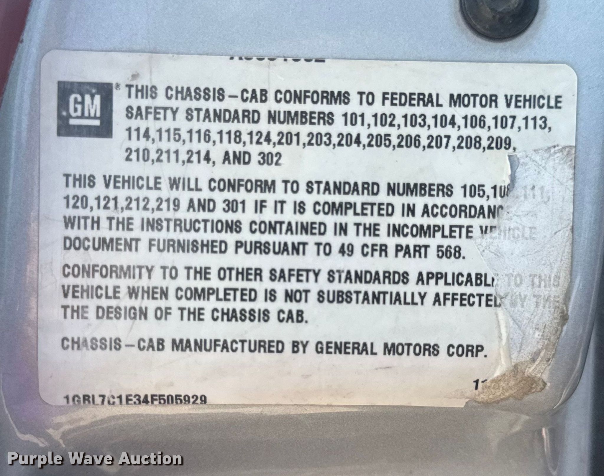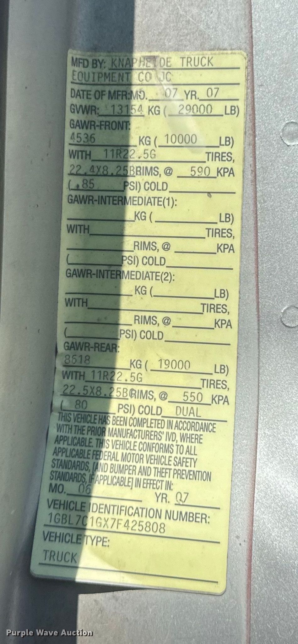 - VIN: 1GBL7C1GX7F425808