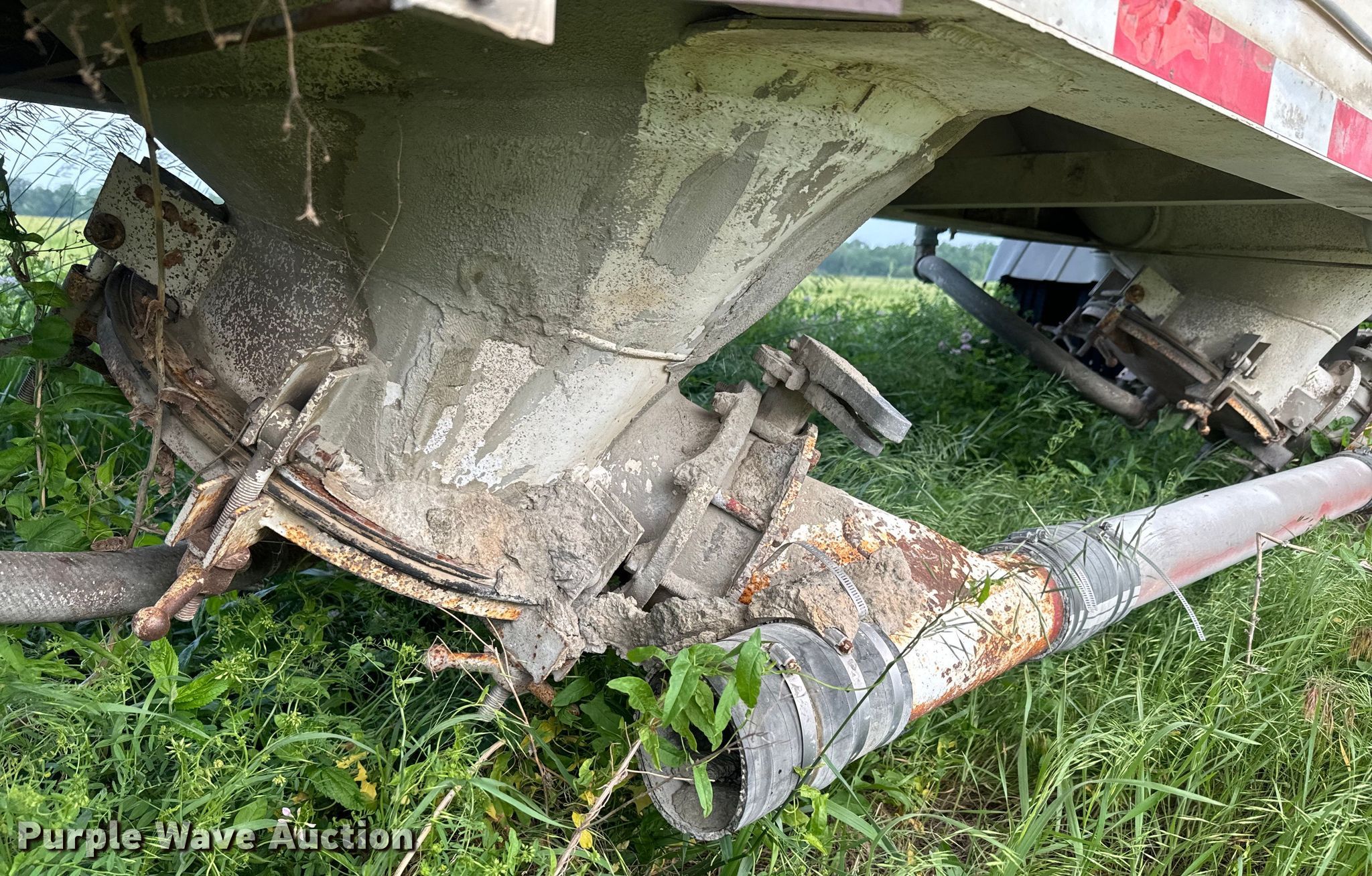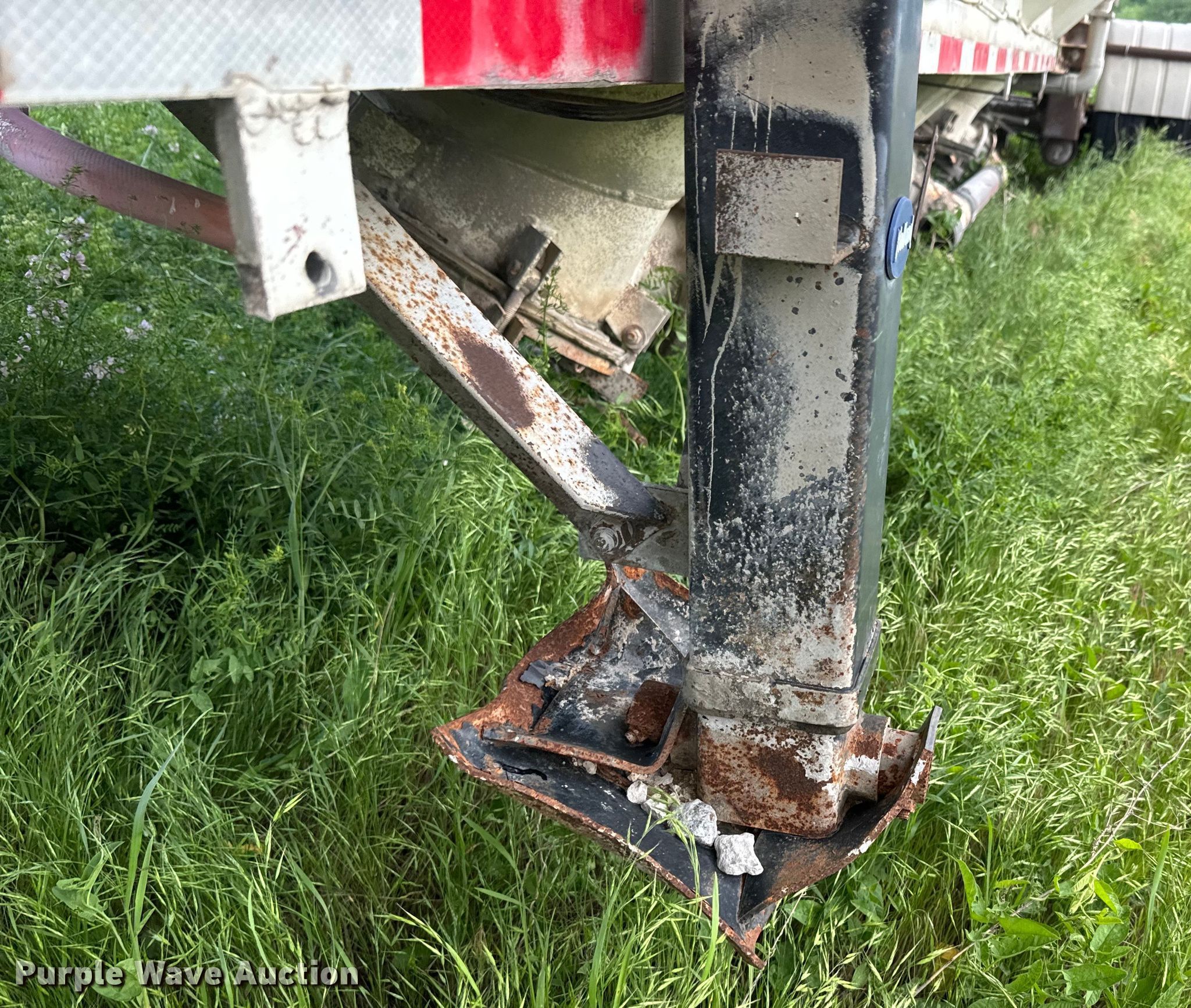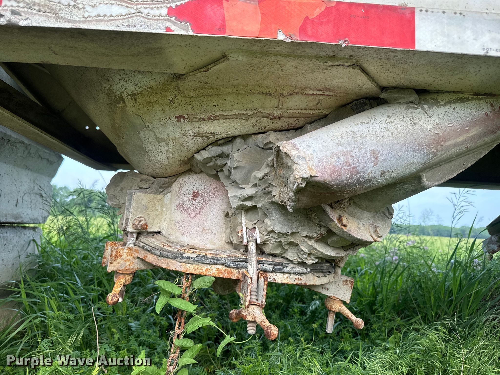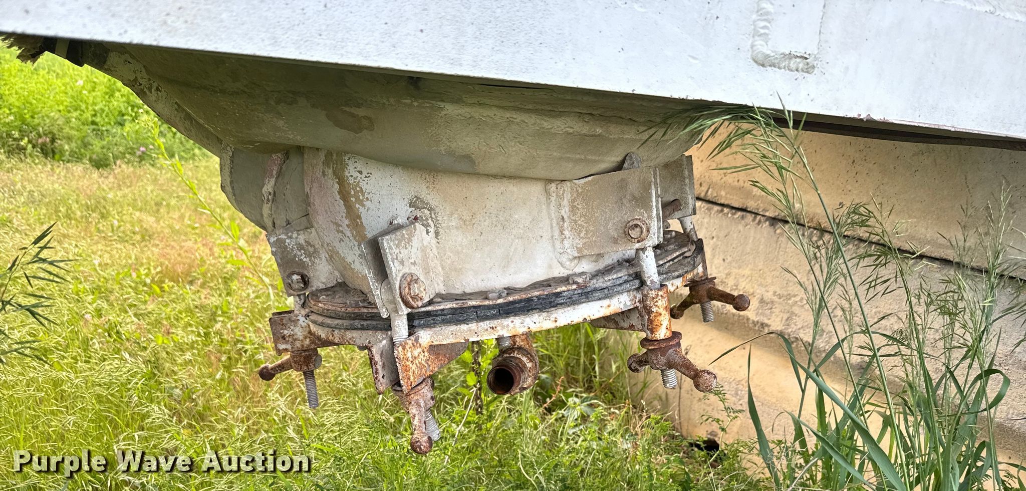 1978 Fruehauf pneumatic dry bulk trailer. VIN: 0MZ798406. Dimensions Overall: 42' L. Features Tank type: Aluminum, Compartments: 4 Capacity: 1,440 cu. ft. per compartment, Outlet valves: 4 Size: 4", No. of manways/manholes: 4. Chassis Landing gear: Dual, Suspension: Air, Brakes: Air, Axles: Tandem, GVWR: 56,000 lbs. Tires Aluminum wheels, Size: 285/75R24.5. Notes Landing gear damaged, Passenger side landing gear missing, Compartments damaged. Kansas title. Title distribution may be delayed up to 30 days from verification of funds. Hold'em Fence Co. LLC. Council Grove, KS 66846
