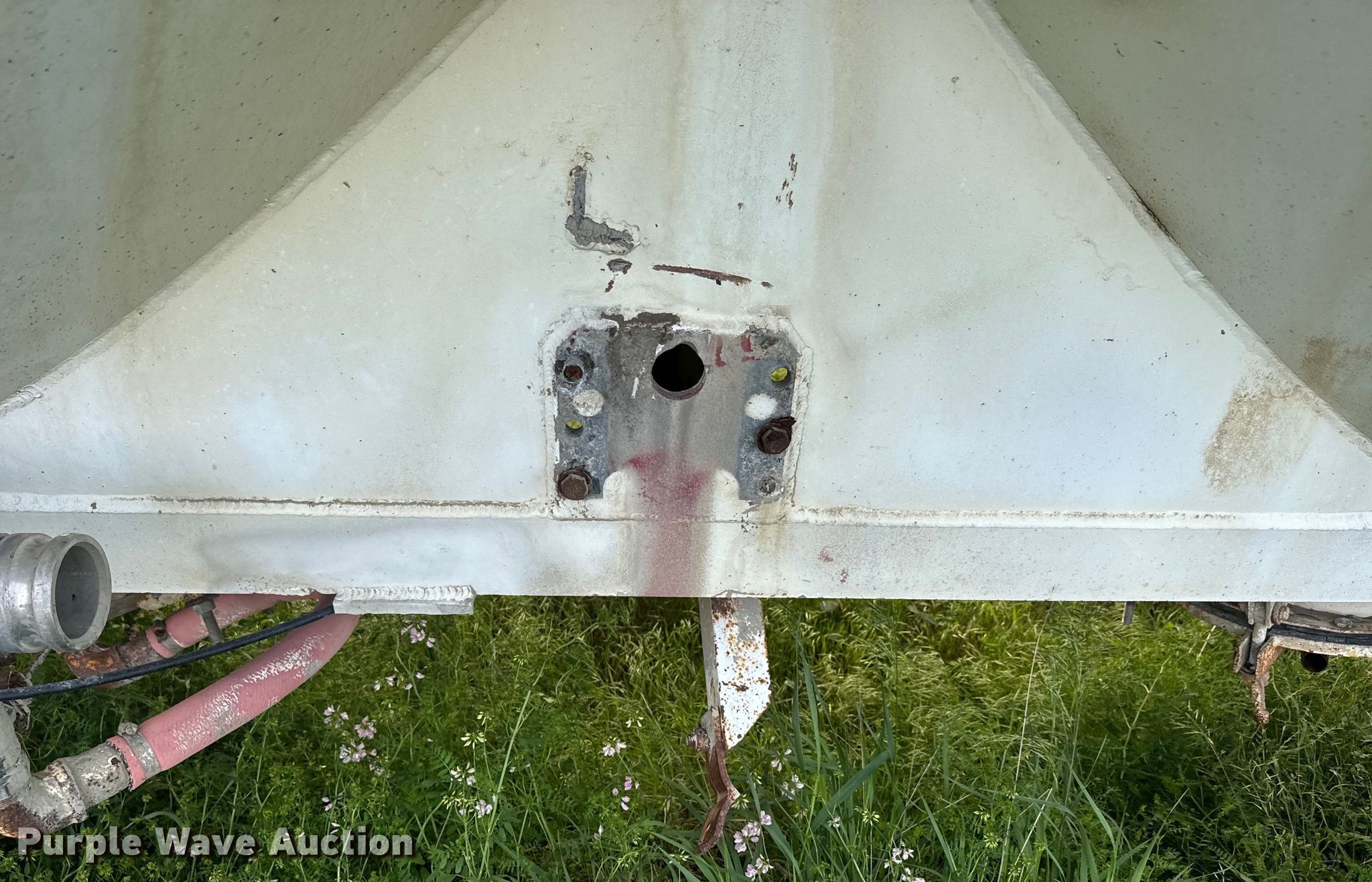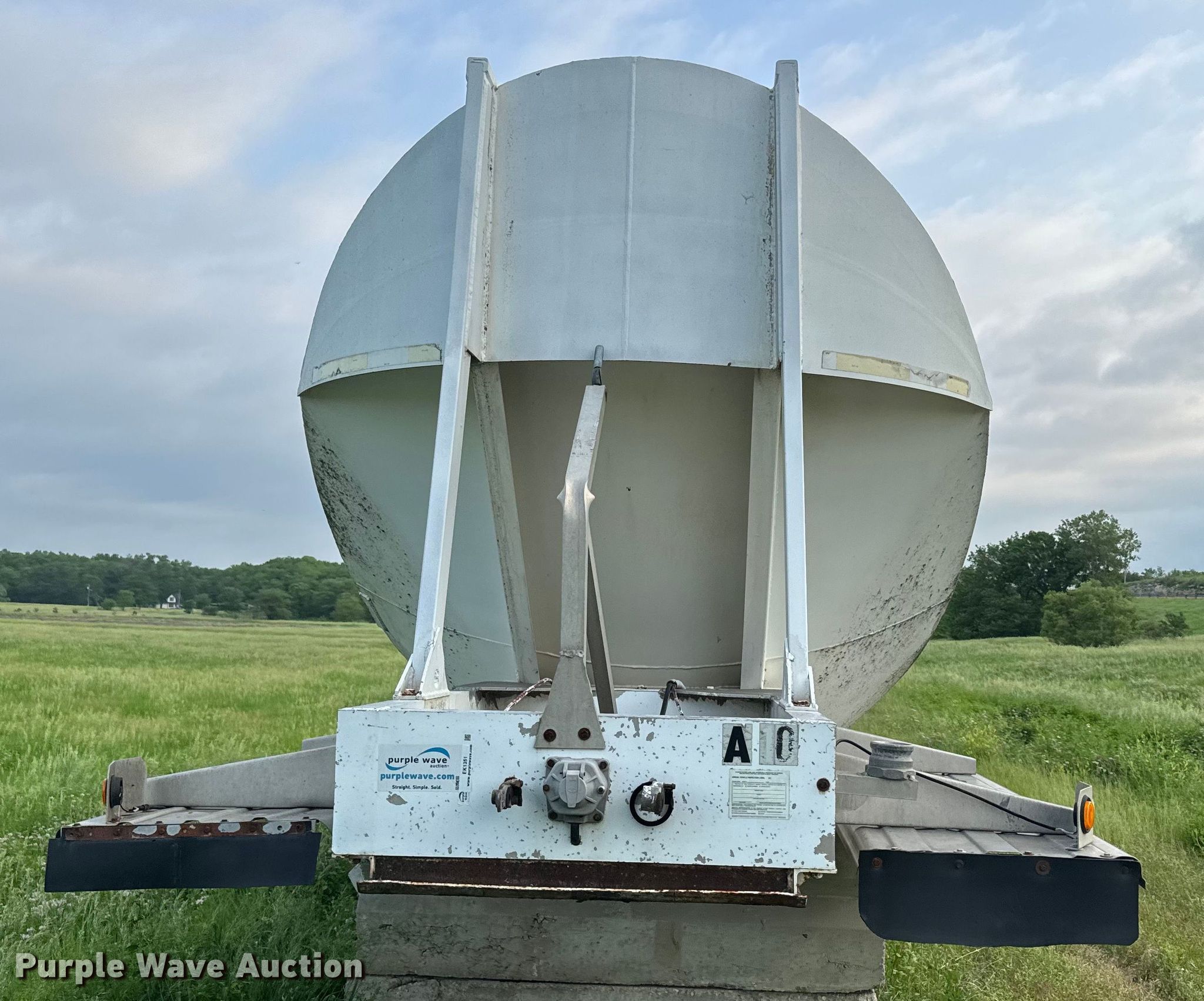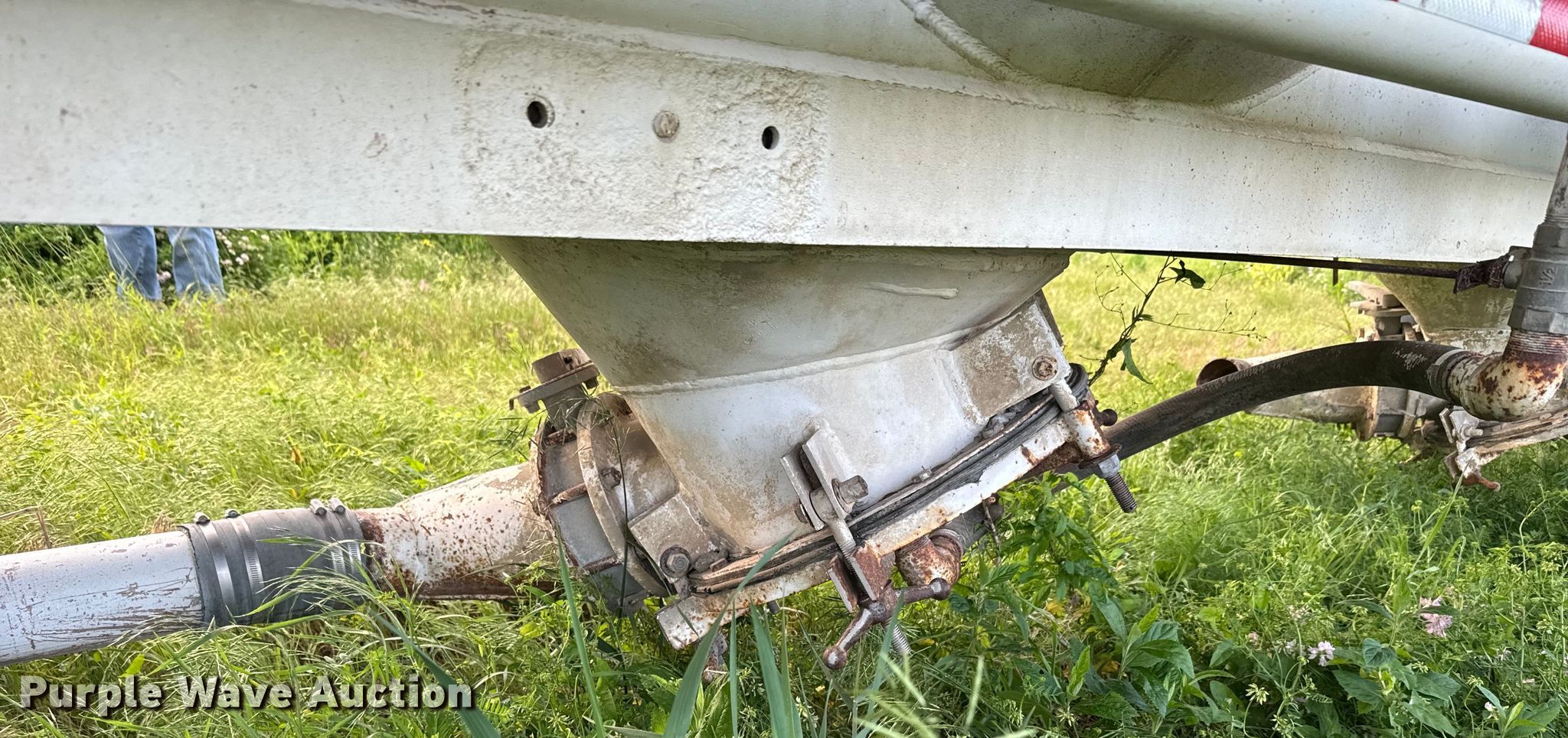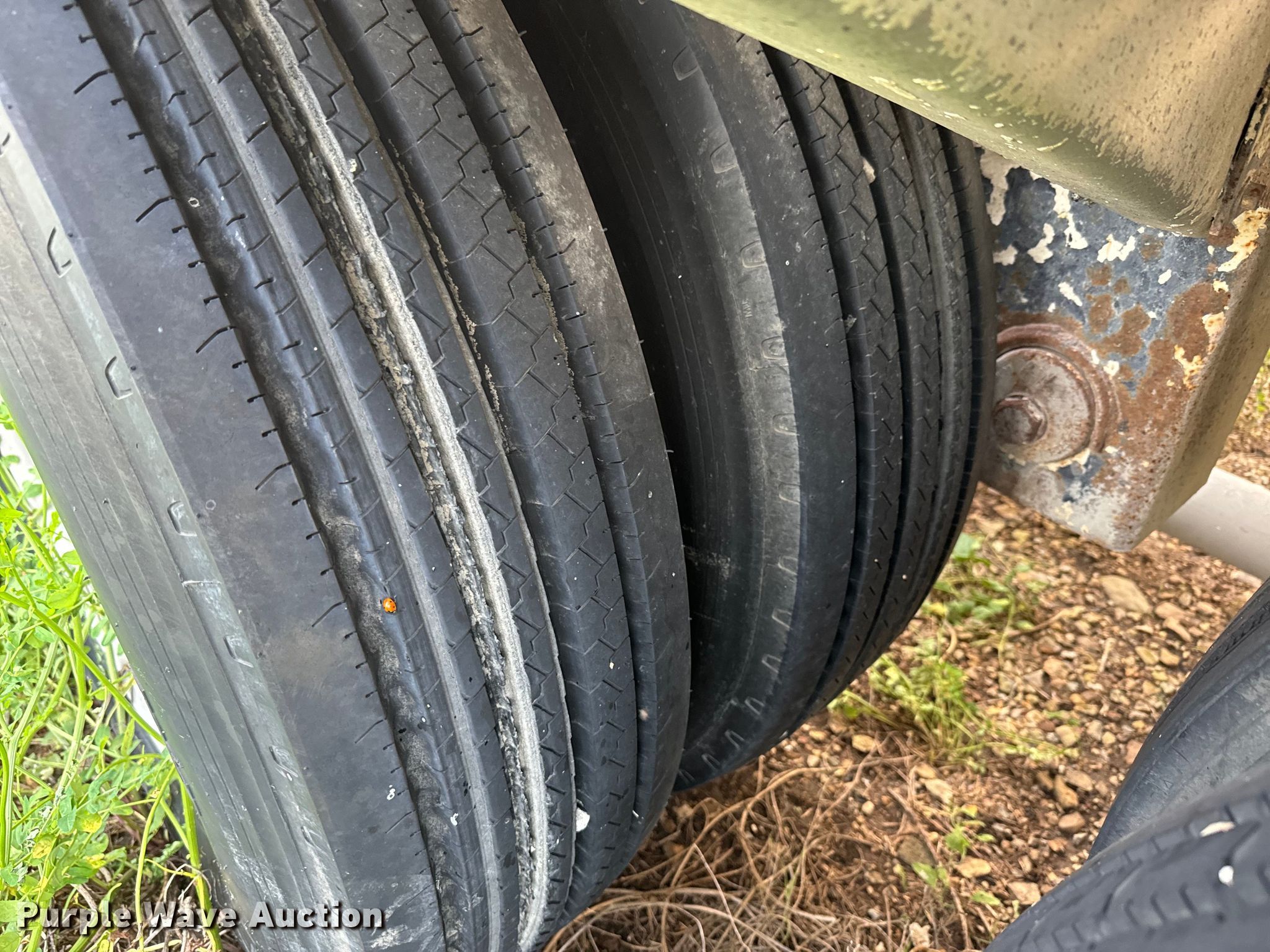 1978 Fruehauf pneumatic dry bulk trailer. VIN: 0MZ798406. Dimensions Overall: 42' L. Features Tank type: Aluminum, Compartments: 4 Capacity: 1,440 cu. ft. per compartment, Outlet valves: 4 Size: 4", No. of manways/manholes: 4. Chassis Landing gear: Dual, Suspension: Air, Brakes: Air, Axles: Tandem, GVWR: 56,000 lbs. Tires Aluminum wheels, Size: 285/75R24.5. Notes Landing gear damaged, Passenger side landing gear missing, Compartments damaged. Kansas title. Title distribution may be delayed up to 30 days from verification of funds. Hold'em Fence Co. LLC. Council Grove, KS 66846