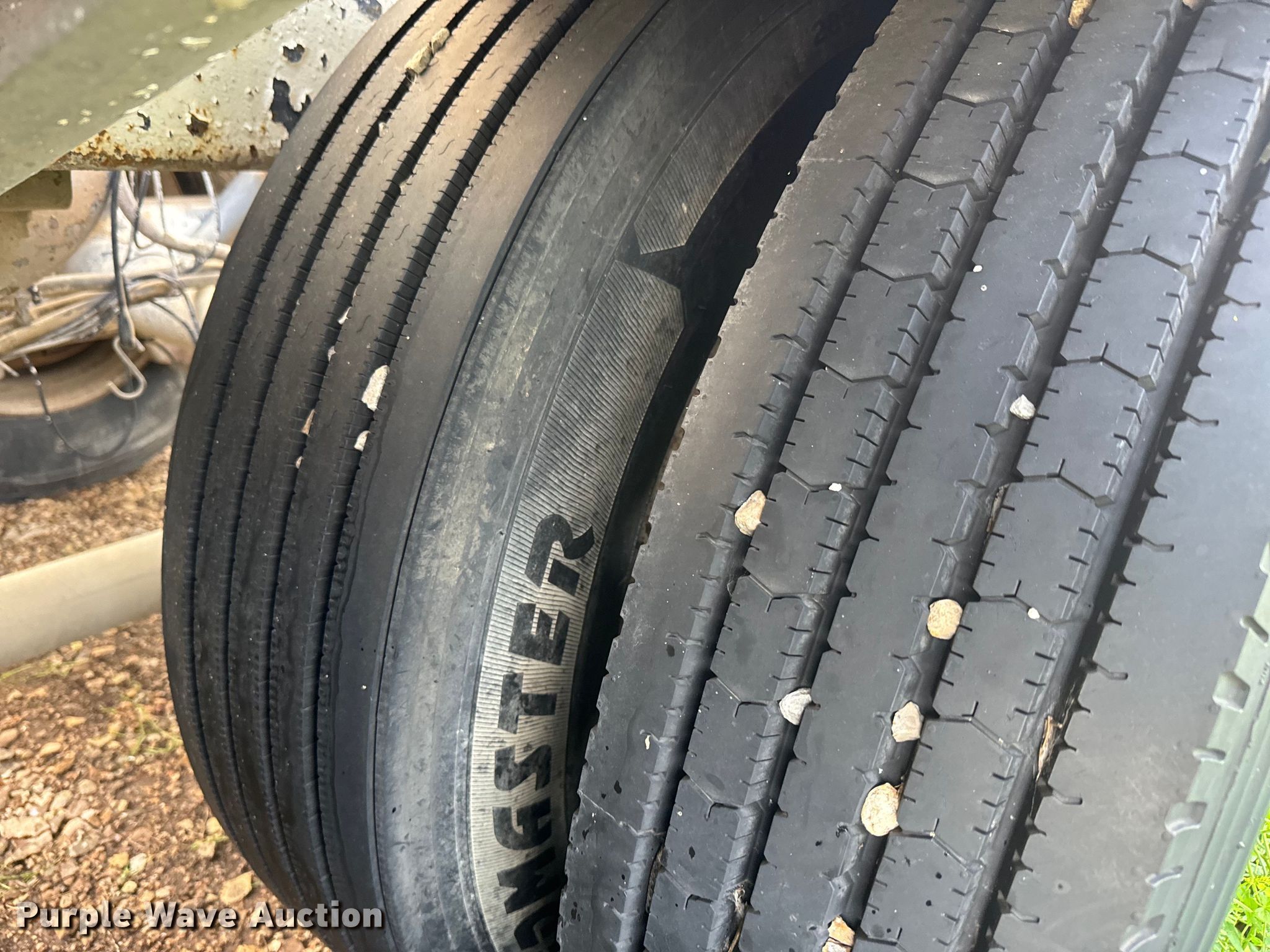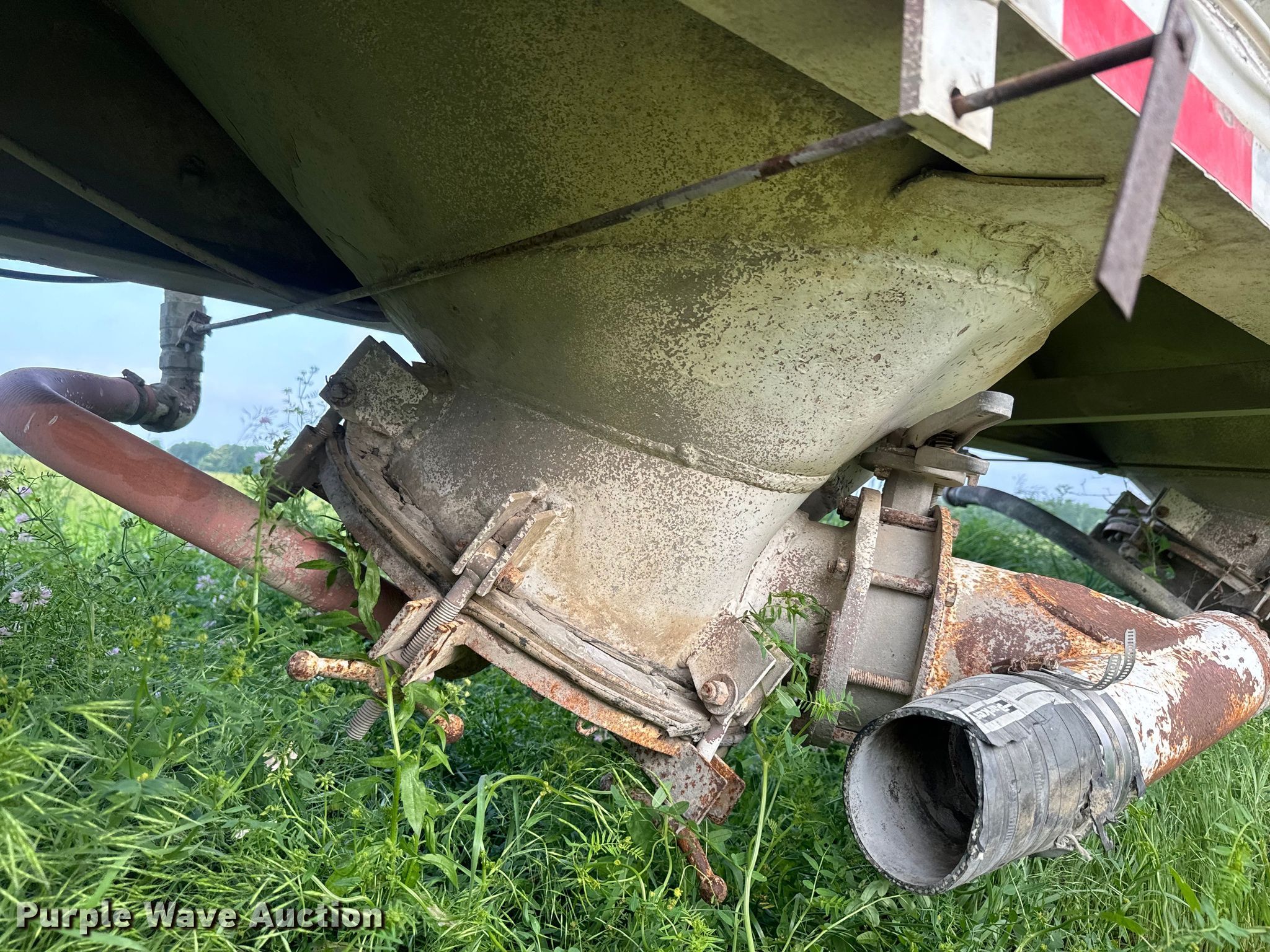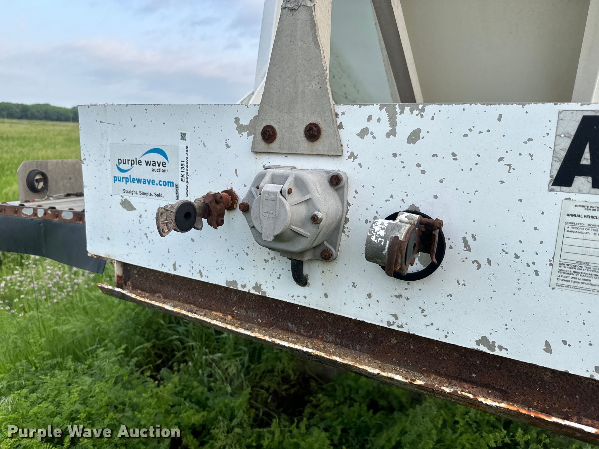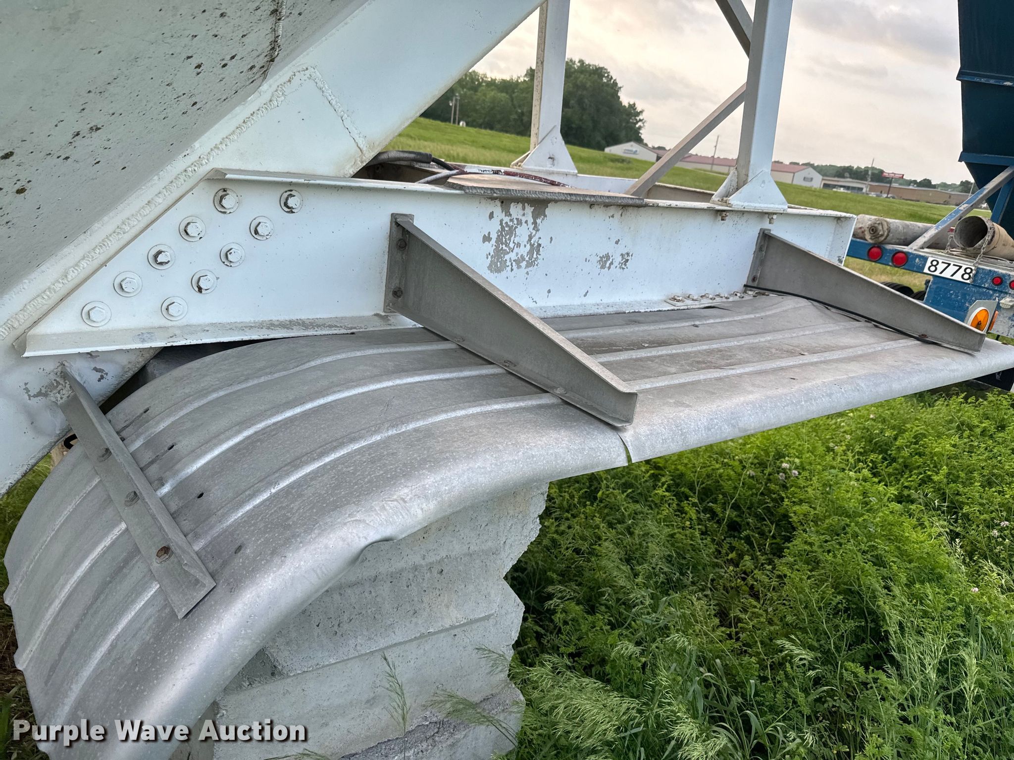 1978 Fruehauf pneumatic dry bulk trailer. VIN: 0MZ798406. Dimensions Overall: 42' L. Features Tank type: Aluminum, Compartments: 4 Capacity: 1,440 cu. ft. per compartment, Outlet valves: 4 Size: 4", No. of manways/manholes: 4. Chassis Landing gear: Dual, Suspension: Air, Brakes: Air, Axles: Tandem, GVWR: 56,000 lbs. Tires Aluminum wheels, Size: 285/75R24.5. Notes Landing gear damaged, Passenger side landing gear missing, Compartments damaged. Kansas title. Title distribution may be delayed up to 30 days from verification of funds. Hold'em Fence Co. LLC. Council Grove, KS 66846