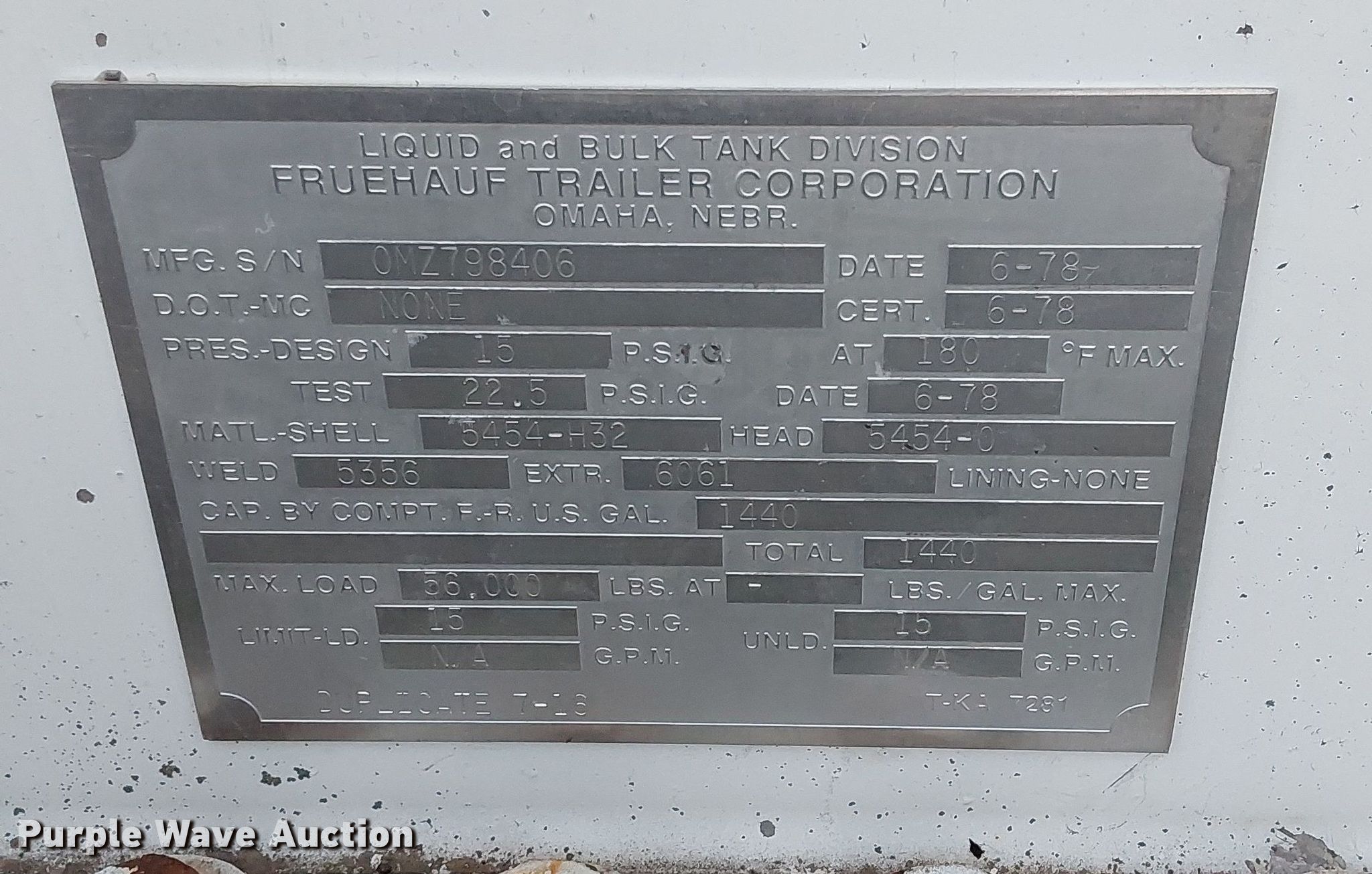 Purple Wave is selling a used Tank Trailer in Kansas. This item is a 1978 Fruehauf pneumatic dry bulk trailer with the following: VIN: 0MZ798406