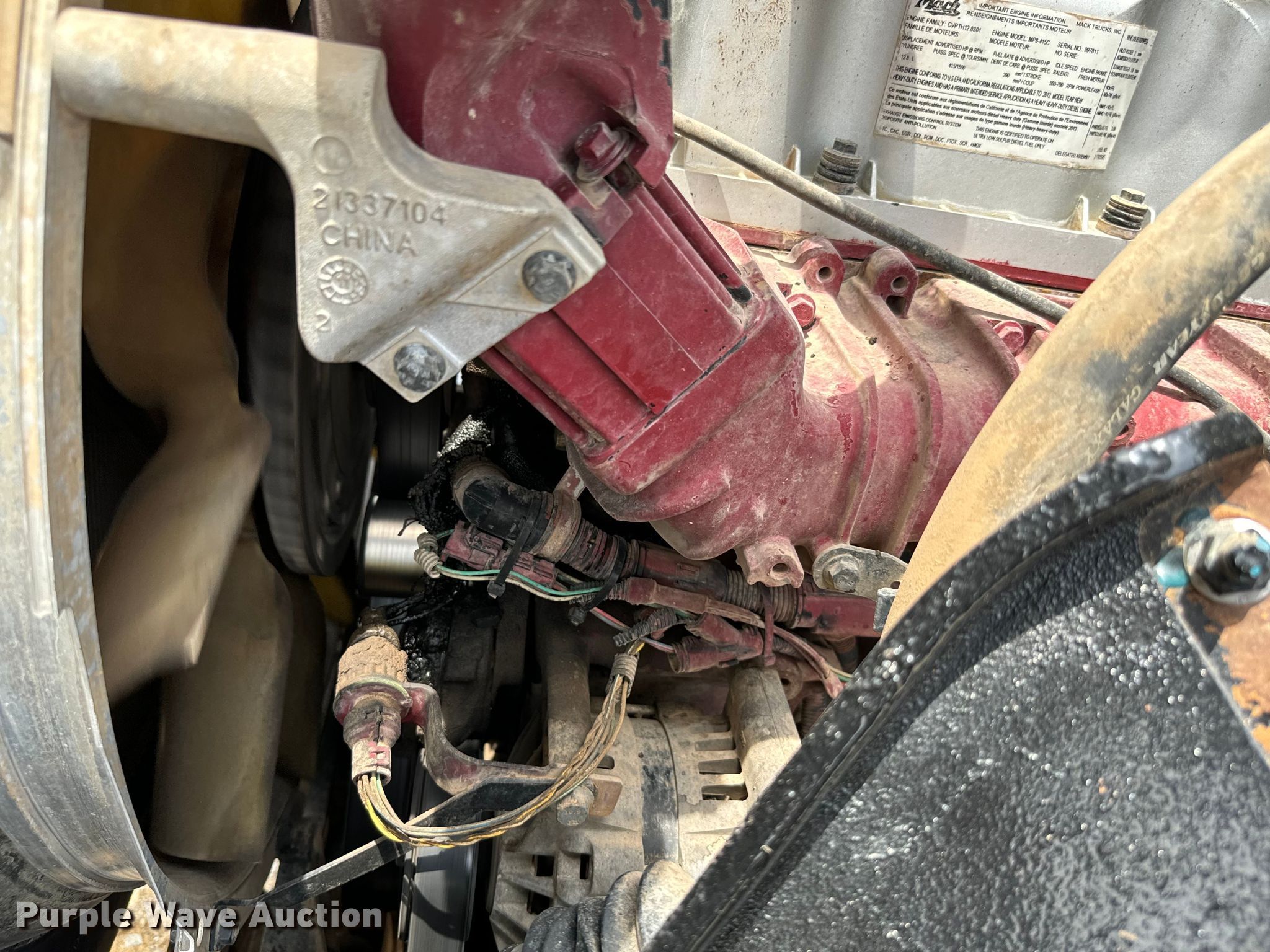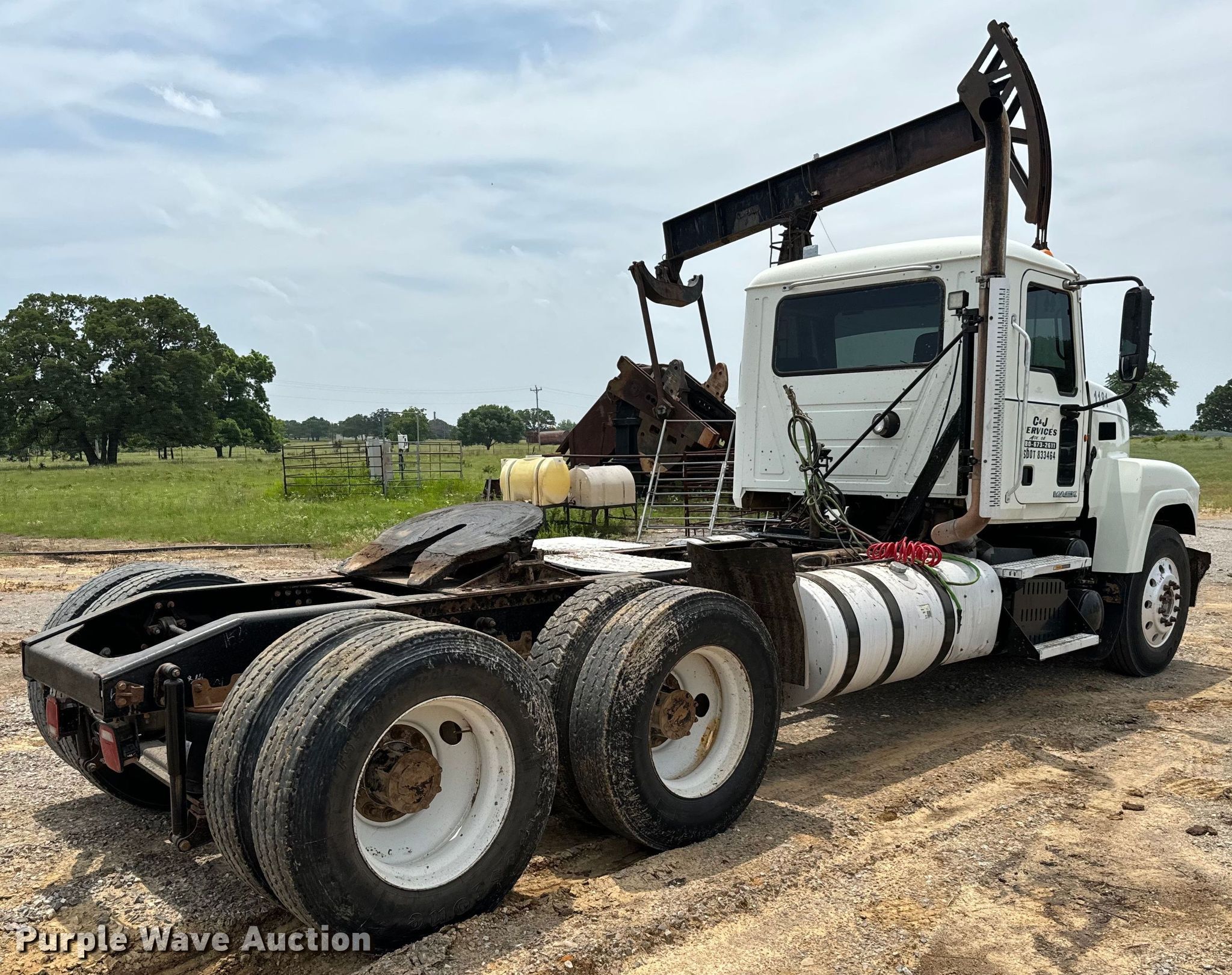 2013 Mack CHU613 semi truck. Miles: 604,457 on odometer, Hours: 7,006 on meter, VIN: 1M1AN09Y8DM013852. Engine Mack MP8, Serial: CVPTH12.8S01, Displacement: 12.7L, Cylinders: 6, Fuel type: Diesel, Engine brake. Transmission Eaton Fuller, Manual, Speed: 13. Chassis Axles: Tandem, Differential lock: Inter-axle, Suspension: Air, Brakes: Air, PTO, GVWR: 52,000 lbs. Interior AC, Heat, Cruise control, Air ride cab. Features Deck plate: Aluminum, Fifth wheel type: Fixed, Fuel tank: Dual. Tires Size: 11R24.5. Notes Dash warning indicator: ABS, ATC, Electrical fault. Oklahoma title. Title has a lien that will be released following the close of the auction. Title distribution may be delayed up to 30 days from verification of funds. C&J Oilfield Services. 118 4th St. Fox, OK 73435