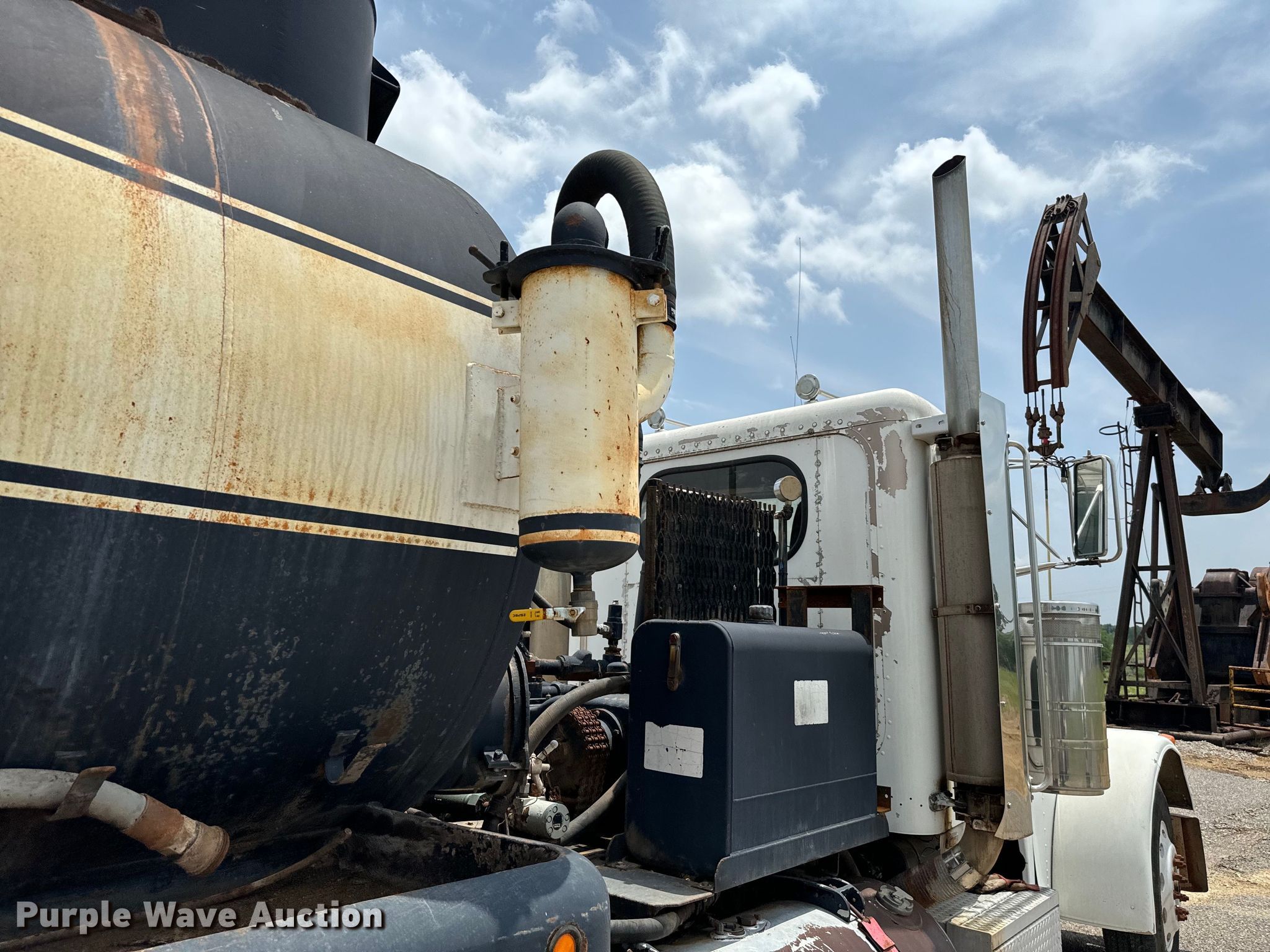 1996 Peterbilt 379 vacuum truck. Miles: 284,487 on odometer, VIN: 1XP5DB9X5TD386951. Engine Caterpillar, Serial: 5EK47264, Cylinders: 6, Fuel type: Diesel. Transmission Manual. Chassis Axles: Tandem, Suspension: Air, Brakes: Air, PTO, GVWR: 50,000 lbs. Interior Heat, Heated mirrors, Auxiliary controls. Features Tank bed Top hatches: 3, Rear outlet: 4", NuFlo MC-II analyzer measurement system. Tires Size: 11R24.5. Notes Dash warning indicator: Check engine, Suspension dump. Oklahoma title. Title distribution may be delayed up to 30 days from verification of funds. C&J Oilfield Services. 118 4th St. Fox, OK 73435