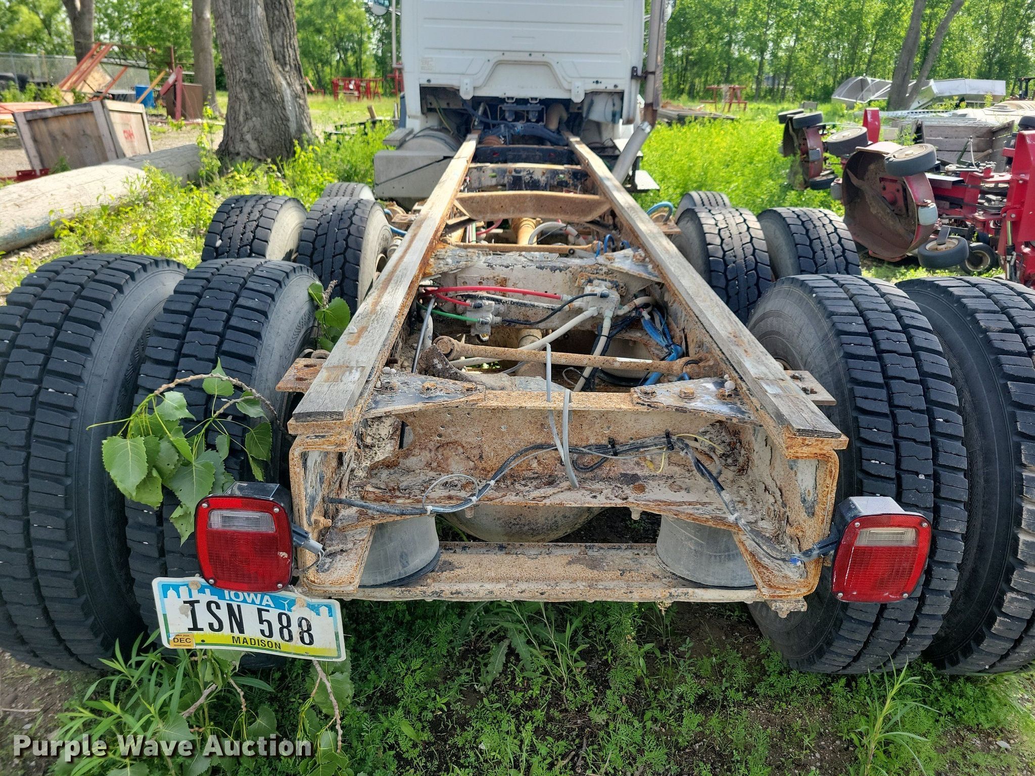 2003 Freightliner FL112 truck cab and chassis. Miles: Unknown, VIN: 1FVMBGAS53HK88015. Engine Caterpillar C12, Cylinders: 6, Fuel type: Diesel. Transmission Eaton Fuller, Manual, Speed: 10. Chassis Axles: Triple, Pusher axle Steerable, Differential lock: Inter-axle, Suspension: Air Dump valves, Brakes: Air, PTO, Truck chassis: 20', GVWR: 69,020 lbs FAWR: 18,000 lbs, IAWR: 20,000 lbs, RAWR: 20,000 lbs, Lift axle GAWR: 11,020 lbs. Interior AC, Heat, Heated mirrors, Cruise control. Features Fuel tank: Single. Tires Front: 425/65R22.5, Rear: 11R22.5, Lift axle: 255/70R22.5. Notes Non-operational unit. Iowa title. Title distribution may be delayed up to 14 days from verification of funds. Agriland FS. Johnston, IA 50131
