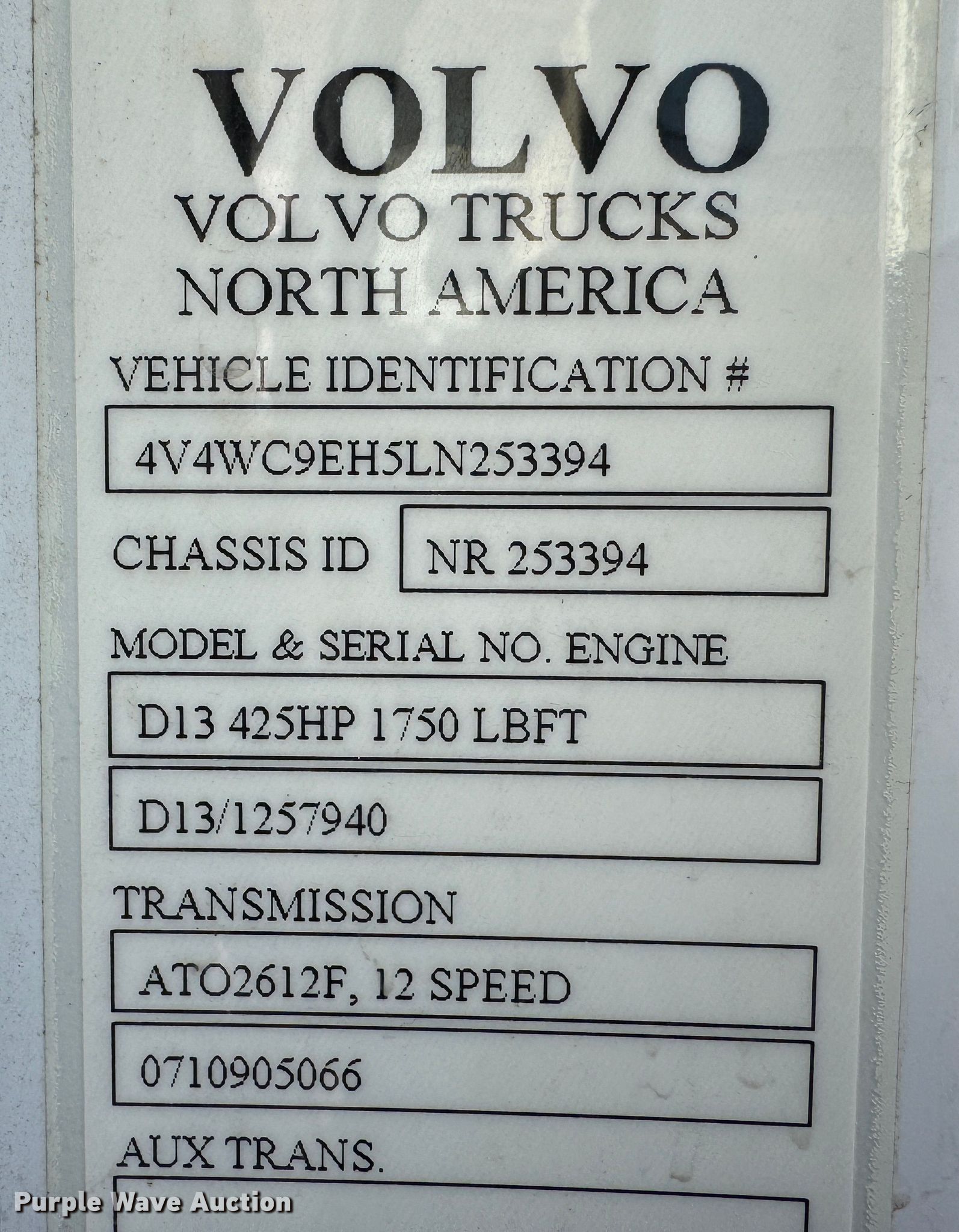 2020 Volvo VNR semi truck. Miles: 536,482 on odometer, VIN: 4V4WC9EH5LN253394. Engine Displacement: 12.8L, Cylinders: 6, Fuel type: Diesel. Transmission Automated manual. Chassis Axles: Tandem. Interior AC, Heat, Heated mirrors, Power windows, Power locks, Sleeper Rear climate control. Features Fifth wheel type: Air operated, Sliding, Fuel tank: Single. Notes Decals will be removed prior to auction. Additional images and description forthcoming. New Mexico title. Title has a lien that will be released following the close of the auction. Title distribution may be delayed up to 30 days from verification of funds. D & H Cattle Co, LLC. Portales, NM 88130