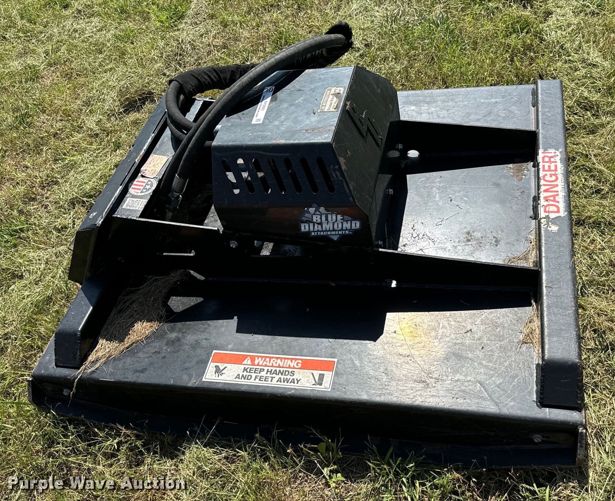 Purple Wave is selling a used Skid Steer Attach. in Oklahoma. This item is a 2020 Blue Diamond 103725-25 compact utility loader rotary mower with the following: Serial: 99496, Width: 48"