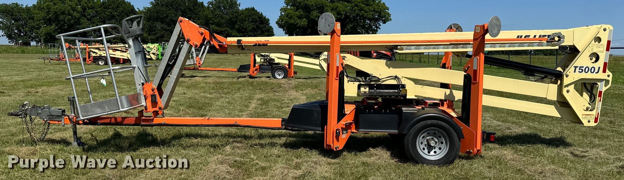 2018 JLG T500J boom lift. Hours: 328 on meter, Serial: 0030009071. Electric Motor Volts: 24. Features Tow behind, Maximum lift capacity: 500 lbs, Maximum lift height: 50', Hydraulic outriggers, Platform: 45" L x 28" W, AC power outlet, Air outlet, Controls: Platform, Ground. Tires Tire size: ST225/75R15. Transfer of ownership documentation will be a bill of sale. Okie Rents - Open inspection June 22, 26. Davis, OK 73030