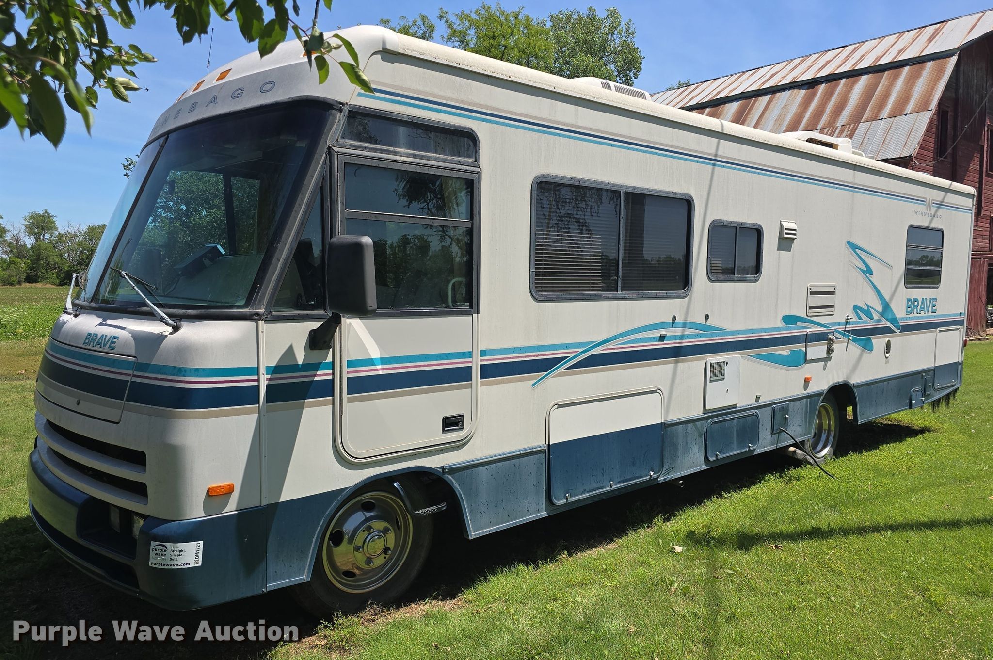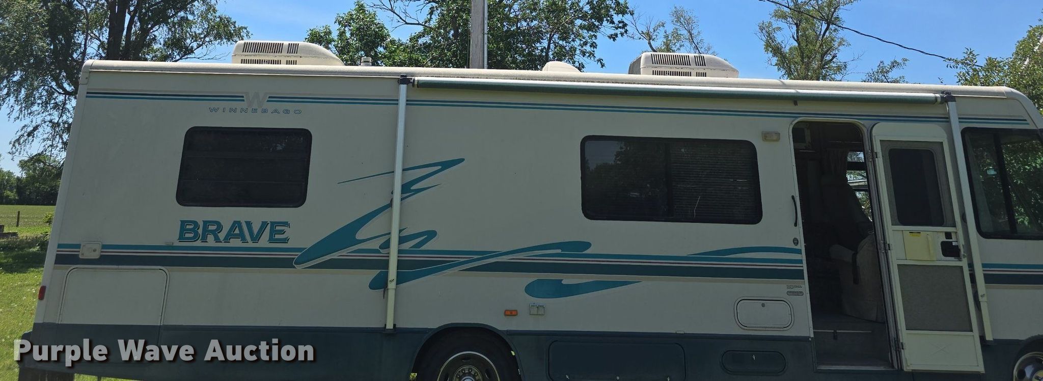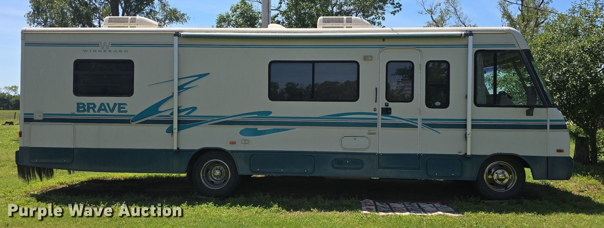 Purple Wave is selling a used RV or Camper in Kansas. This item is a 1996 Winnebago Brave RV with the following: Miles: 25,793 on odometer, Camper length: 31', VIN: 1GBKP37N5S3324073