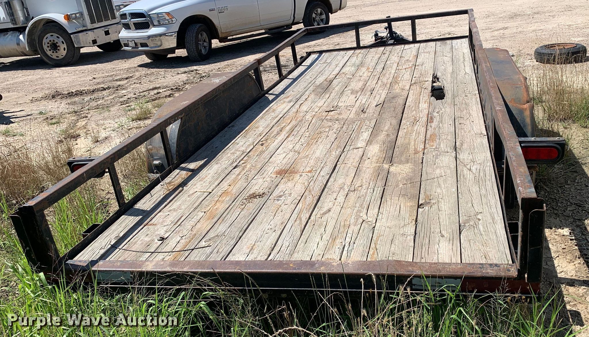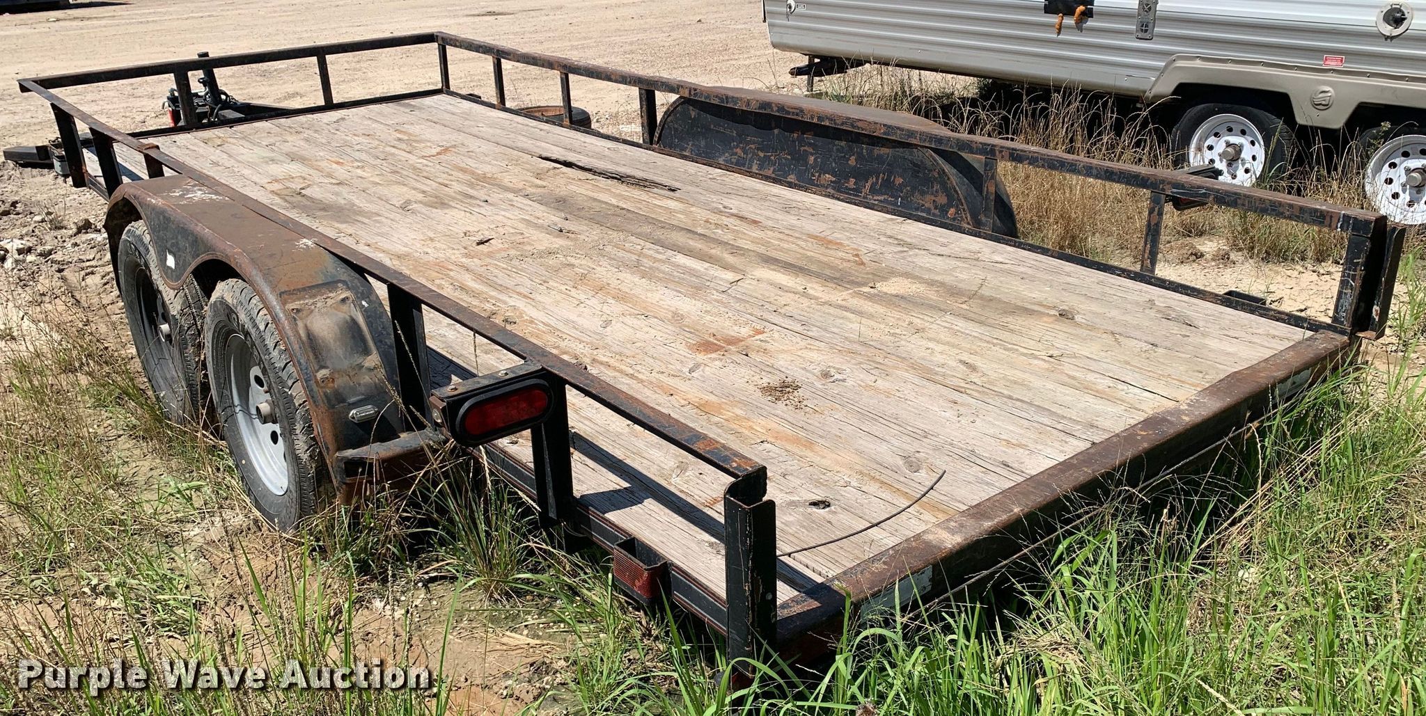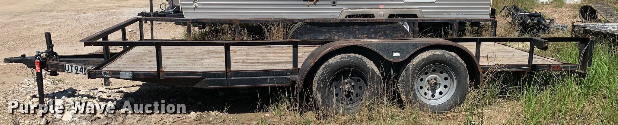 2013 Bestbilt utility trailer. VIN: 5YHBU1628DM304810, Unit #: UT94. Dimensions Overall: 20' L x 8' W, Deck: 16' L x 6' 5" W, Side height: 1', Deck height: 1' 6". Features Deck type: Wood. Chassis Ball hitch: 2", Landing gear: Single, Suspension: Spring, Axles: Tandem, GVWR: 7,000 lbs, GAWR: 3,500 lbs. Tires Steel wheels, Size: ST205/75R15. Texas title. ROC Service. Cleburne, TX 76033