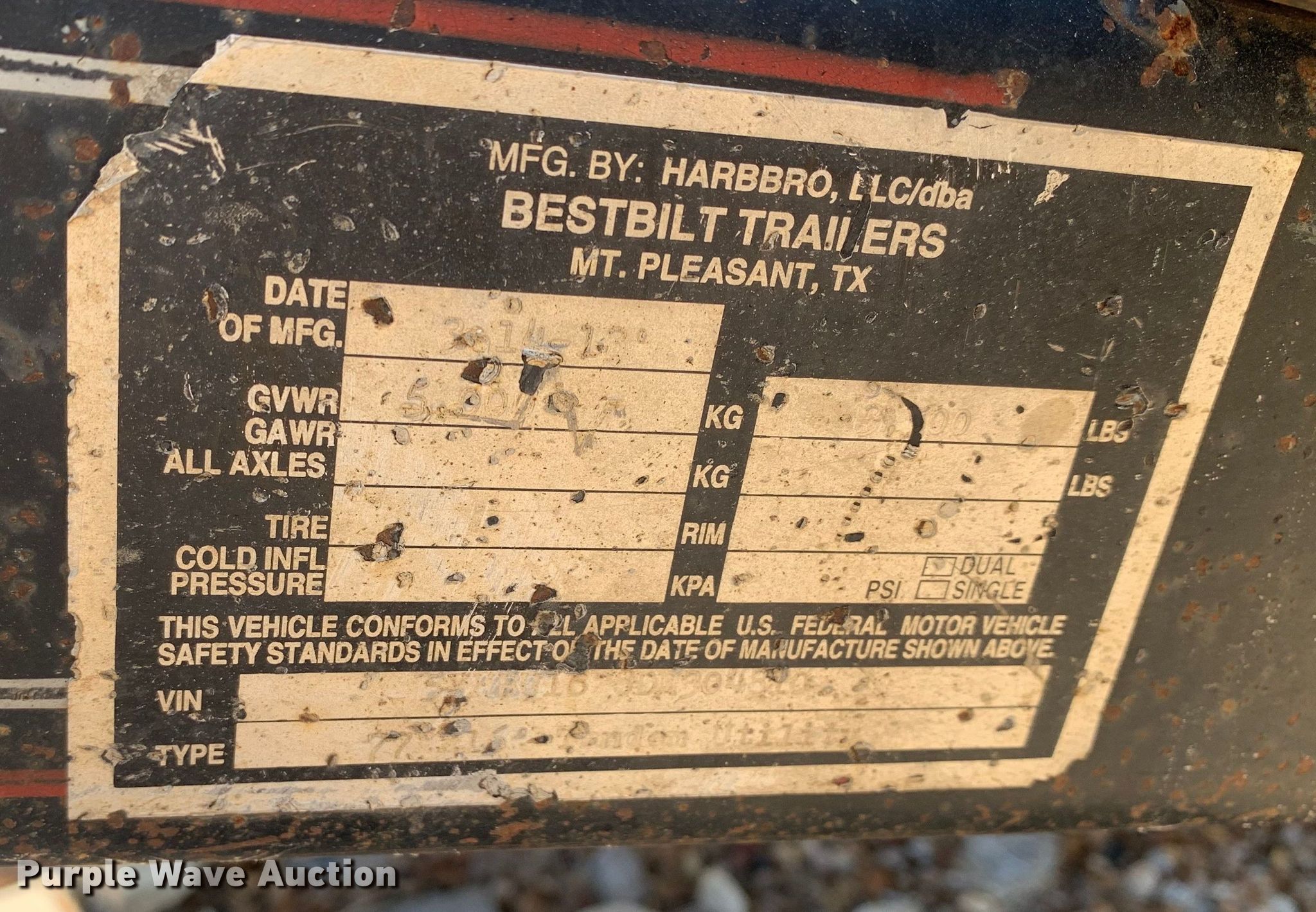 Purple Wave is selling a used Car or Utility Trailer in Texas. This item is a 2013 Bestbilt utility trailer with the following: VIN: 5YHBU1628DM304810, Unit #: UT94