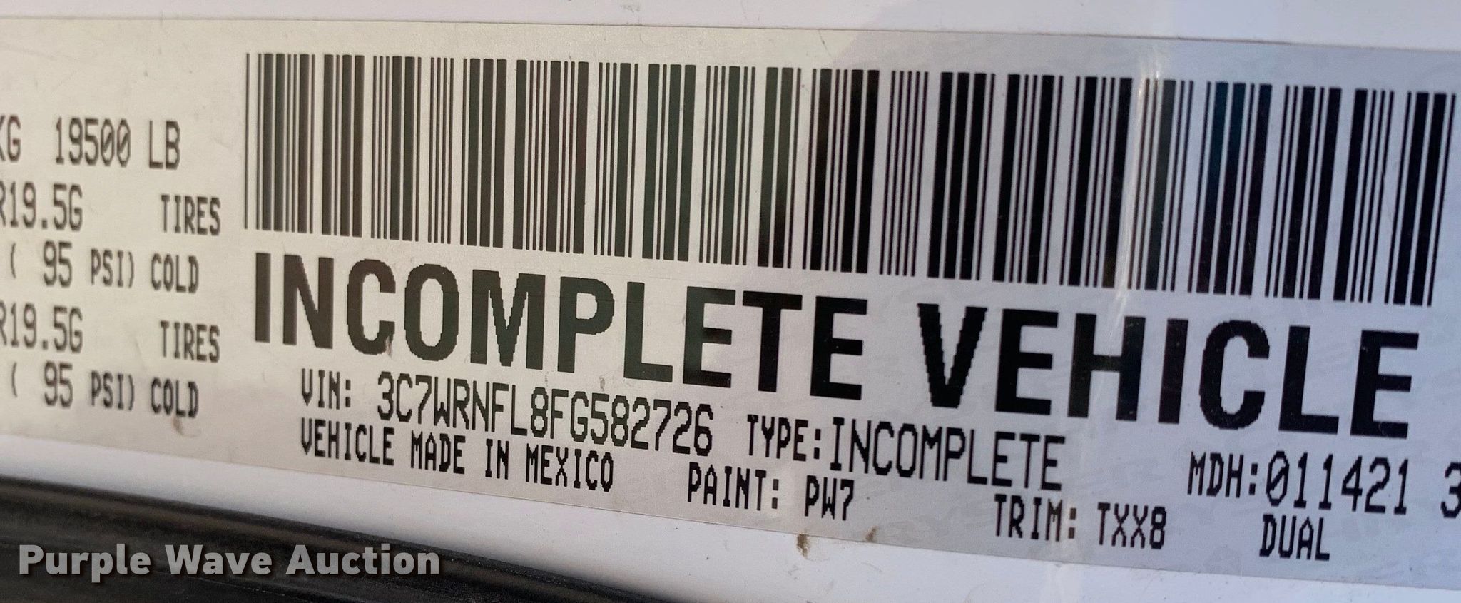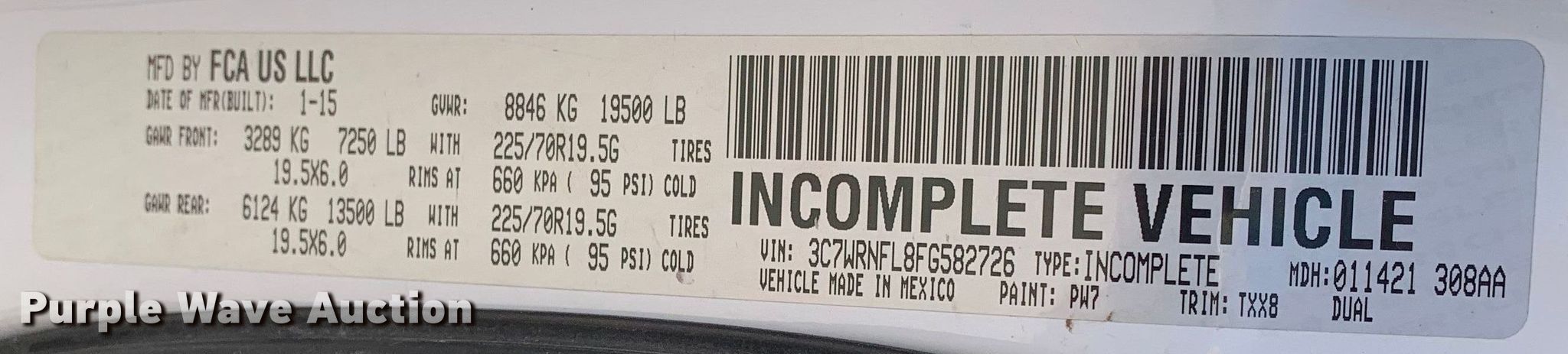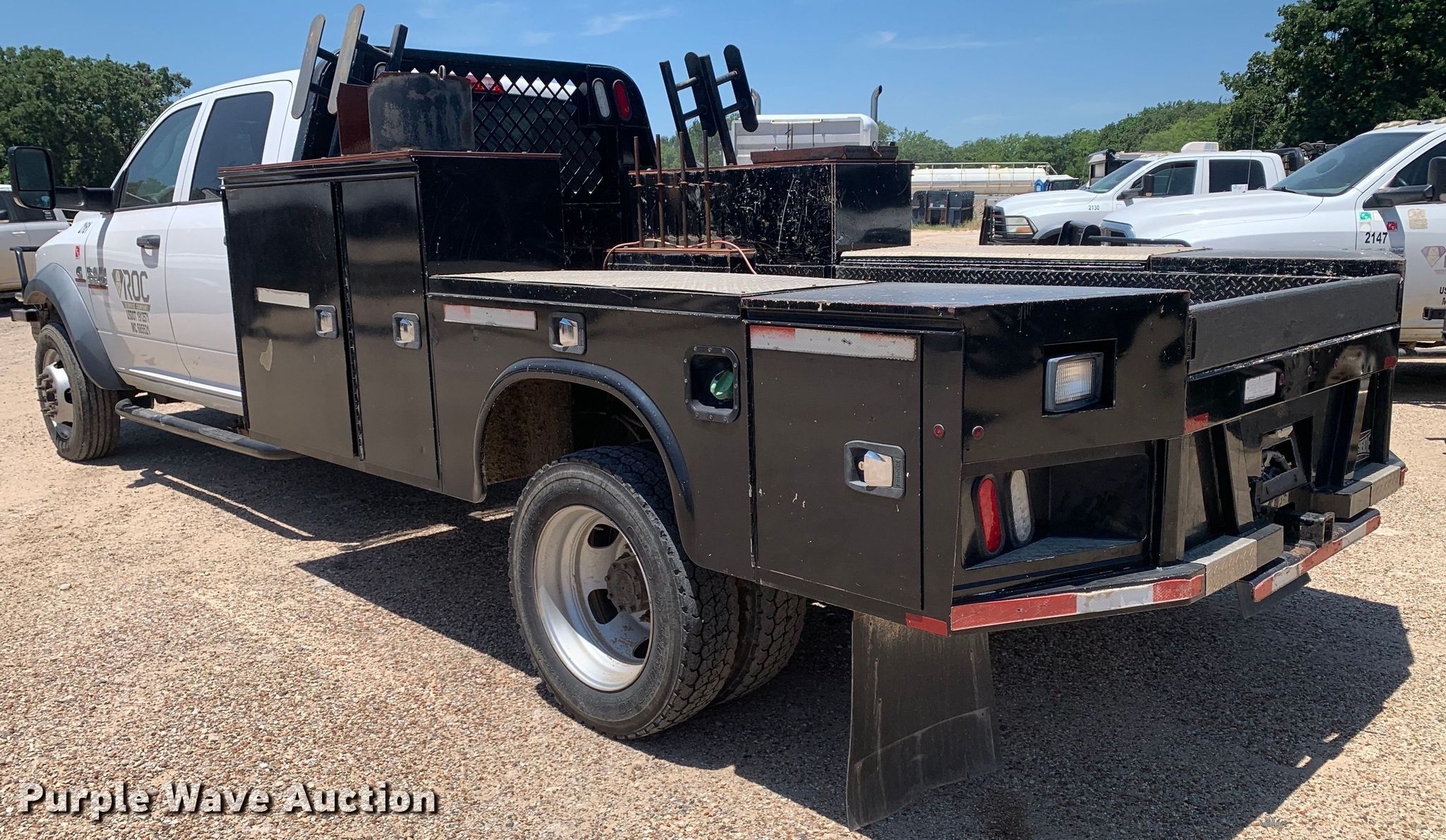 Purple Wave is selling a used Flat Bed Truck in Texas. This item is a 2015 Dodge Ram 5500HD Crew Cab flatbed truck with the following: Miles: 93,568 on odometer, VIN: 3C7WRNFL8FG582726, Unit #: 2161