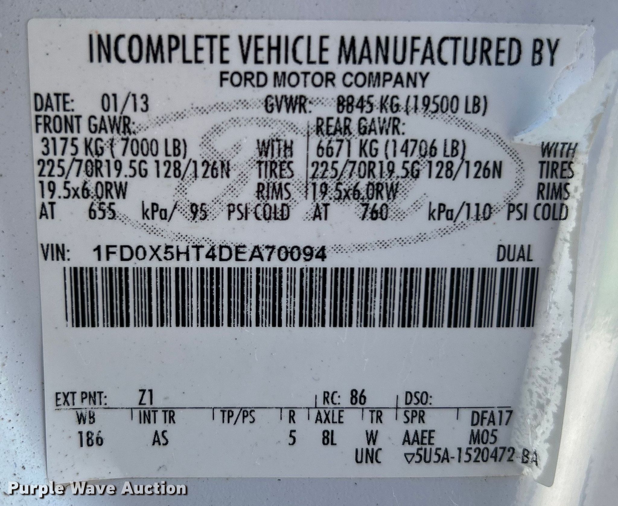 - VIN: 1FD0X5HT4DEA70094