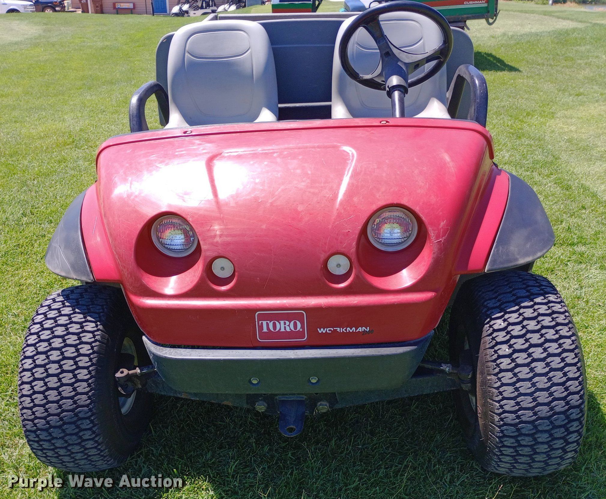 Toro Workman 2100 utility vehicle. Hours: 760 on meter, Serial: 07253220000413. Engine Cylinders: 2, Fuel type: Gas, Electric start. Transmission Automatic. Features Dump bed 48" L x 54" W, Dump bed type: Electric/ Hydraulic. Tires Size: 22.5x10.00-8. Transfer of ownership documentation will be a bill of sale. Pine Bay Golf Course. Wichita, KS 67216