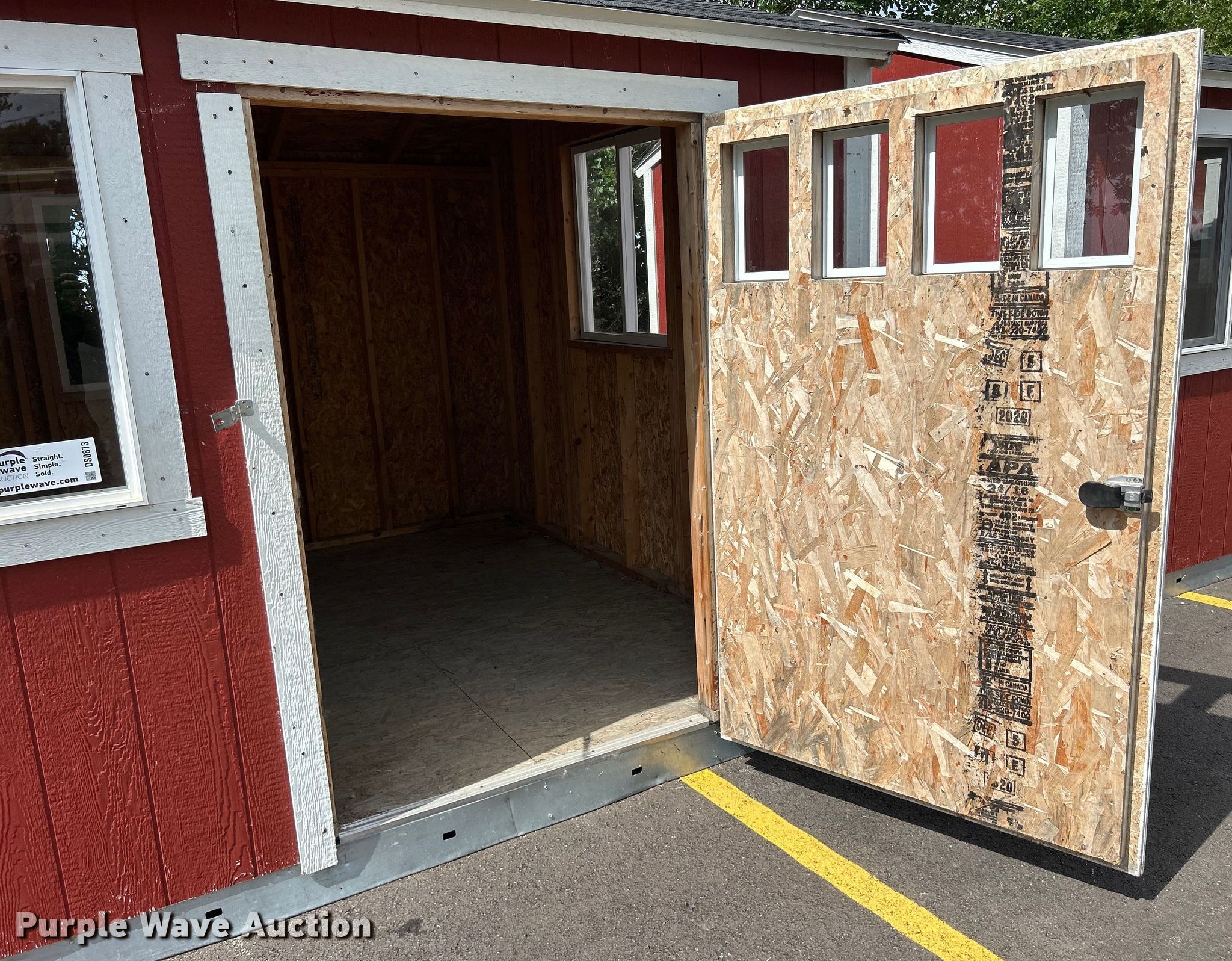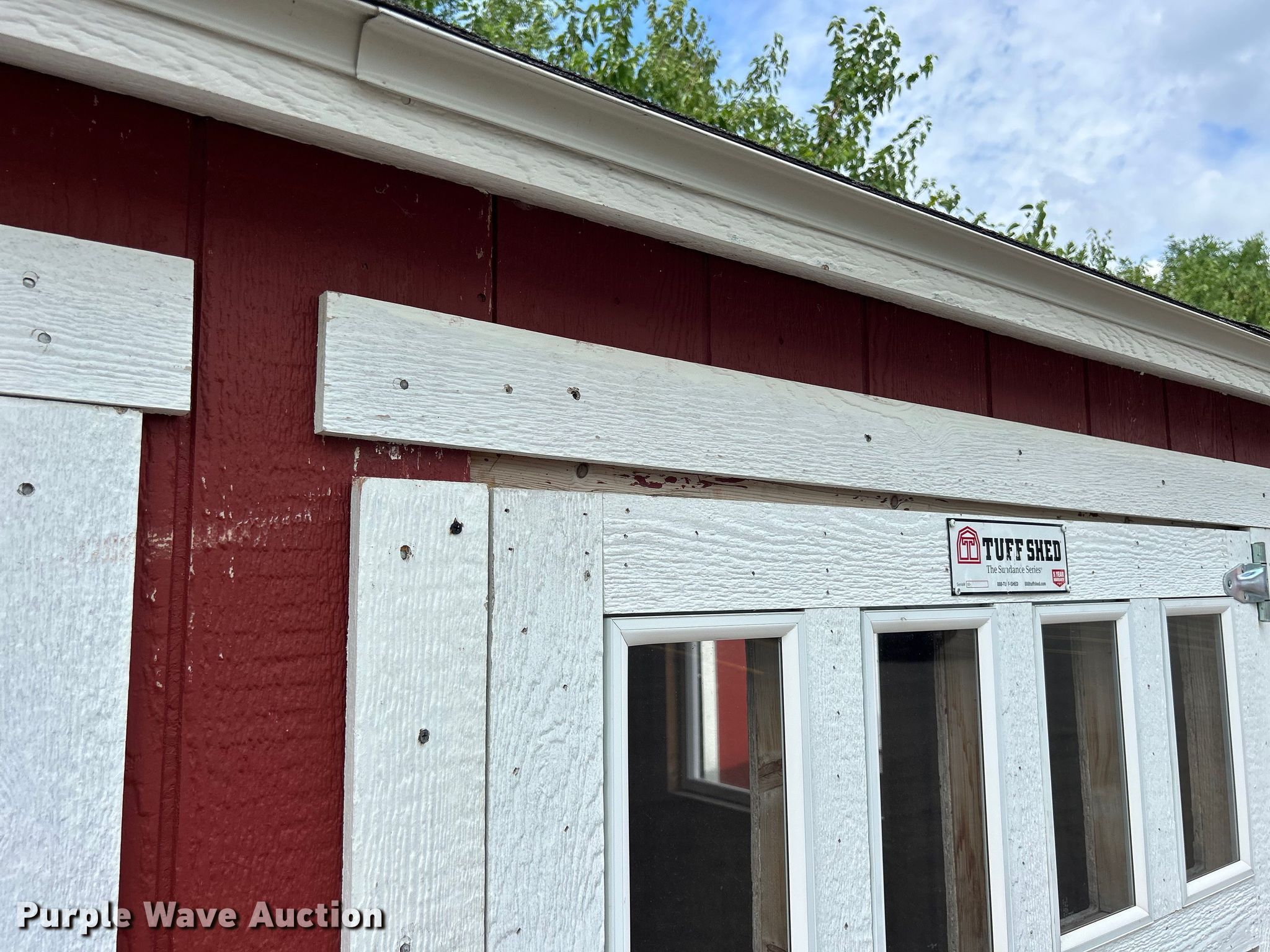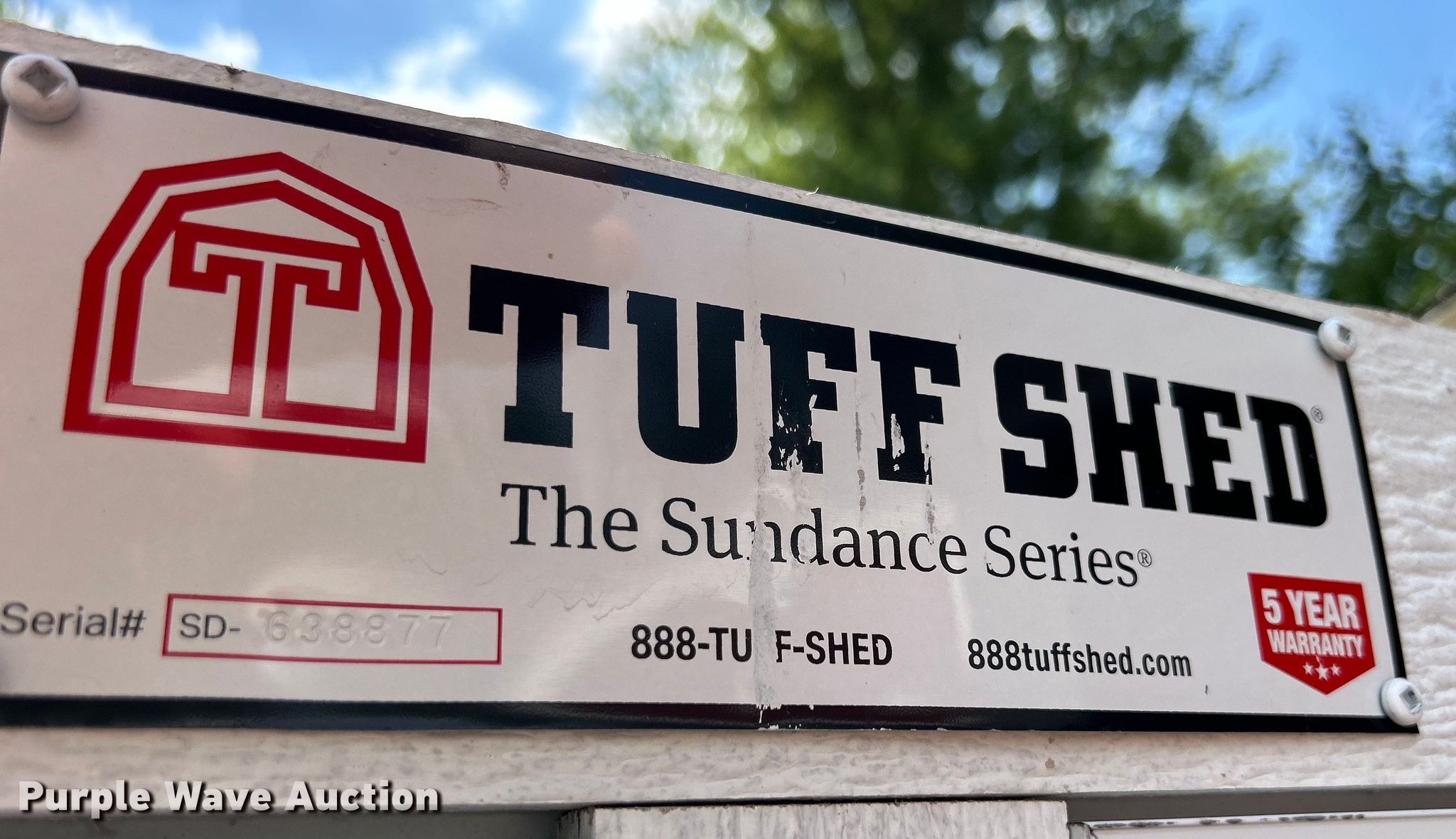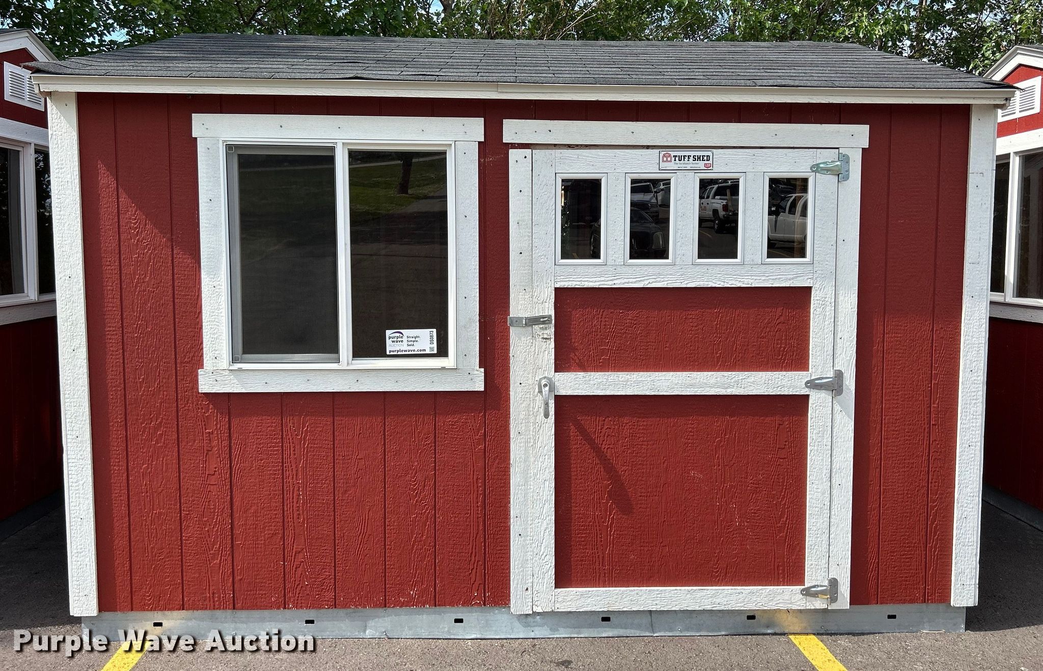 Purple Wave is selling a used Building Materials in Iowa. This item is a Tuff Shed storage shed with the following: Serial: SD-638877, Dimensions: 12' L x 10' W x 9' H, Door: 45" W x 71" H