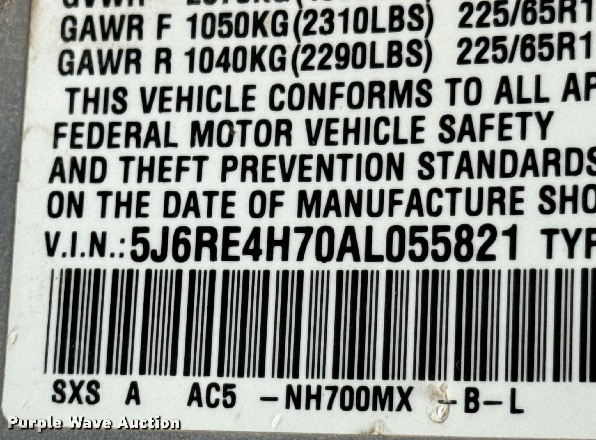 - VIN: 5J6RE4H70AL055821