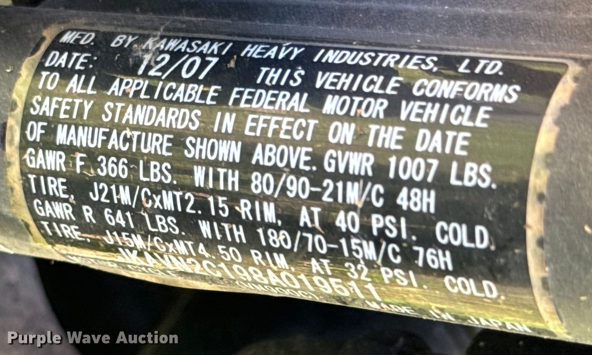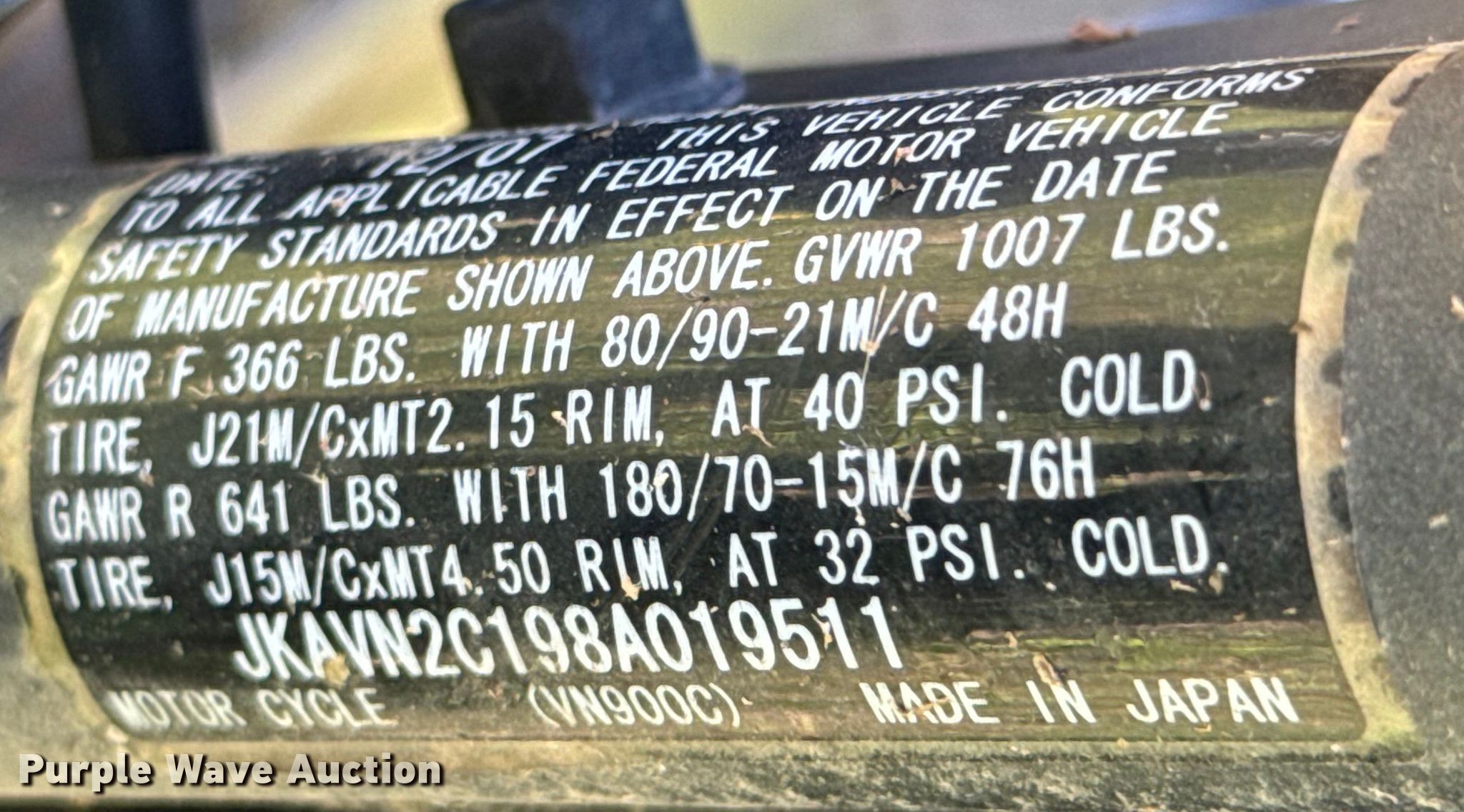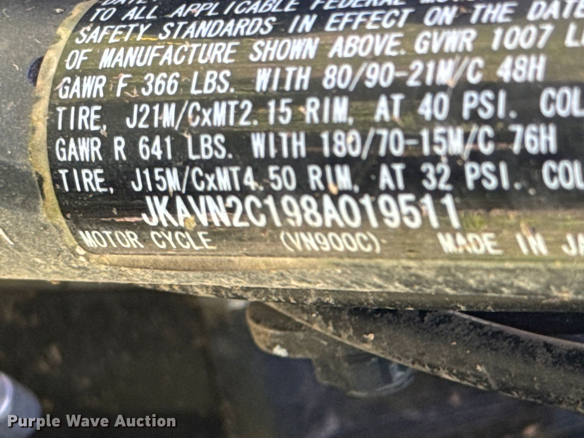 Purple Wave is selling a used Motorcycle in Arkansas. This item is a 2008 Kawasaki Vulcan motorcycle with the following: Miles: 5,152 on odometer, VIN: JKAVN2C198A019511