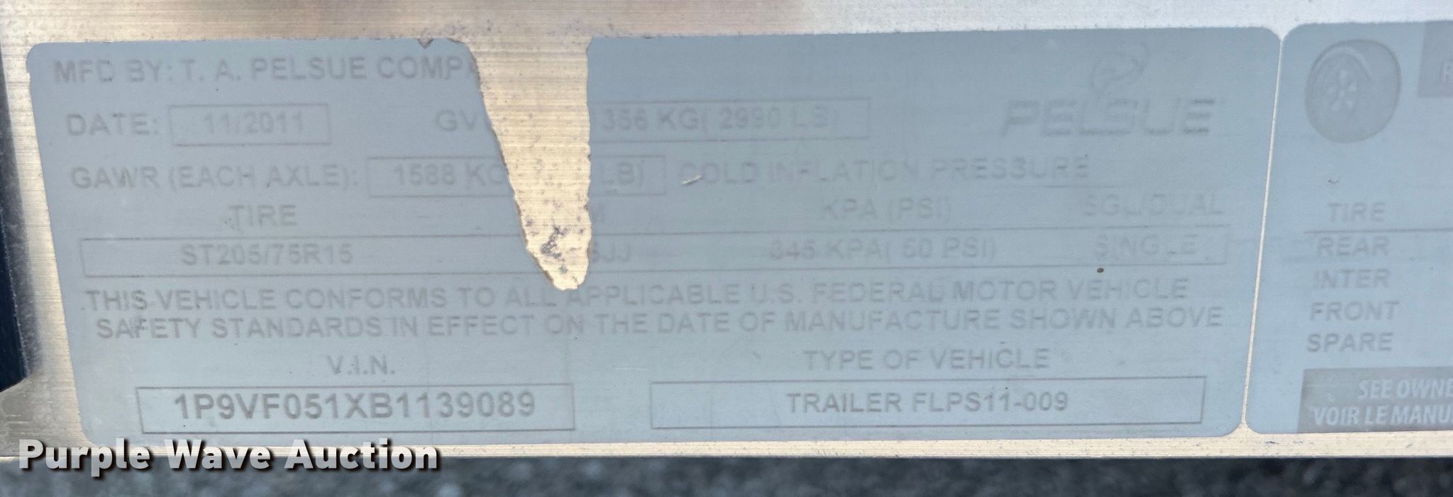 Purple Wave is selling a used Enclosed Cargo Trailer in Oklahoma. This item is a 2012 Pelsue fiber optic trailer with the following: VIN: 1P9VF051XB1139089
