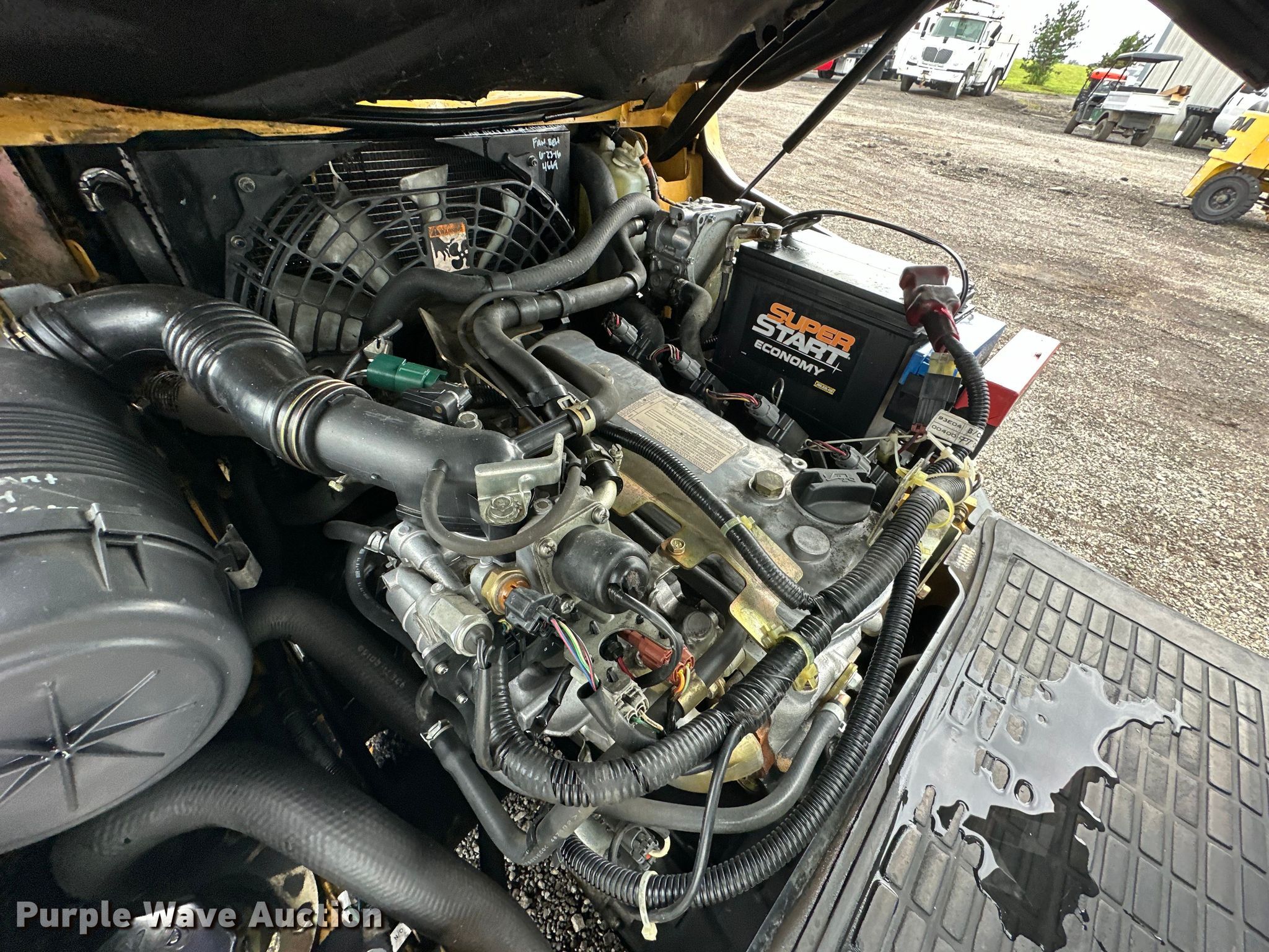 2007 Caterpillar C5500-LP forklift. Hours: 7,043 on meter, Serial: AT83F10471. Engine Nissan K25L, Displacement: 2.5L, Cylinders: 4, Fuel type: LPG LP bottle: Not included. Transmission Powershift. Operators station Canopy. Features Maximum lift capacity: 5,200 lbs, Maximum lift height: 185", Mast stages: 3, Side shift, Mast tilt, Fork length: 42". Tires Front: 24x8x15, Rear: 16x6x10.5, Solid. Notes Non-operational mast. 15107 North 137th East Avenue. Collinsville, OK 74021