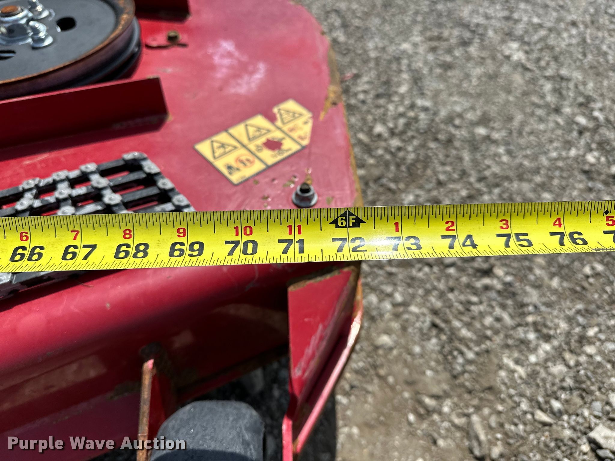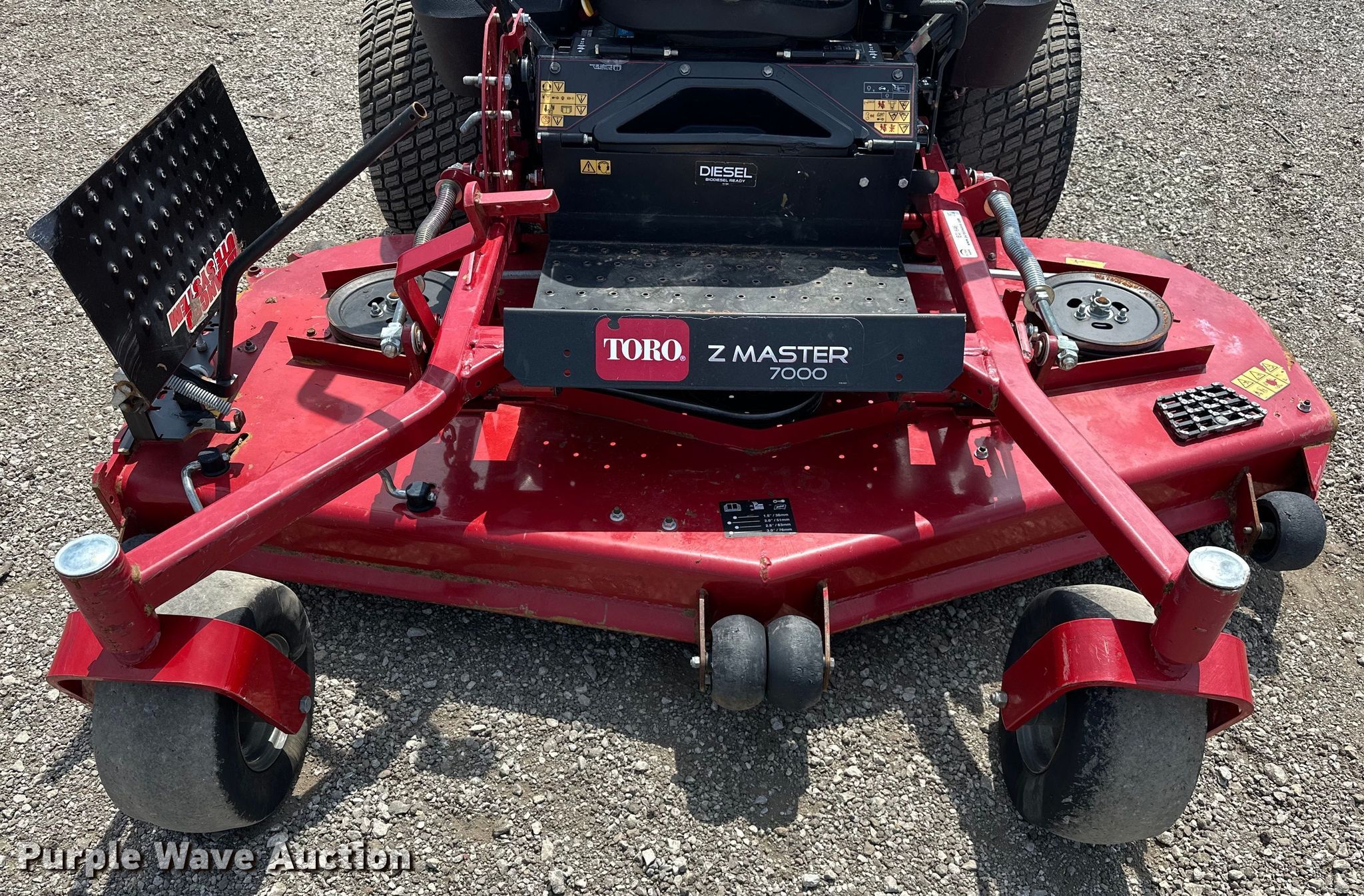 2018 Toro ZMaster 7000 ZTR lawn mower. Hours: 1,342 on meter, Cutting width: 72", Serial: 402358312. Engine Kubota D902, Serial: 4HY2109, Displacement: 0.898L, Cylinders: 3, Fuel type: Diesel. Transmission Hydrostatic. Operators station OROPS. Tires Front: 13x6.50-6, Rear: 24x12.00-12. 15107 North 137th East Avenue. Collinsville, OK 74021